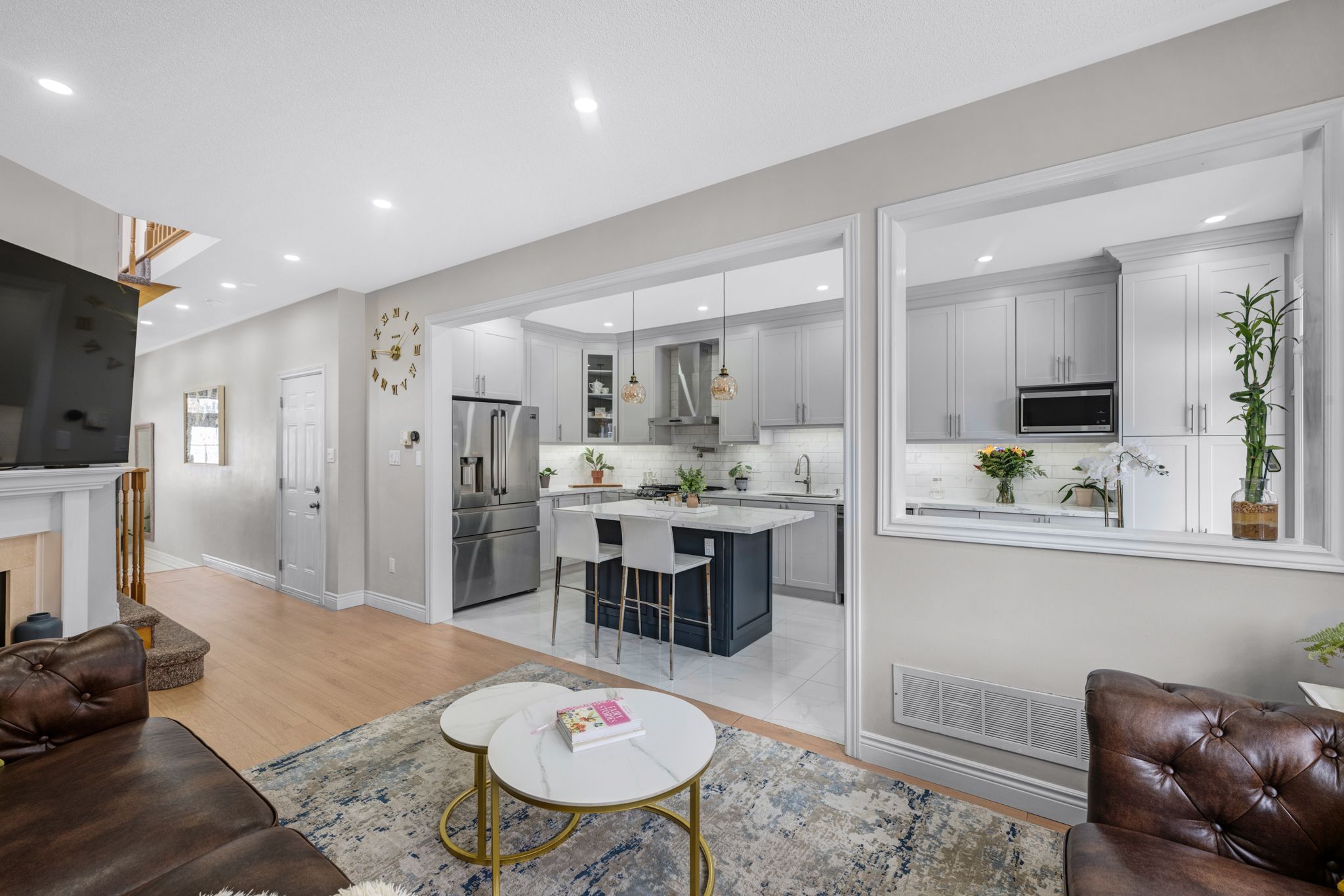 • Cozy gas fireplace and upgraded flooring create a welcoming atmosphere.
