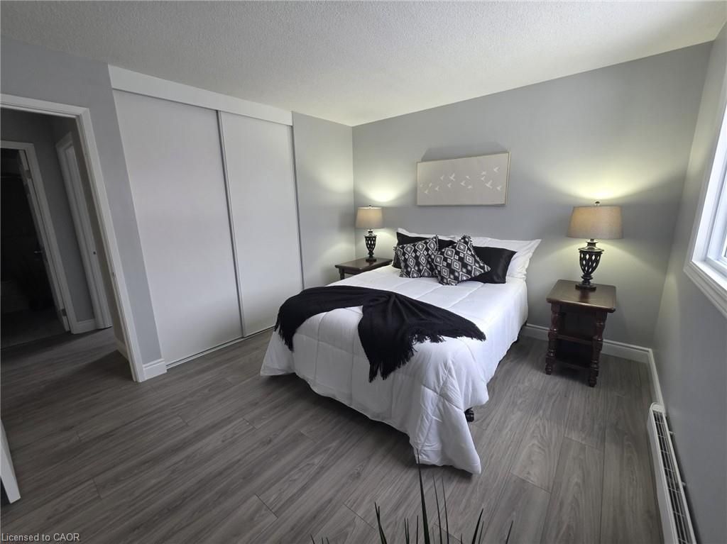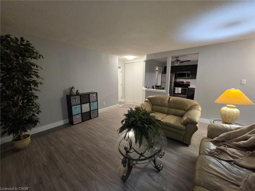 Aaa+ wow - welcome to this stunning, fully renovated second-floor condo offering stylish, turnkey living with unbeatable convenience! This gorgeous 2-bedroom apartment has been completely transformed from top to bottom and is truly move-in ready. Bright and beautifully finished, the 650 sq ft layout features a spacious living room with a charming peek-a-boo kitchen that keeps the space open and inviting. The brand-new kitchen shines with stainless steel appliances, a new built-in microwave, new double sink, new under-mount lighting, and a new kitchen light with fan - all complemented by updated electrical and plumbing. The 4-piece bathroom has been tastefully updated, and the home also boasts all new lighting throughout, new flooring, fresh paint, all new closet doors, new baseboard heaters, a new hot water heater, new windows, and a new patio door. Step outside to your private second-floor balcony featuring sleek glass railings and a convenient storage closet - the perfect spot to relax. Parking space #77 is included, and condo fees are just $307 per month. Public transit is right out front, and you're only steps to fairview park mall offering major shopping, dining, and a full transit hub with grand river transit bus routes and lrt access. Backing onto greenfield park and just minutes to highway 401, this location offers easy access to everything you need. A beautifully redone condo apartment with modern finishes, low fees, and exceptional access - this is the one you've been waiting for. Book your private showing today!