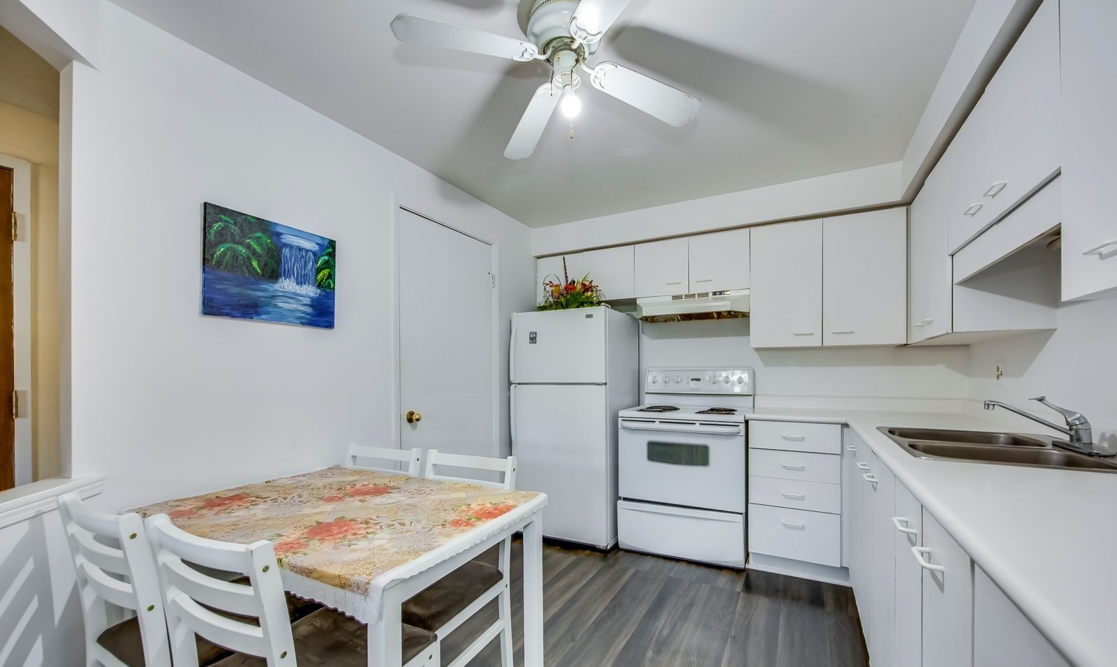 • Eat-in kitchen with plenty of counter and cupboard space.