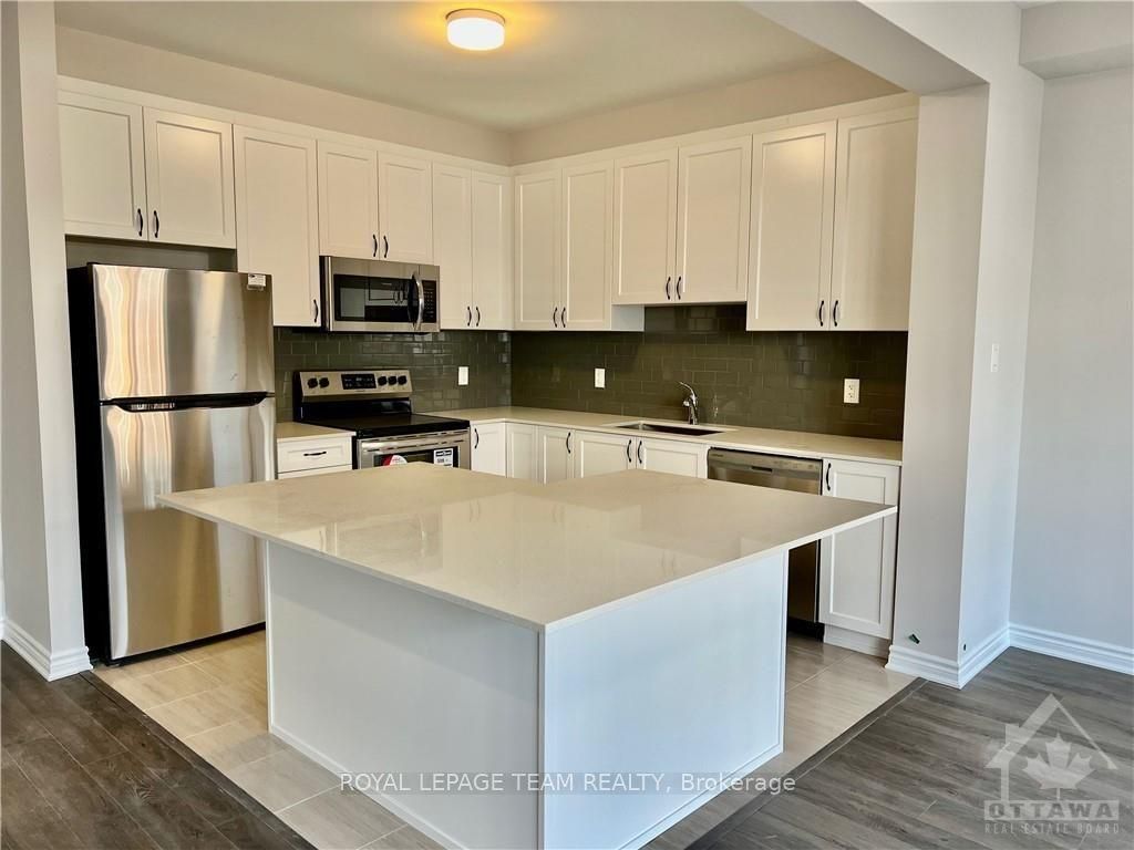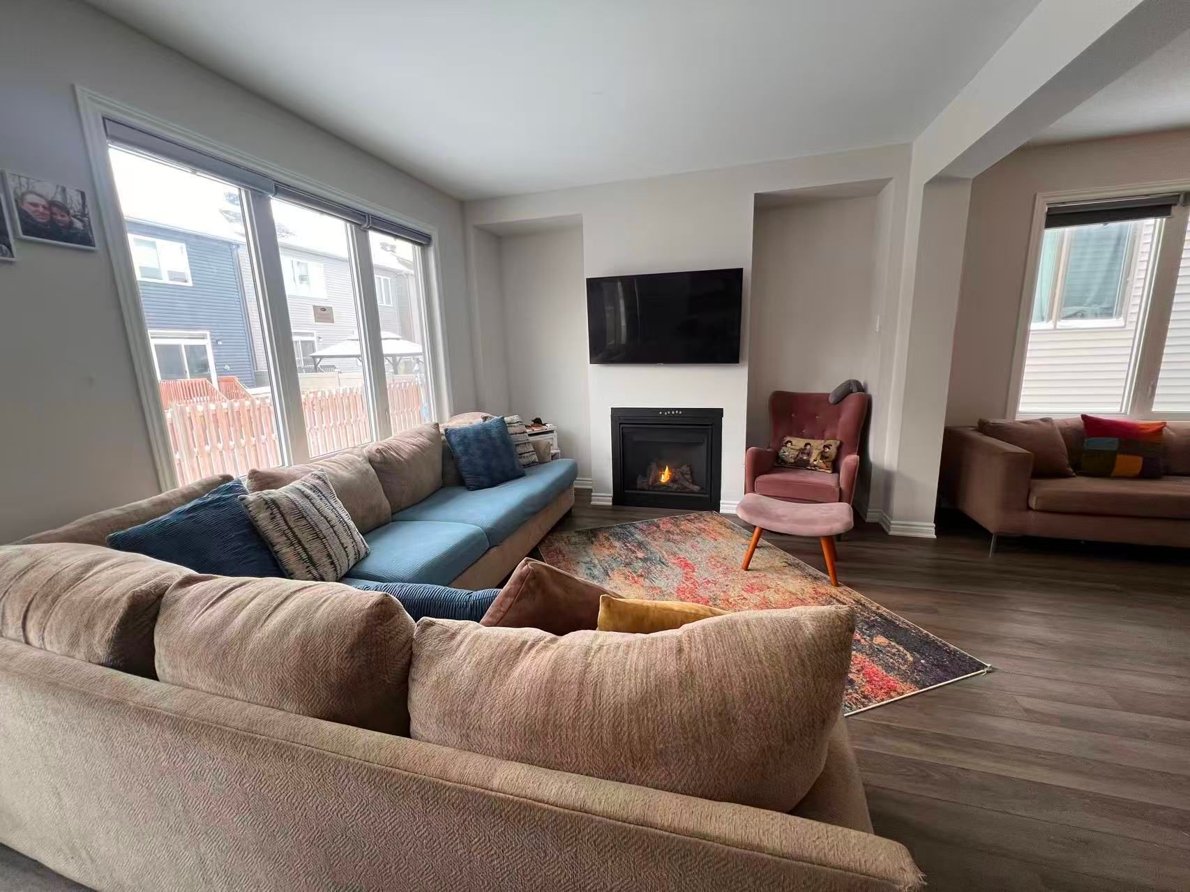 New end unit townhouse for rent. This 3 bedroom with upgrades: smooth 9 ceilings heights on the ground and second floor for spacious interior living. Upgraded all counters to granit, kitchen and all bathroom, double vanity in the main bathroom. Luxury vinyl hardwood flooring and fire place with upgraded. Open concept kitchen with stainless steel appliances. Primary bedroom with walk in closet with fully upgrade bathroom. Two generous sized bedrooms with full bath. Close to all amenities in barrhaven including parks, transit, top rated schools and marketplace shopping centre.