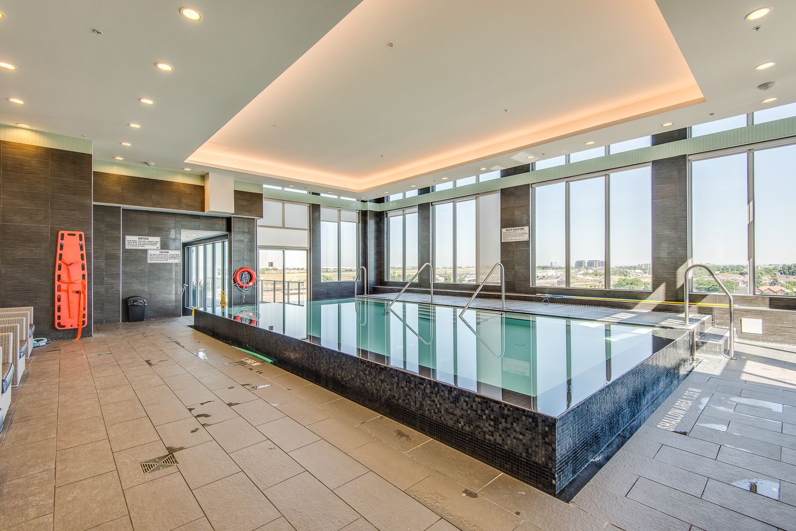 • Building amenities include gym, sauna, indoor pool, and party rooms.