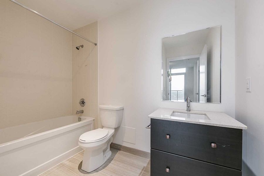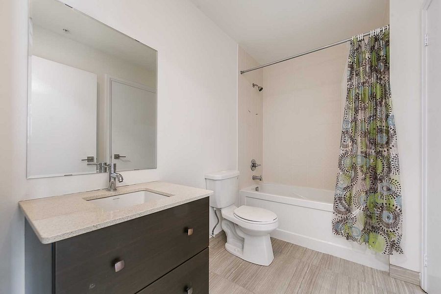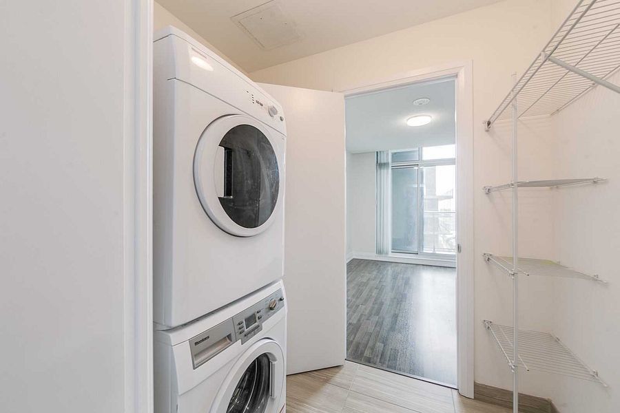 Bright south-facing 2 bdrm unit in the station condos. Open concept split bedrooms layout with 2 separate balconies/large laundry. Island w/stone counters, led under cabinet lighting and stainless steel appliances in functional kitchen. 2 spacious 4 piece baths. Large walk-in closet with laundry providing ensuite bathroom in 2nd bedroom. Primary bedroom has own private balcony overlooking courtyard. 3 minutes walk from wilson subway station & quick access to allan and the 401. Supermarkets 4 minutes walk, pharmacy, home depot, lcbo 10 minutes walk
