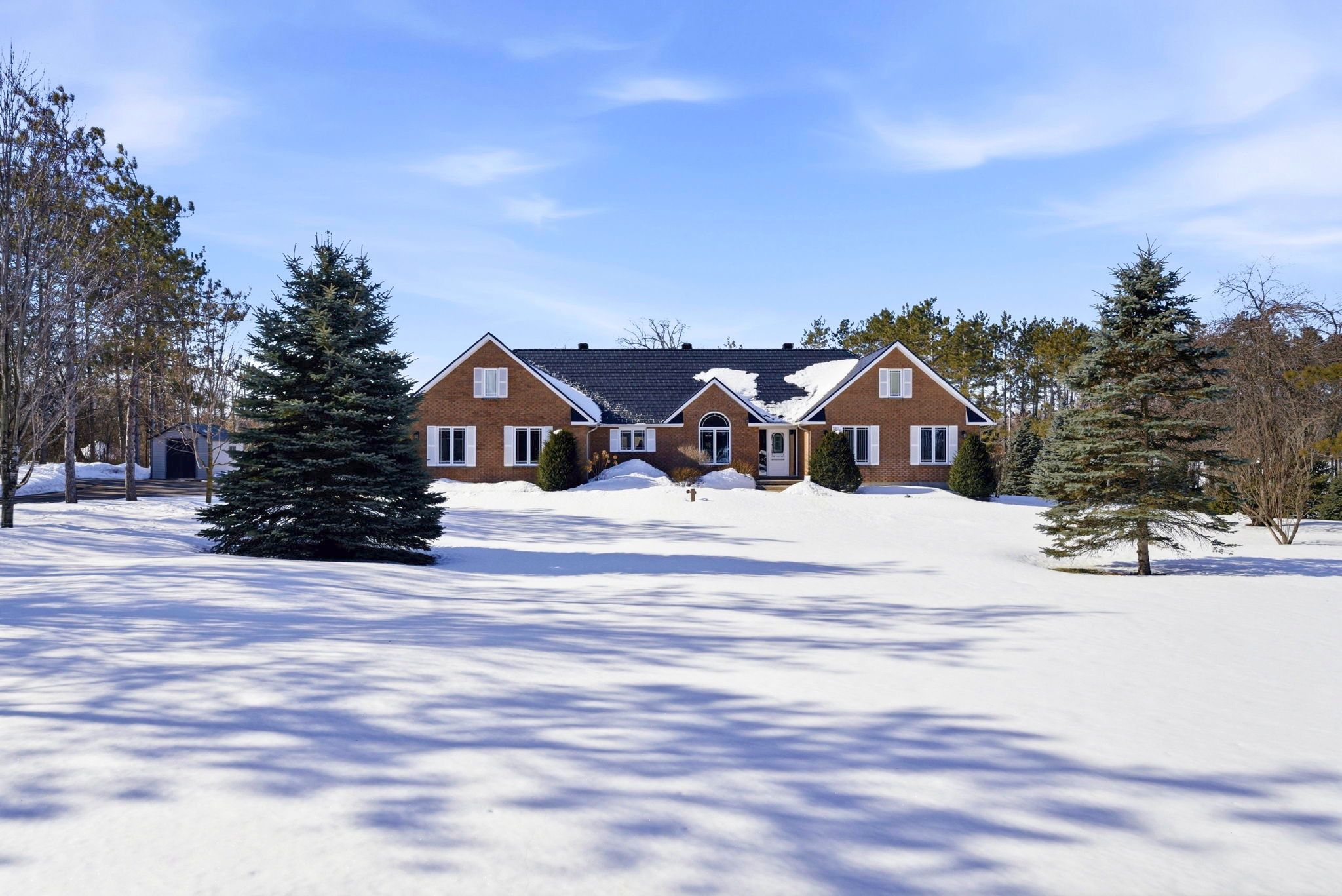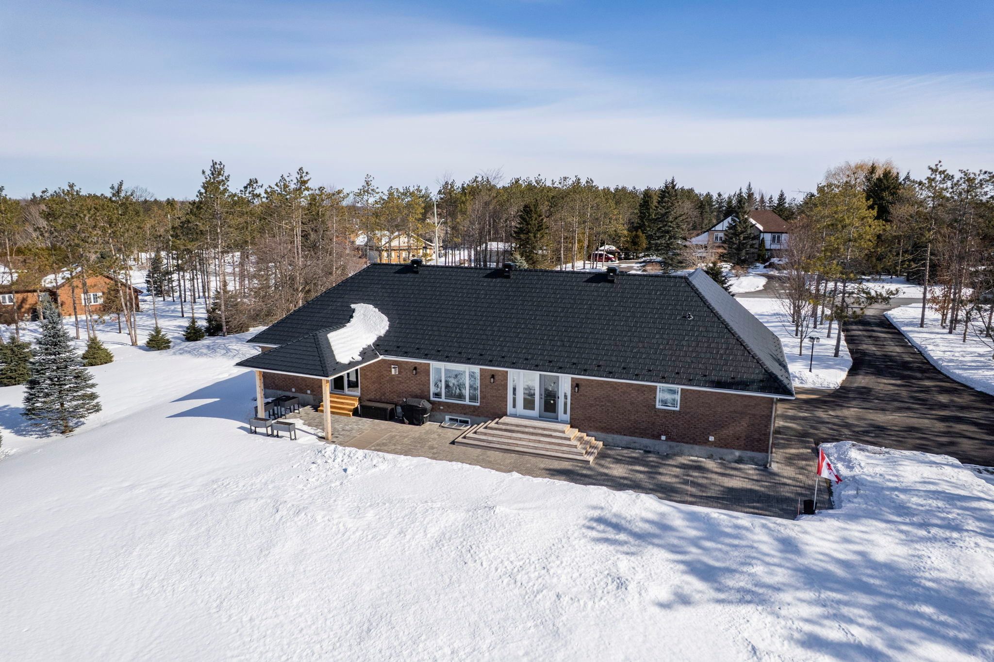 Located in the desirable sandywood estates, just minutes from cornwall, this beautifully maintained executive bungalow offers the perfect balance of quiet country living and convenient access to town. From the moment you arrive, it's clear this home has been meticulously cared for, with every update and improvement completed with thoughtful attention to detail. The main level offers over 1,700 square feet of well-designed living space, creating a layout that is both comfortable and functional. The bright eat-in kitchen provides plenty of cabinetry and workspace, with french doors leading directly to a private backyard patio, making outdoor dining and entertaining effortless. A formal dining area with vaulted ceilings adds character and openness to the living space, while the adjoining living room offers a warm and inviting atmosphere with a cozy fireplace as its centerpiece. The main floor features three bedrooms, including a spacious primary bedroom with a walk-in closet and convenient access to the main bathroom. A two-piece powder room and a mudroom off the attached double garage add everyday convenience. The basement includes a large finished recreation room along with an expansive unfinished section that offers excellent potential for additional bedrooms, a home office, or extended living space. The exterior is equally impressive with its all-brick construction and durable metal shingle roof designed for long-term peace of mind. The backyard showcases a large interlocking stone patio and a beautiful pavilion-style seating area, creating a perfect setting for relaxing or hosting family and friends. Set on approximately 1. 5 acres, the property also features a paved driveway and beautifully landscaped grounds, completing this exceptional and well-cared-for home.