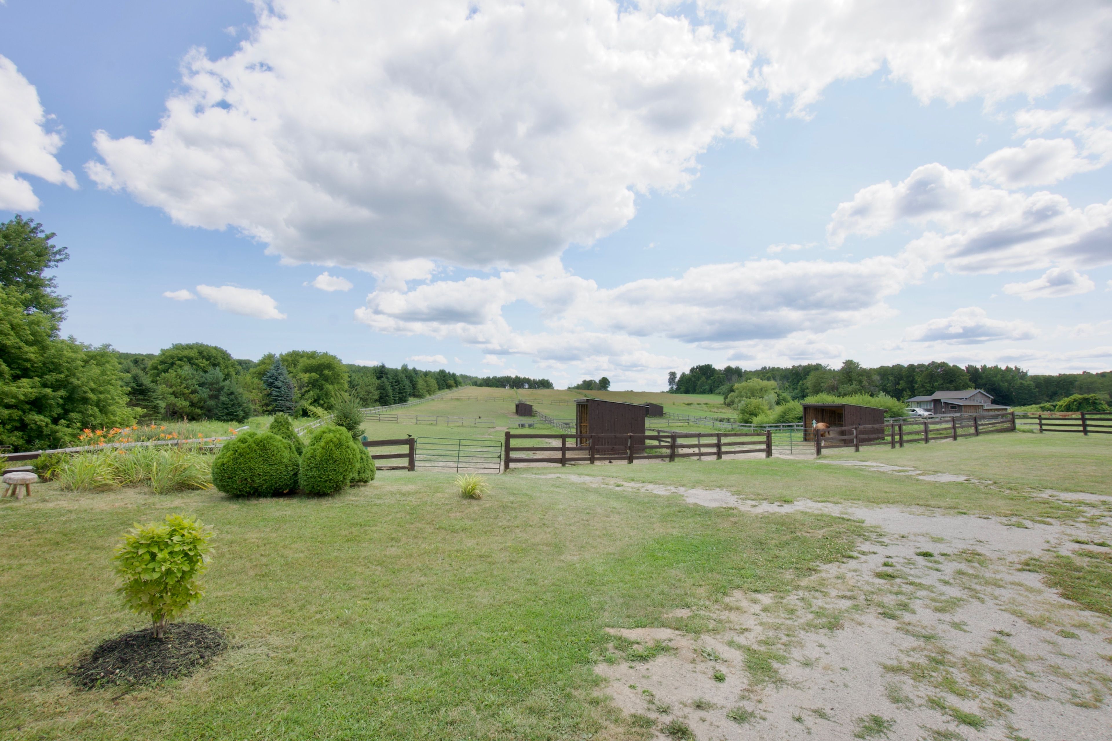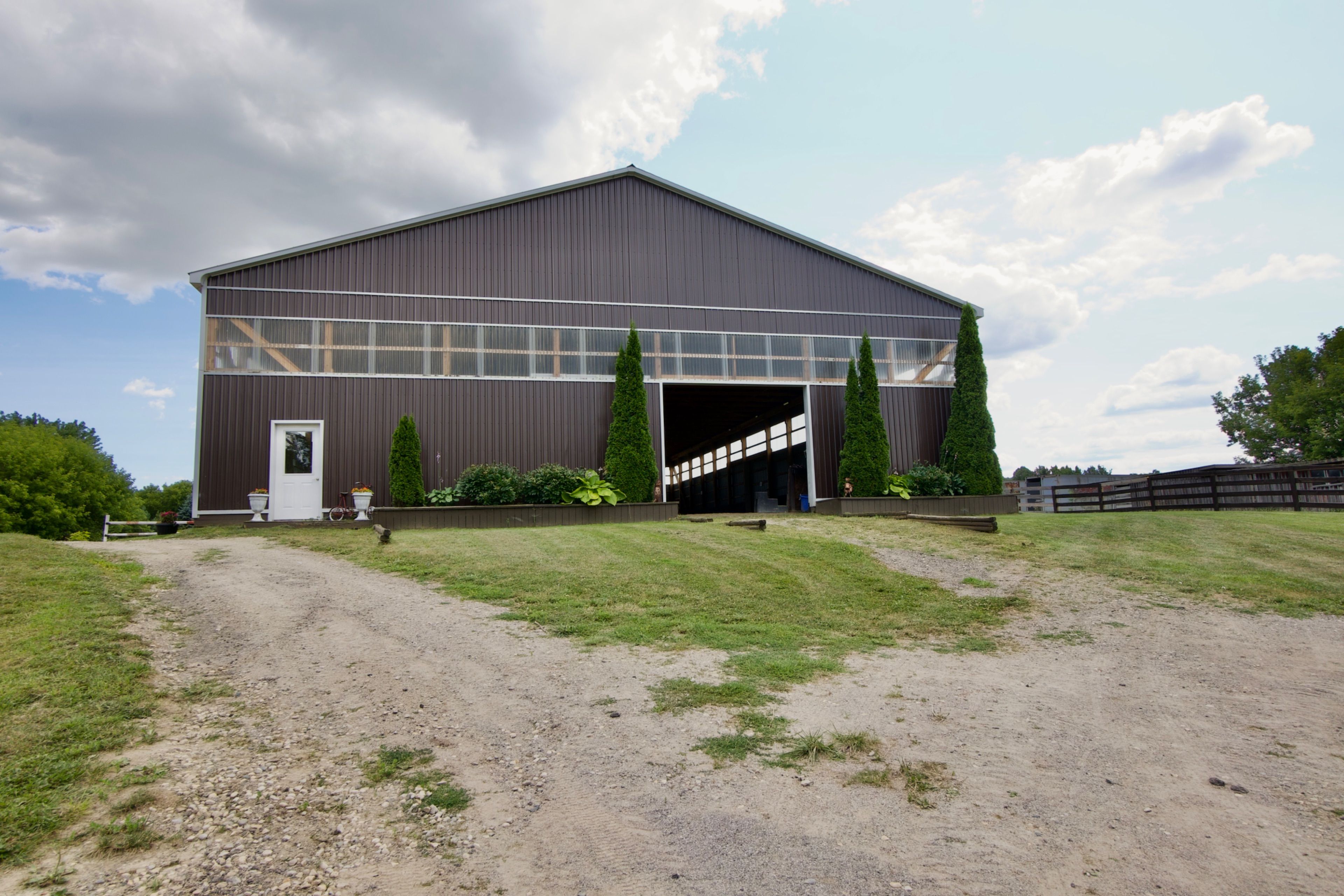 Charming 10-acre horse farm with modern home, in-law suite & premium equestrian facilities discover the perfect blend of rural charm and modern comfort on this picturesque 10-acre horse farm, just 10 minutes from highway 400. Thoughtfully designed for the serious equestrian, the property boasts a beautiful barn with eight 10' x 10' stalls, a heated tack room with hot and cold water, and underground water lines to the pastures for ease and convenience. Ride year-round in the 60' x 106' indoor arena or enjoy the open air in the outdoor riding arena. Six acres of lush, fenced pastures provide ample grazing space for your horses, while included farm equipment ensures you can step right into managing and maintaining the property with ease. The home has been tastefully updated, featuring a modernized kitchen and bathrooms that blend country warmth with contemporary style. It offers a private one-bedroom in-law suite, ideal for extended family, guests, or staff. Surrounded by mature trees and set well back from the road, the residence offers a peaceful sense of privacy rarely found so close to major routes. A spacious deck extends your living area outdoors perfect for relaxing or entertaining while taking in the fresh country air. Whether you're training, boarding, or simply living your equestrian dream, this property delivers exceptional facilities, thoughtful amenities, and a prime location.