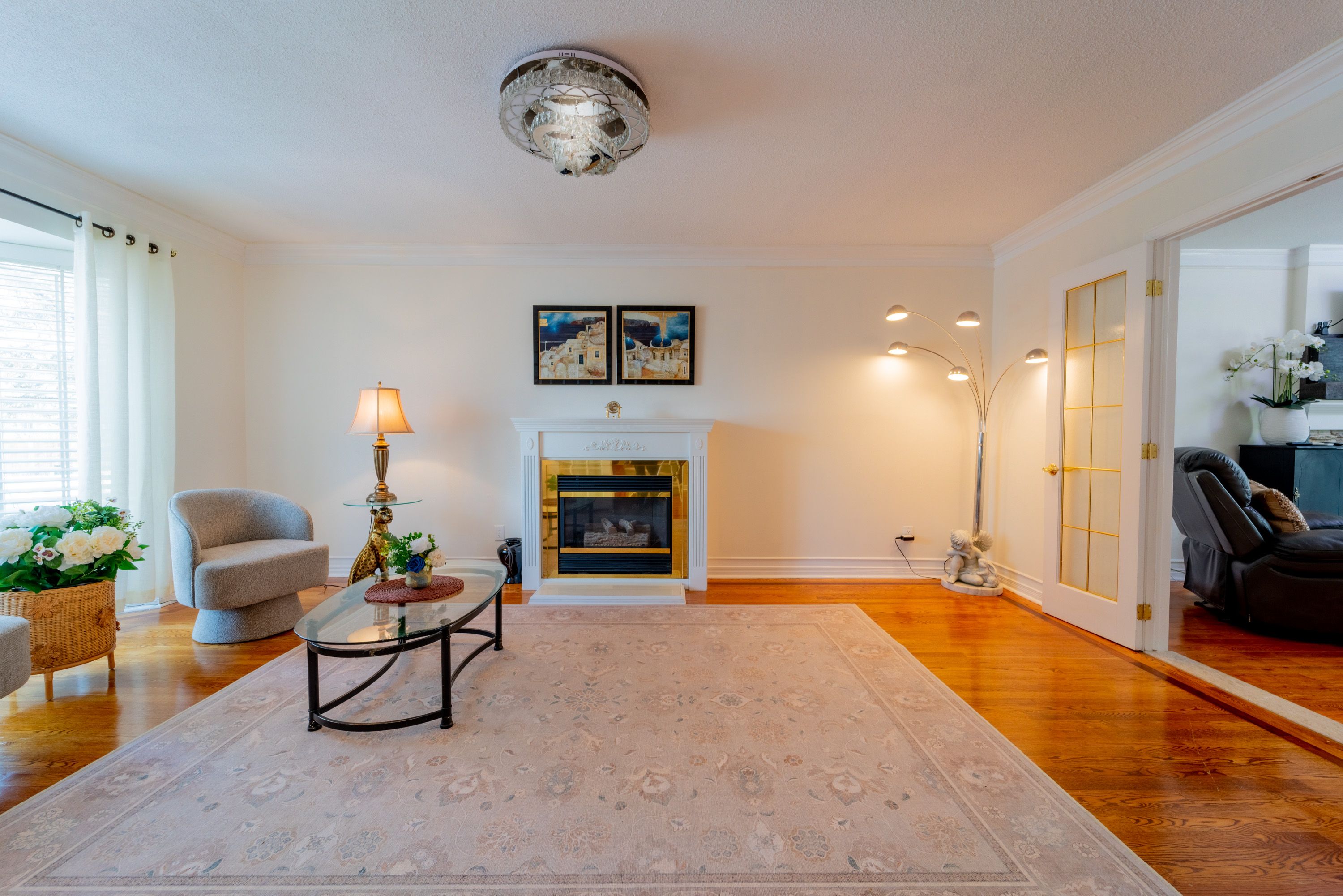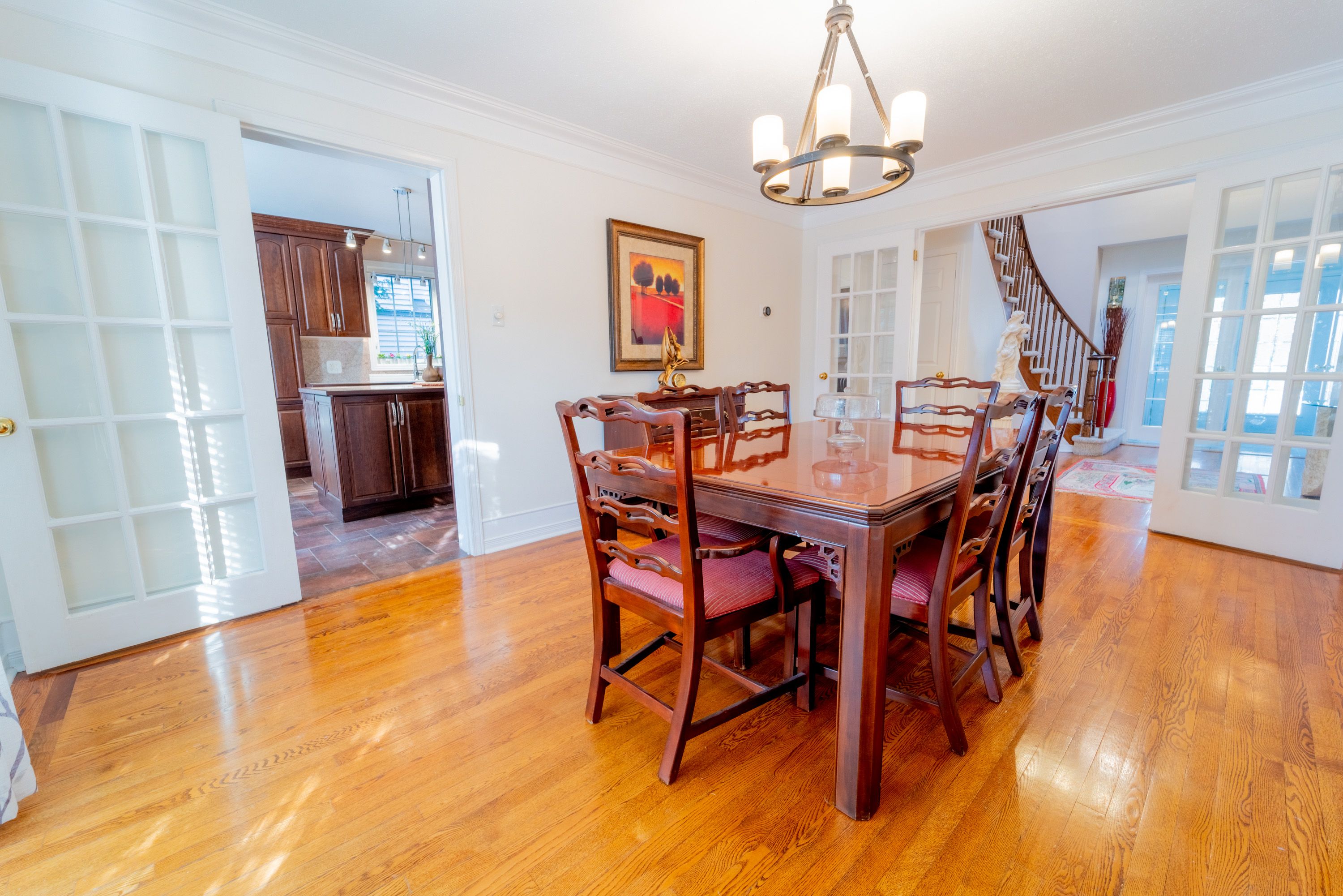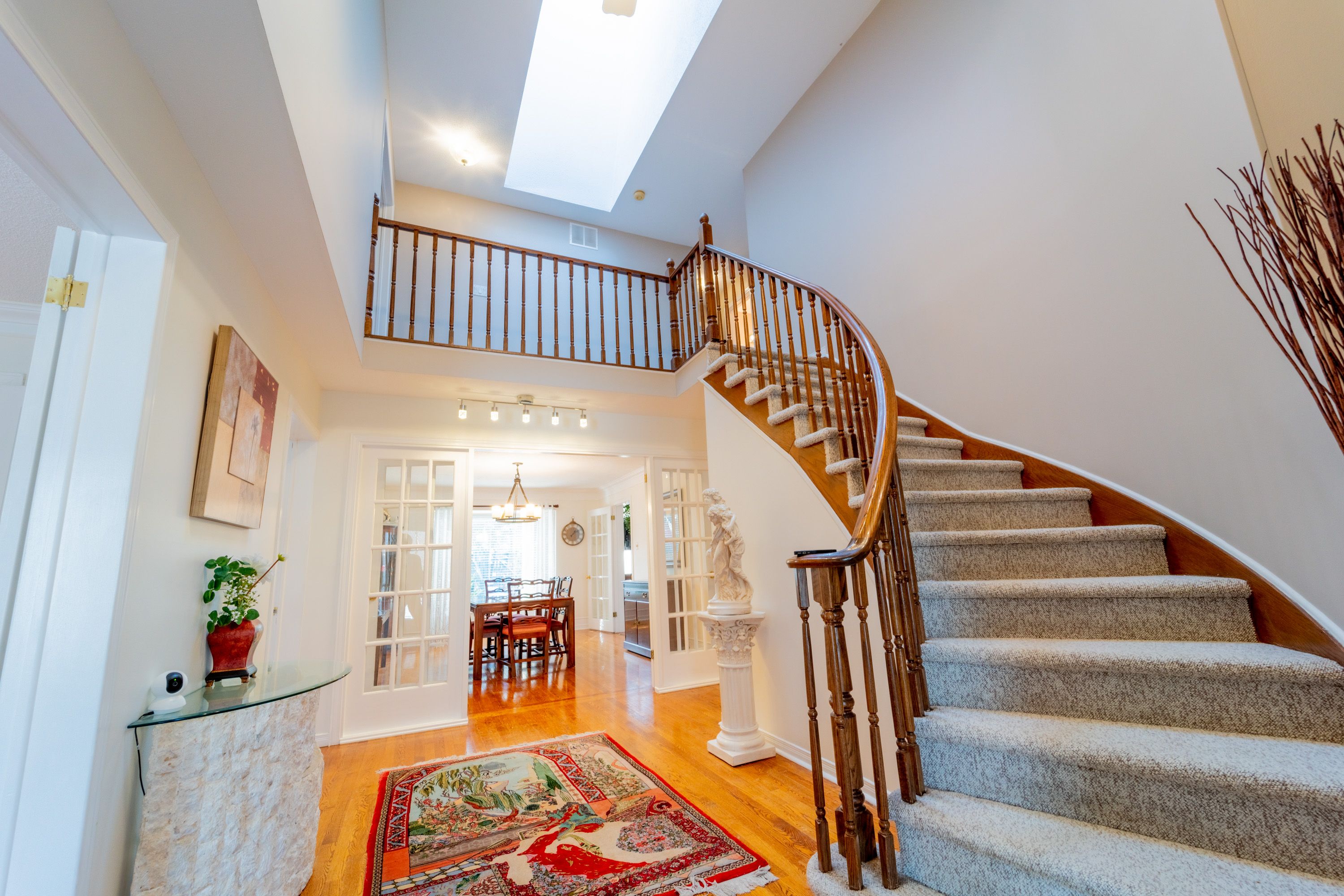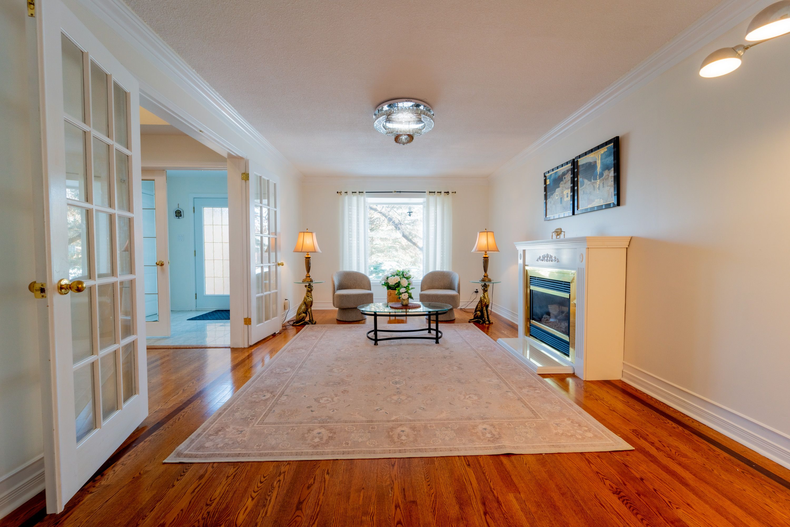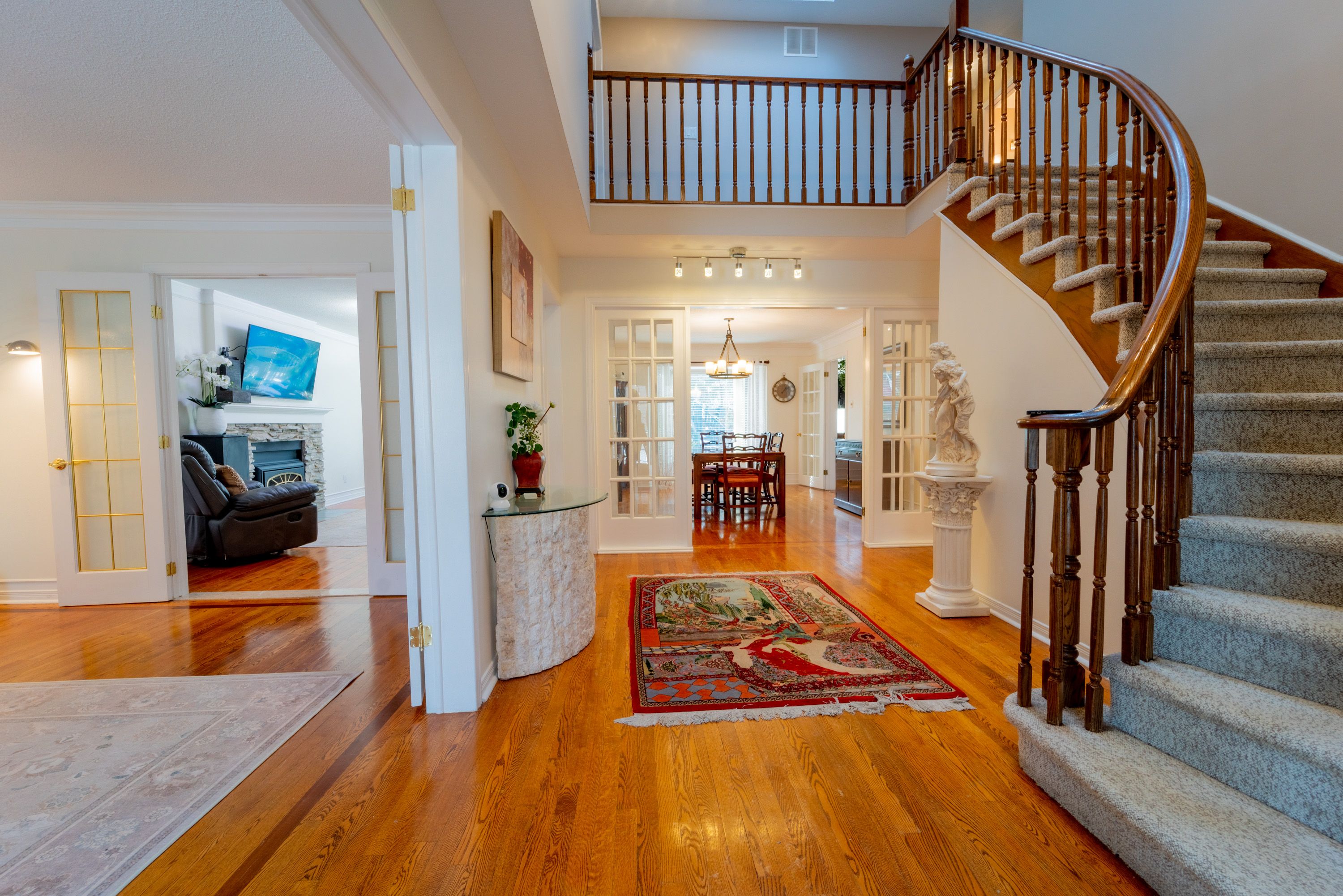 • Inviting main floor features hardwood, fireplaces, and formal dining.