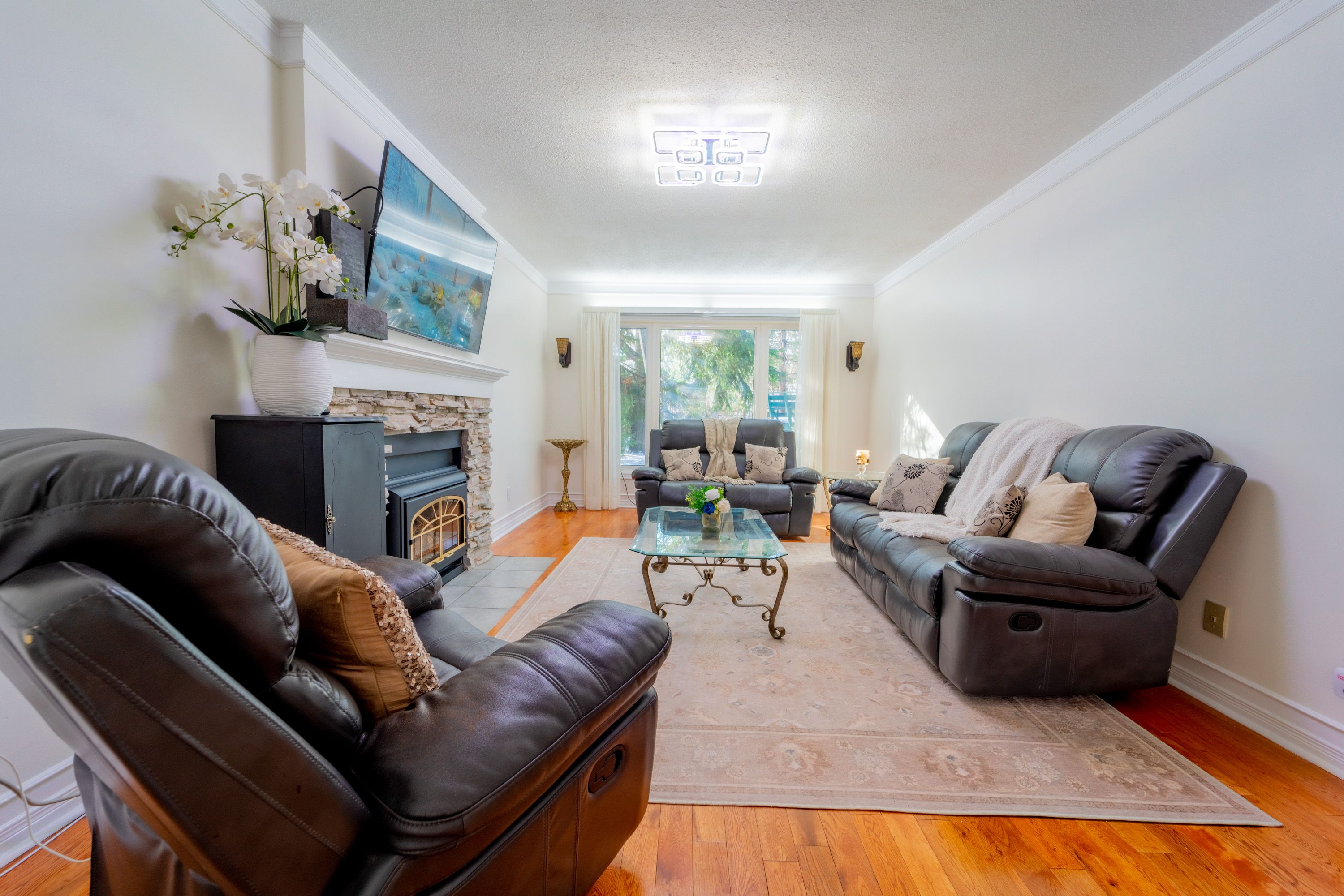 Nestled on a sprawling lot in the coveted fallingbrook neighbourhood, this exceptional home offers over 2,800 square feet of elegant living space. A grand foyer welcomes you, setting the tone for the luxury inside. The main floor features beautiful hardwood floors, a spacious living room with a fireplace, and an impressive formal dining room ideal for entertaining. The family room, with its inviting fireplace, is expansive, offering plenty of room for relaxation. The chefs kitchen boasts abundant cabinetry and a delightful eating area, perfect for casual meals. The second floor houses four generously sized bedrooms, including the primary bedroom, which offers a peaceful retreat with a cozy fireplace and a spa-like en-suite. The fully finished basement is a true bonus, offering a large recreation room, an extra bedroom, and a dedicated game room all designed for leisure and comfort. A four-piece bathroom with a hot tub completes the lower level, adding to the homes appeal. Outside, the yards expansive depth ensures privacy with no immediate back neighbour, and the above-ground pool offers a perfect spot to unwind. Located in the beautiful, well-maintained fallingbrook neighbourhood, this home is surrounded by stunning properties, offering a perfect blend of tranquillity and convenience. The lot size as per geo warehouse. Measurements are approximate. Furnace, ac and hot water tank are replaced in dec 2022, the driveway was sealed and treated on june 24th,2025. The seller has not used the pool in the past 3 years, it is sold in "as is, where is" condition, with no representation as to working order. The backyard and the primary bedroom are slightly virtually staged. Fresh paint on the main floor 2026. There is an active camera in the house.