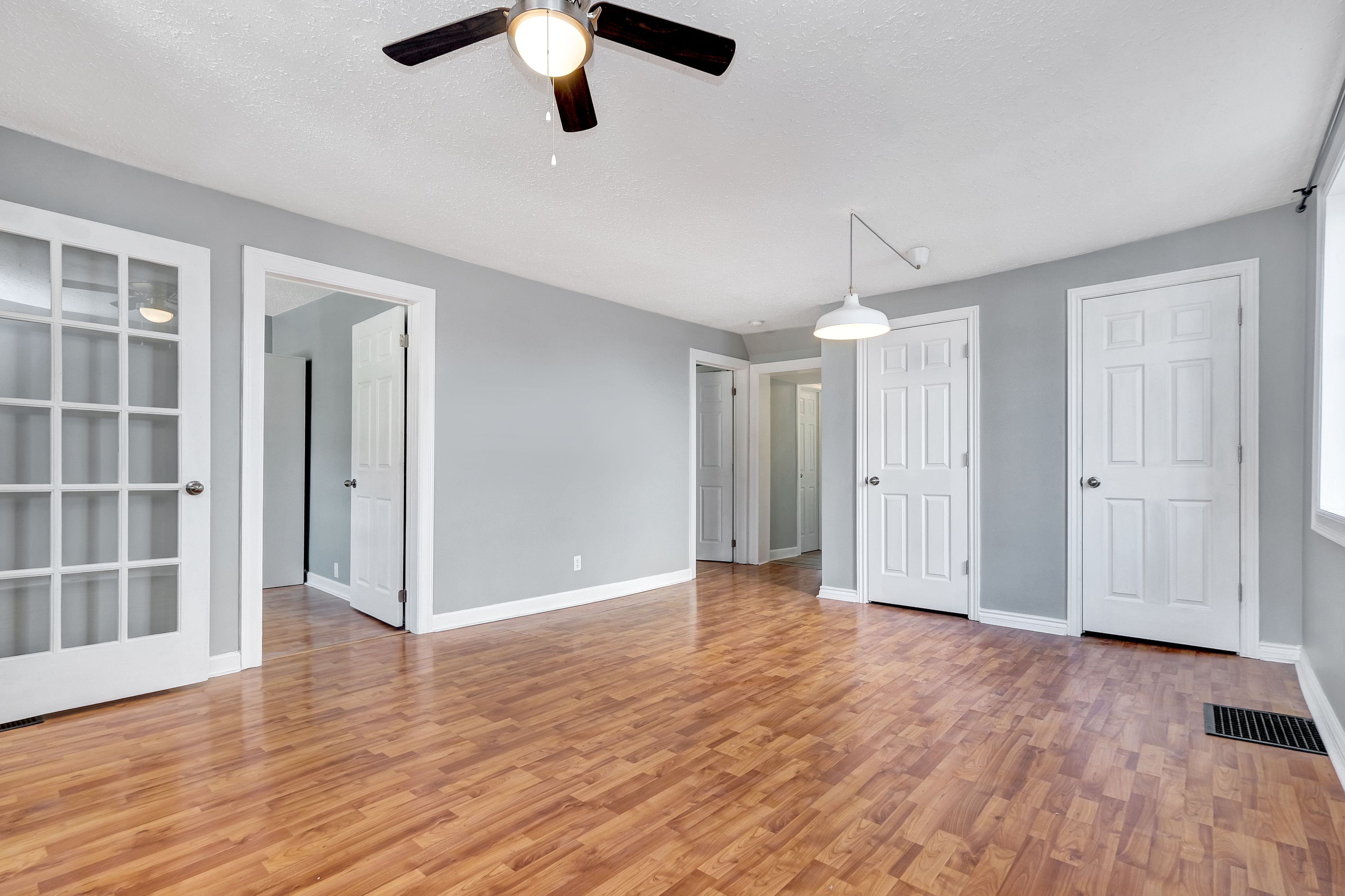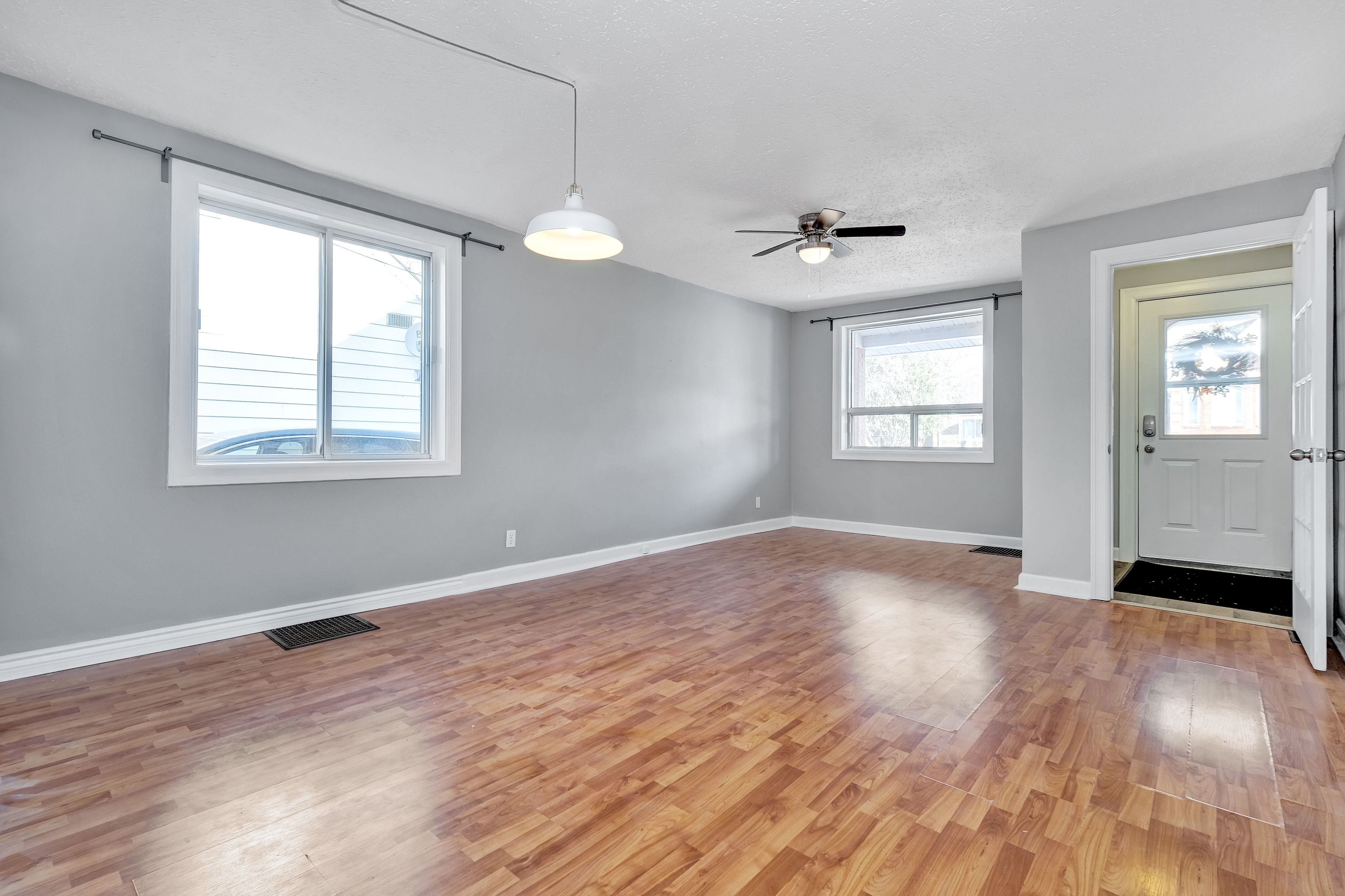 • Bright main level with open layout, oversized windows, and spacious kitchen.