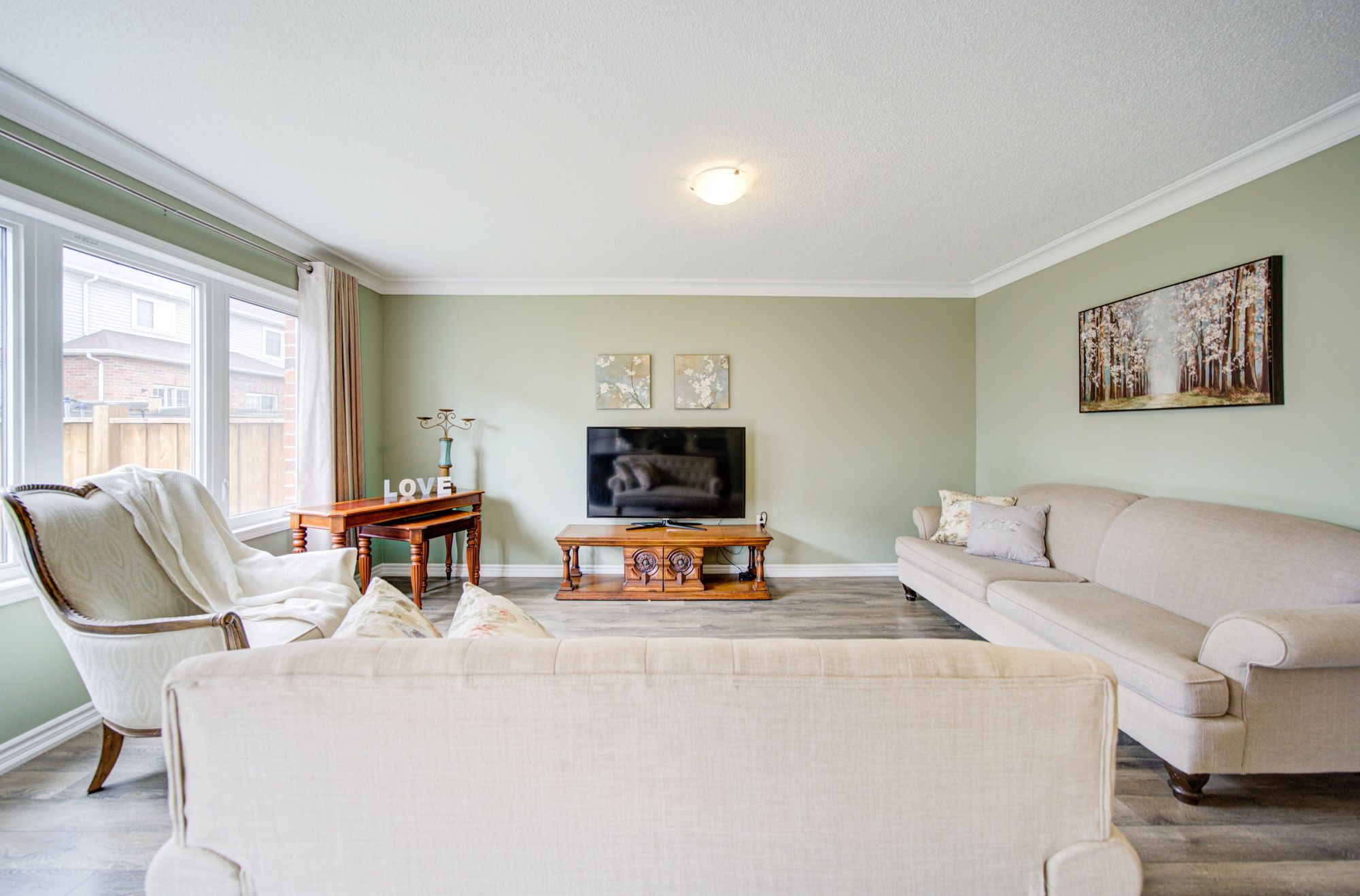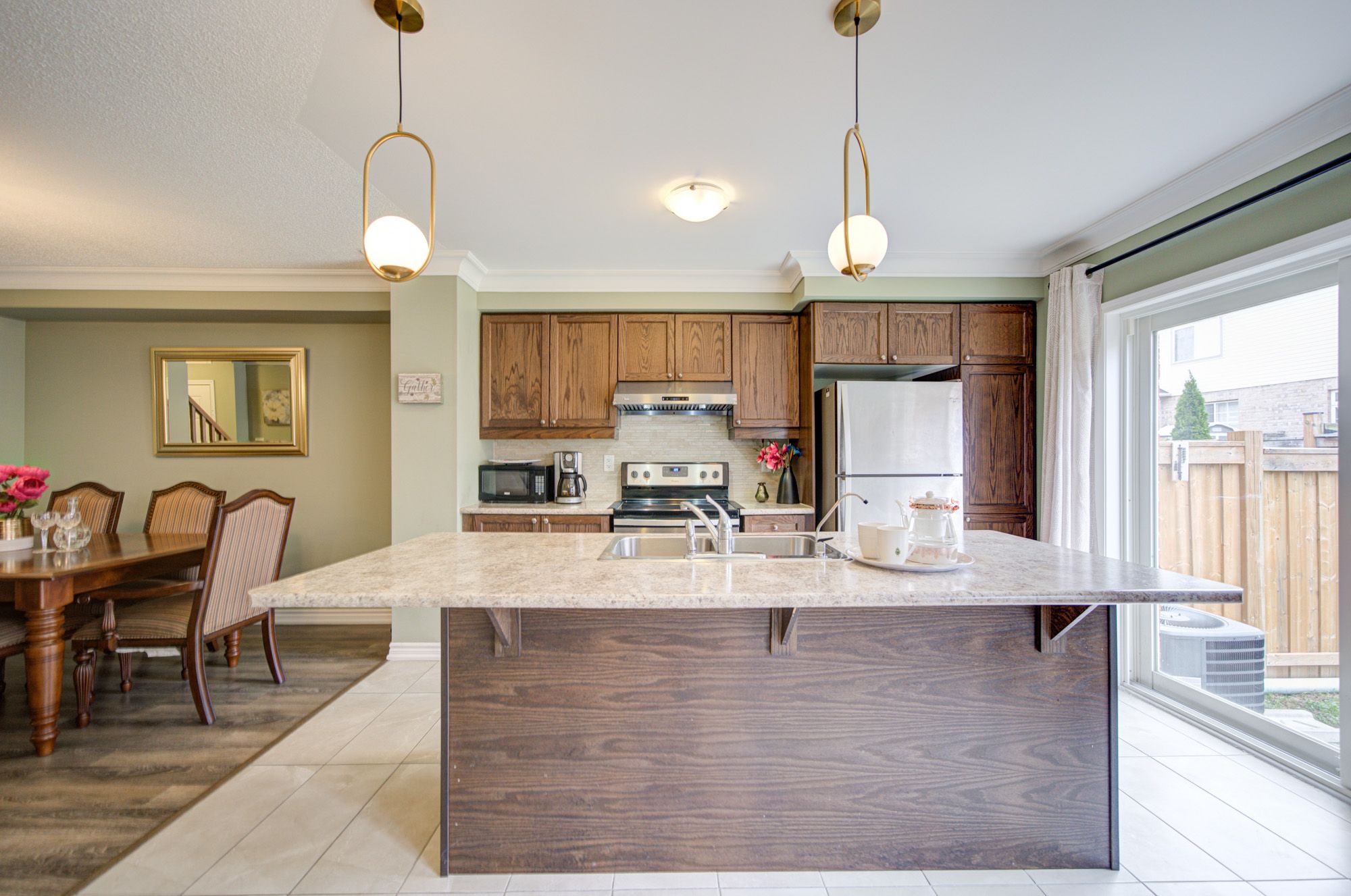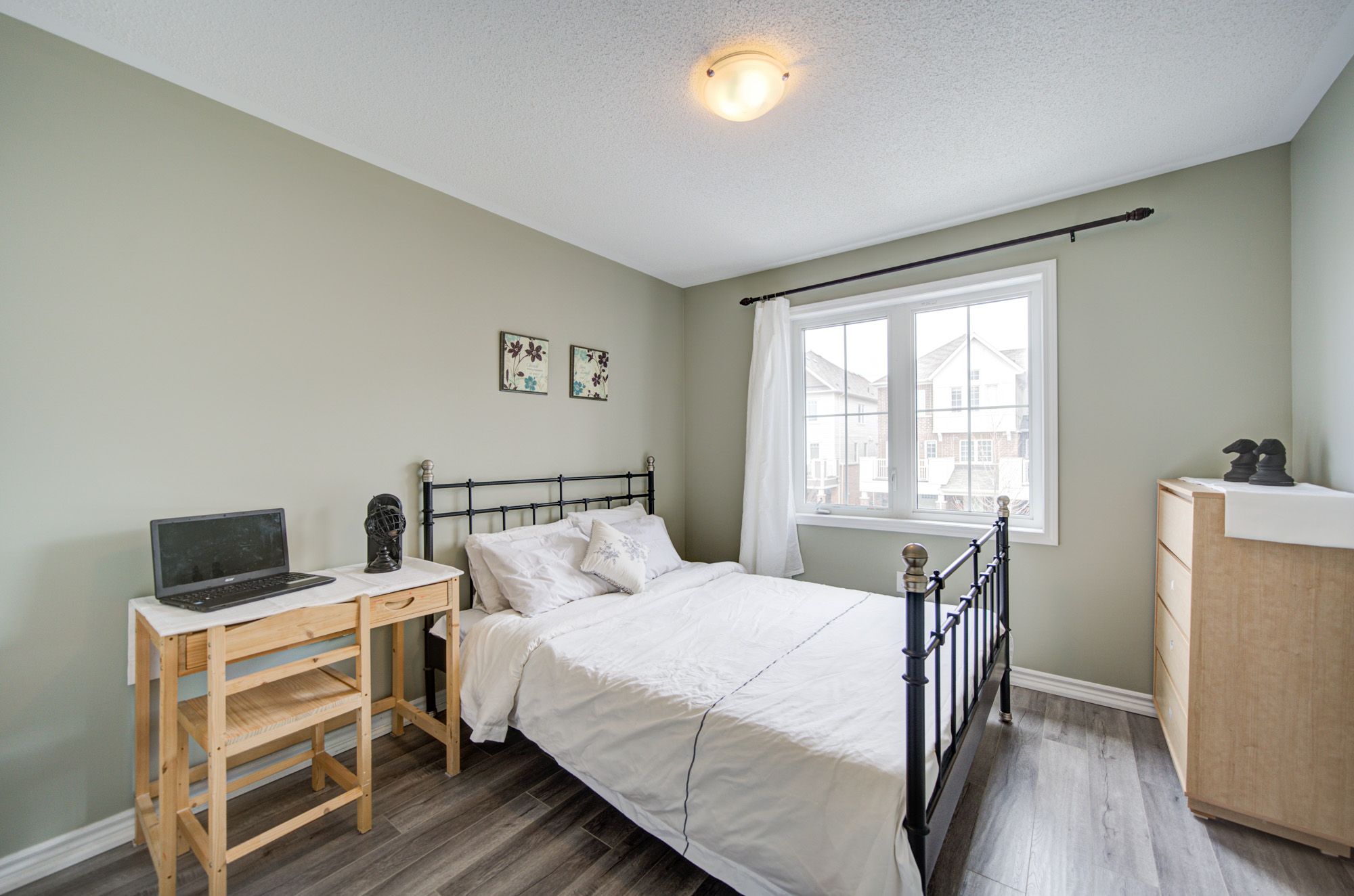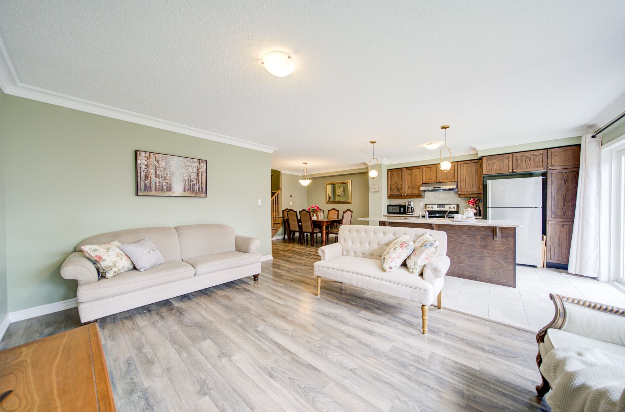 Located in the highly desirable clarke community, this less than 9-year old bright and spacious freehold townhome offers great modernized living experience. Spacious front porch provides space for family relaxing. The main floor boasts an elegant wood flooring and a bright and open-concept layout that seamlessly connects the living, dining, and kitchen areas. The modern eat-in kitchen is equipped with a large centre island, stainless steel appliances, and a walk-out to the yard, which is perfect for everyday enjoyment. Direct interior access to the garage added everyday convenience. Upstairs, you'll find three generously sized bedrooms, including a spacious primary bedroom complete with a walk-in closet and a 4-piece ensuite. Second bathroom is extremely big and bright with vaulted ceiling and large windows. Laundry facilities on the second floor. Basement with upgraded and enlarged windows with extra sunlight flowing inside. This energy-efficient home is energy star rated, ensuring lower monthly utility bills. Minutes away from 401, go station, plaza, mall, schools, and daycares.