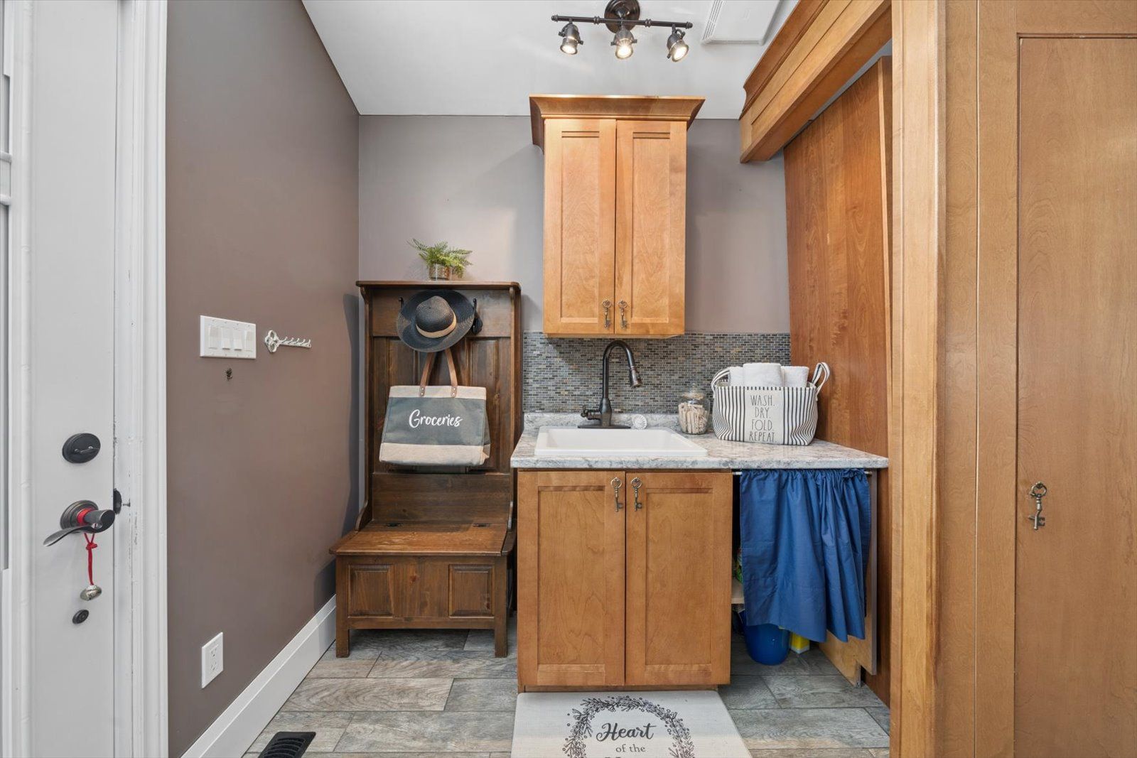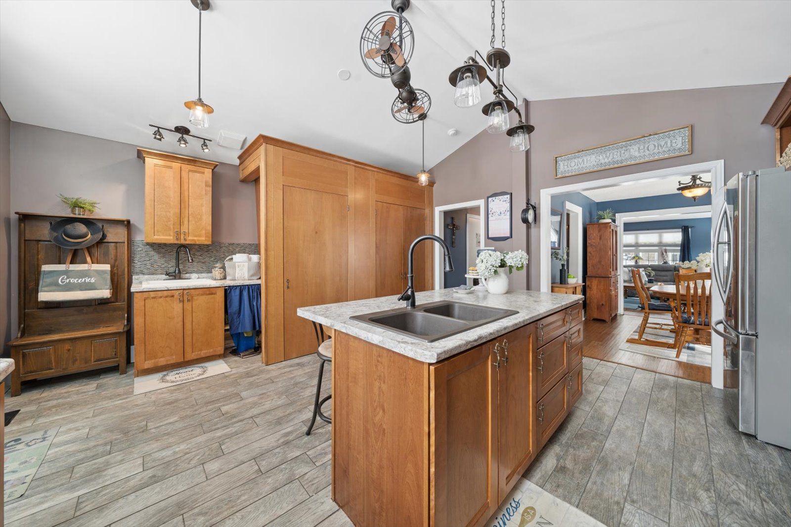 • Bright kitchen with ample space, a large island, and walk-in pantry.