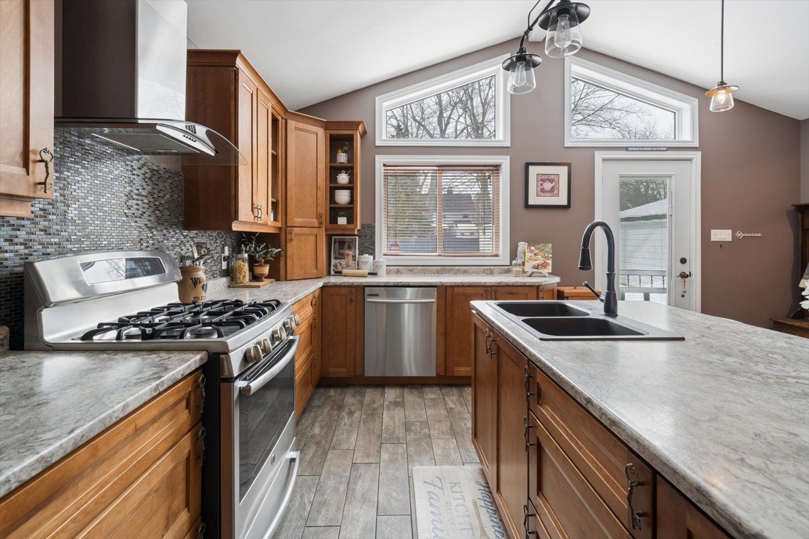 • Large landscaped lot with wrap-around deck and parking for convenience.