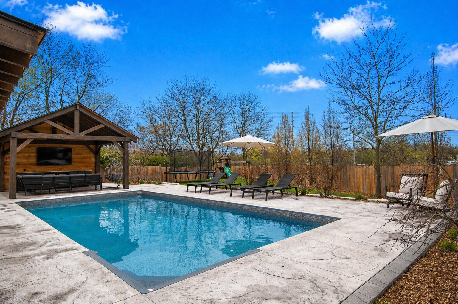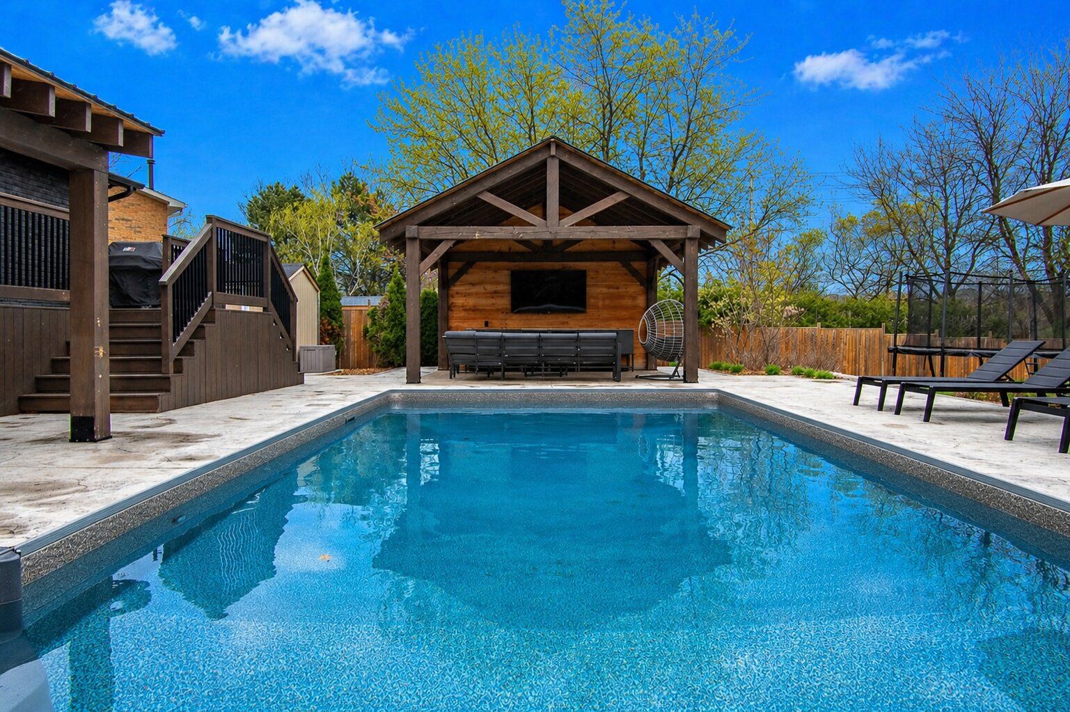 • Private backyard with heated inground pool and gazebo for relaxation.