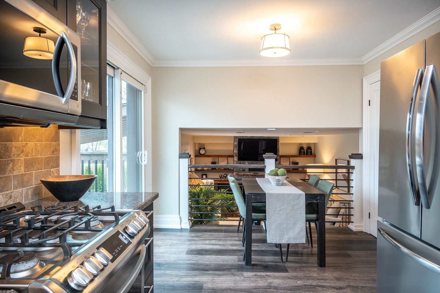 Welcome to one of timberlea's most coveted addresses-where the lot, the lifestyle, and the backyard are simply unmatched. Step outside and you'll understand why this home is a true game changer. Your private backyard retreat features a heated inground pool, stamped concrete, a powered gazebo with change room, a generous green space, and direct access to scenic walking and biking trails. It's the ultimate blend of entertaining and everyday escape-summer days, weekend hosting, and quiet morning coffees all live here. Inside, the home is just as impressive. A beautifully finished kitchen with stone counters, stainless steel appliances, and a gas stove flows seamlessly into open-concept living and dining spaces, filled with natural light and enhanced by premium vinyl flooring and a built-in sound system on the entire main floor. A custom barn door leads to a warm and inviting family room with fireplace and built-ins-perfect for cozy nights in. Upstairs, the primary suite feels like a boutique hotel getaway, complete with a statement barn board wall, dual custom closets, and a spa-inspired ensuite featuring heated floors and an oversized multi-zone shower. Additional bedrooms are spacious and well-appointed for growing families. The finished basement offers the perfect bonus space for movie nights, kids' hangouts, or entertaining, along with ample storage and an updated electrical panel (2018). And for those who value versatility, the fully finished garage-complete with heating and a/c-offers year-round comfort and is currently styled as a home gym, while still functioning as a traditional garage if preferred. All of this, just steps to parks, top-rated schools, and everyday amenities-with quick access to the 401, 407, and go station for an easy commute. This is the ultimate blend of entertaining and everyday escape.