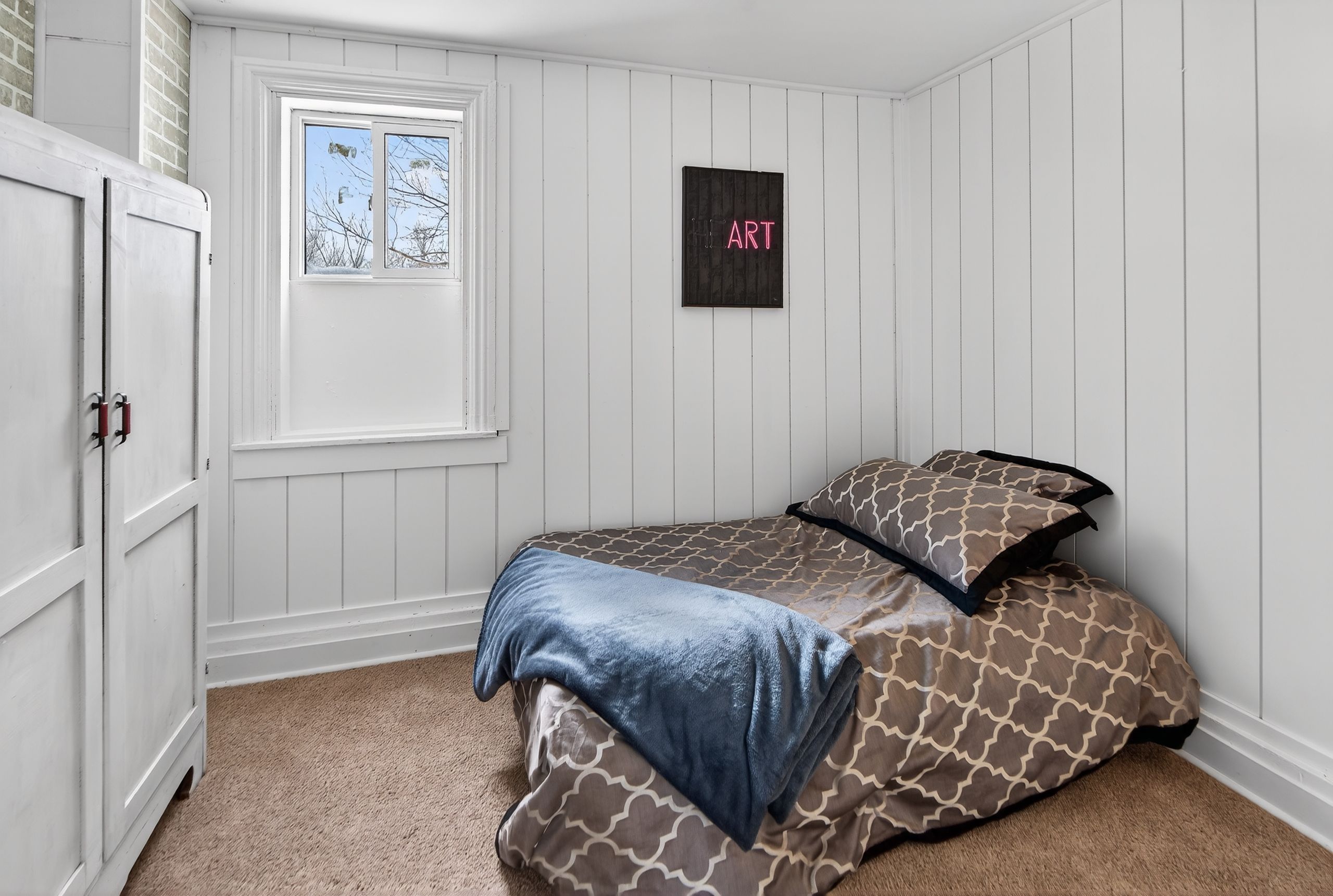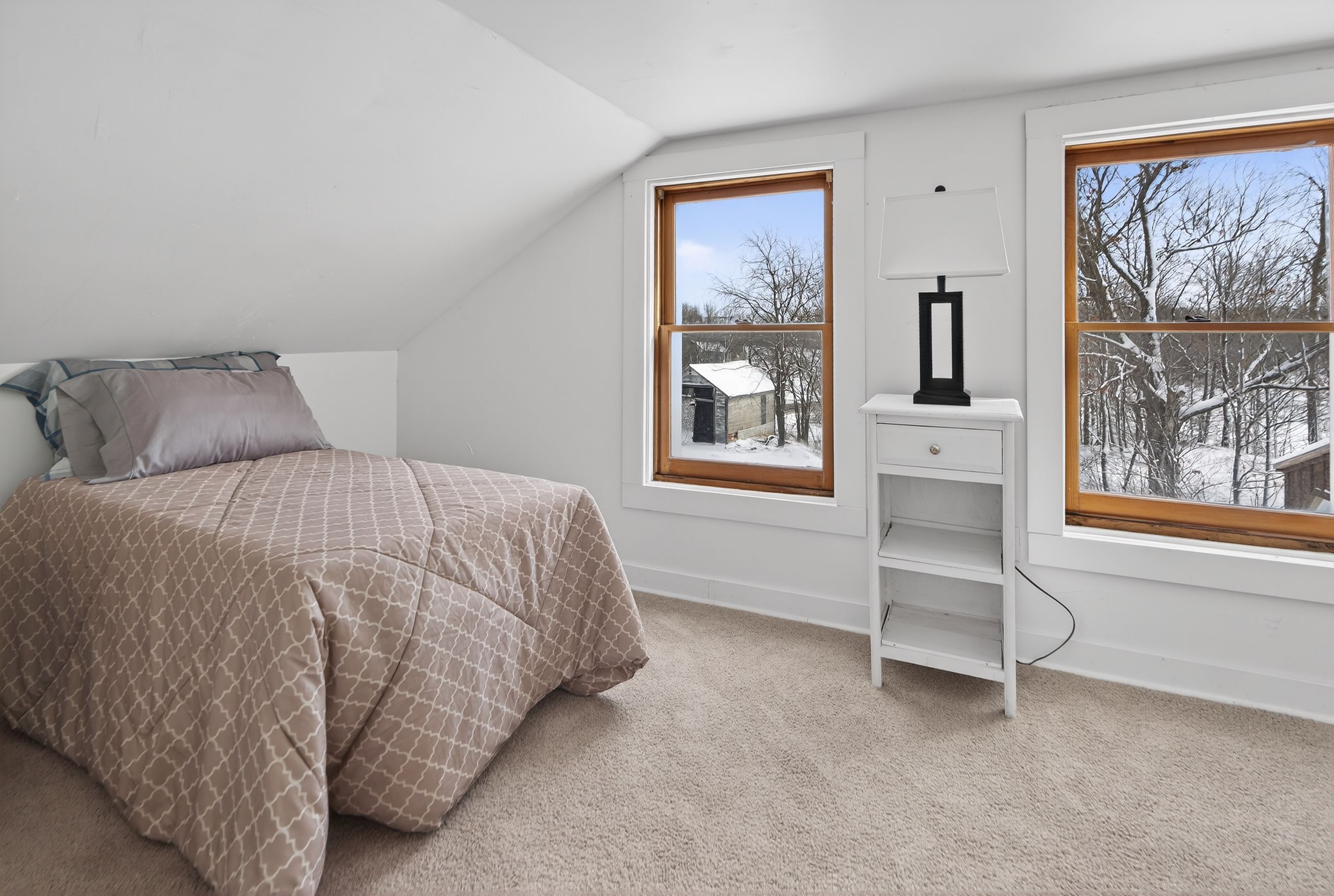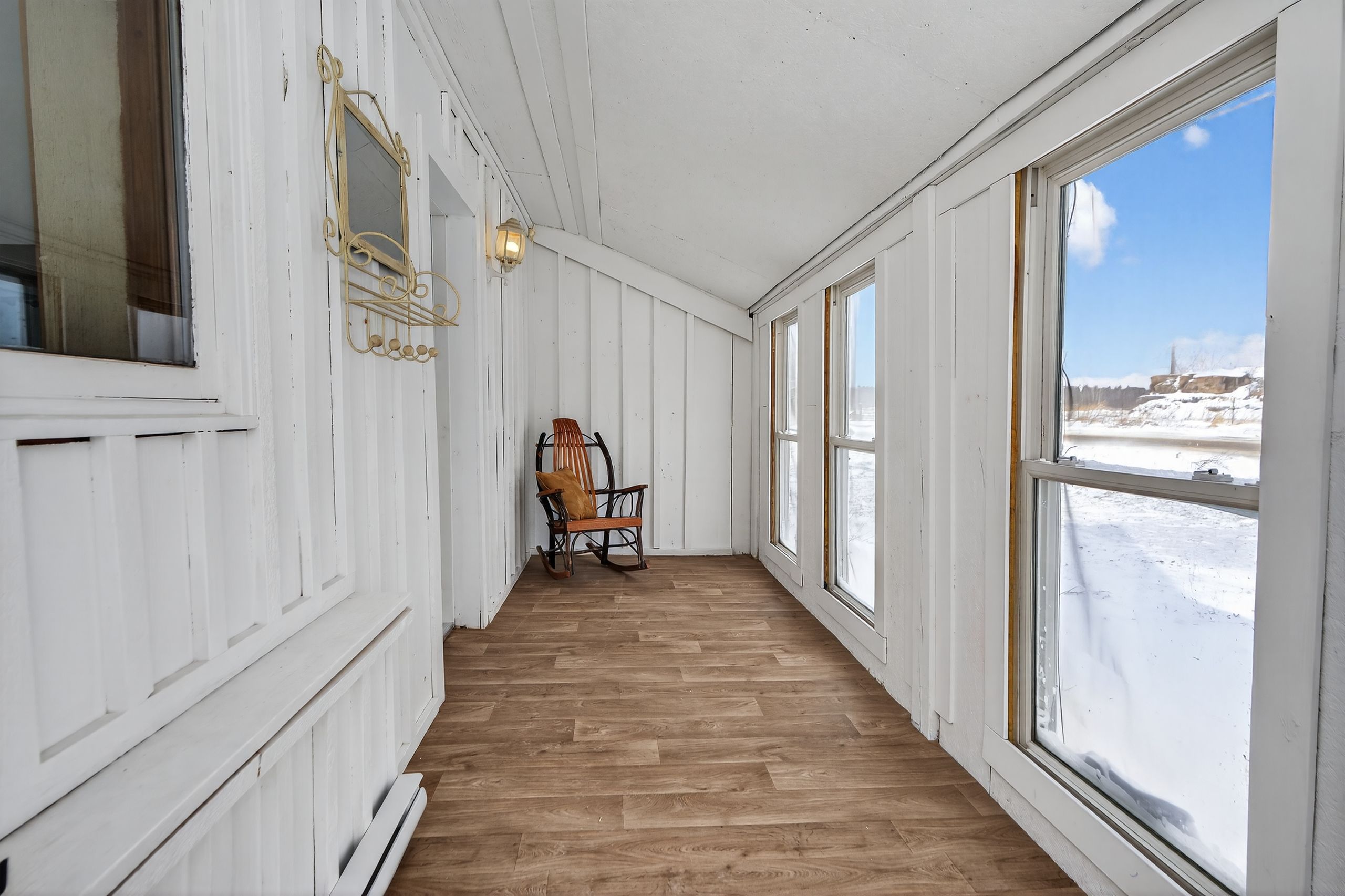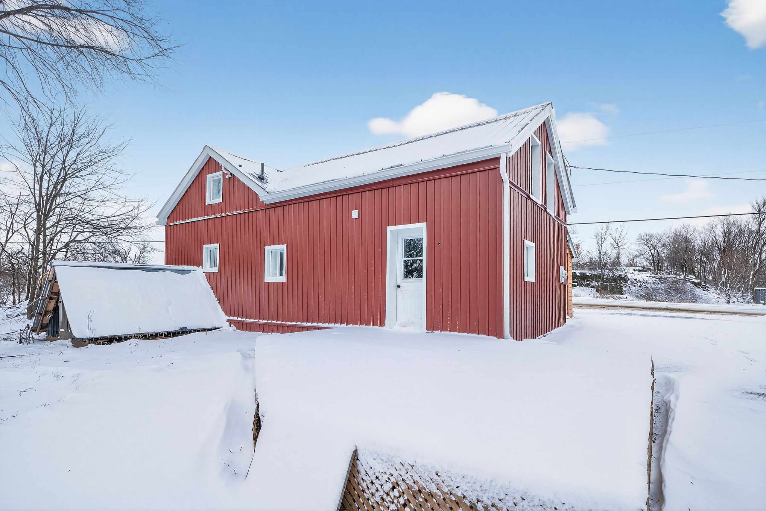 Affordable and renovated country home with so much to offer those seeking updated living and a place to play. Sitting on 4. 3 acres of trees, a seasonal creek and open spaces, there is lots room for family, gardens and pets. This absolutely charming farmhouse is just an easily commuted 20 minutes to the city and just a minute north of the village of battersea. Offering 3 bedrooms and 2 bathrooms with a decor that mixes yesterday's character features with today's conveniences. The enclosed front porch is a nice welcome and invites you into the large country kitchen that flows to the living room with fireplace focal point. Main floor bedroom/den/office and full bathroom complete this level. Upstairs you will find 2 bedrooms (primary bedroom offers huge closet space), laundry room,2nd bathroom and storage nooks. Heading outdoors from the kitchen back door, brings you to the rear deck with a lovely view of the property. You will also find the newer single detached garage for your outdoor toys or hobbies and a rustic garage/shed/future workshop with poured concrete floor. Recent updates (2023-2026) include the kitchen, flooring, lighting, furnace, a/c, metal roof, vinyl siding, hot water tank, bathrooms updates, electric wall fireplace including mantle and more! Walk the trails on your very own property and enjoy that peaceful easy feeling. Welcome home.