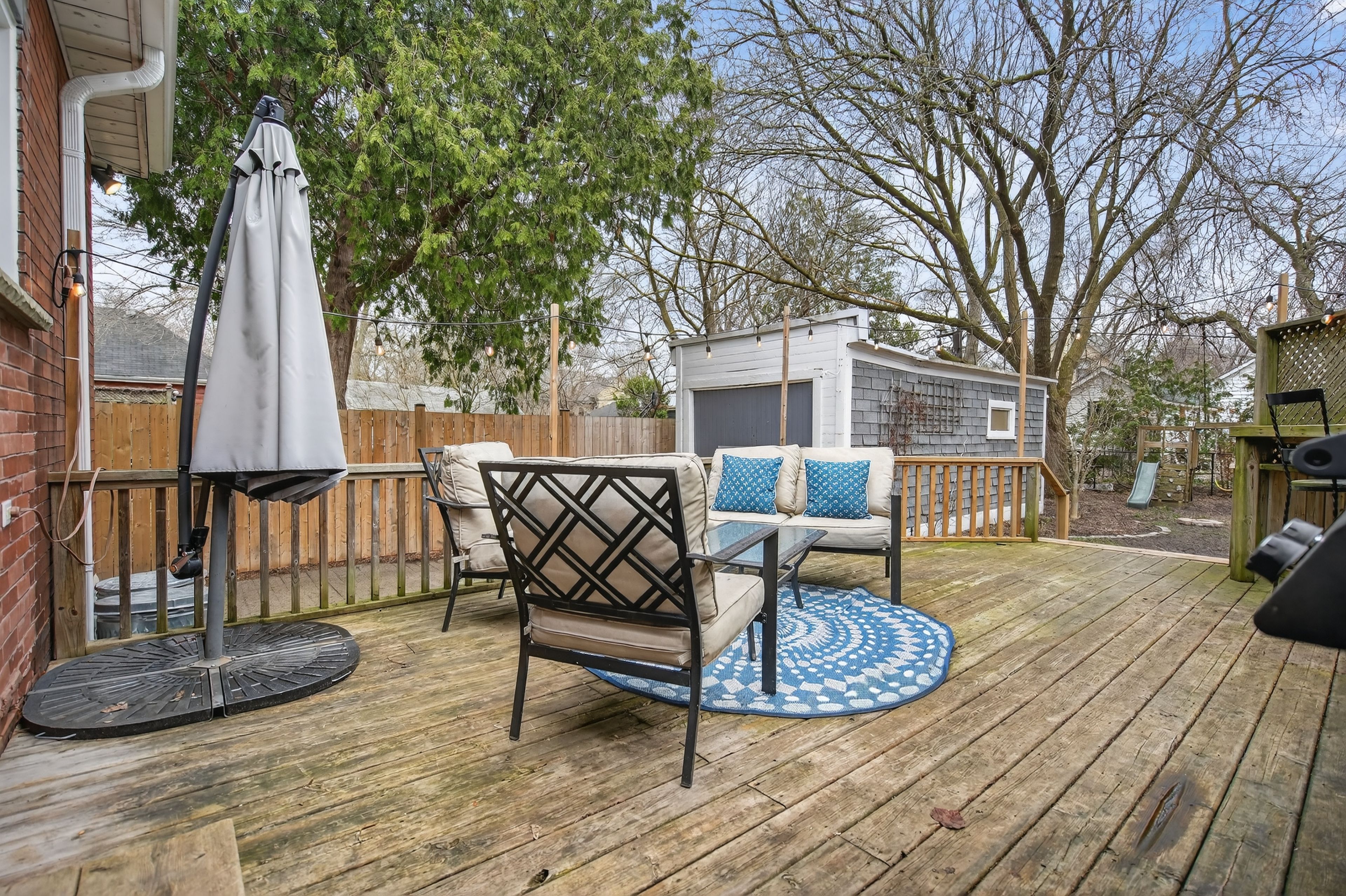 • Deep 132 ft lot and fully fenced backyard for outdoor activities.
