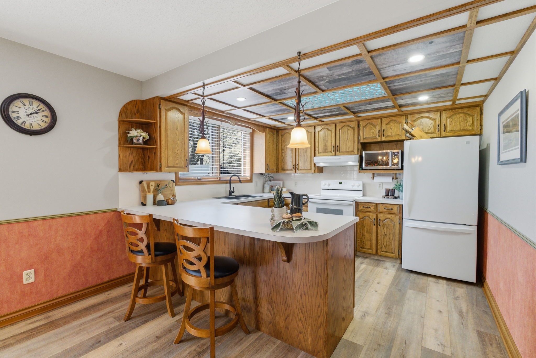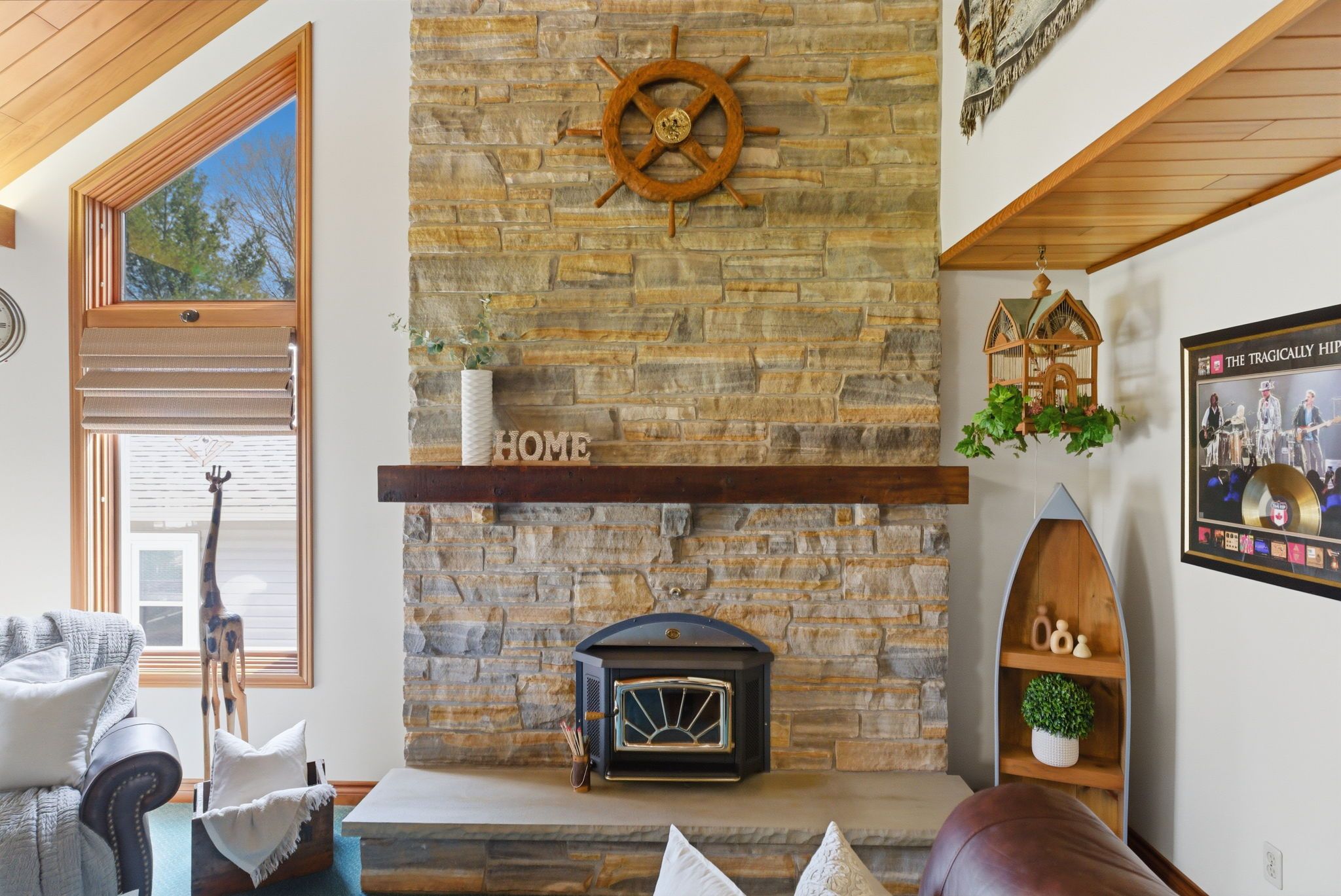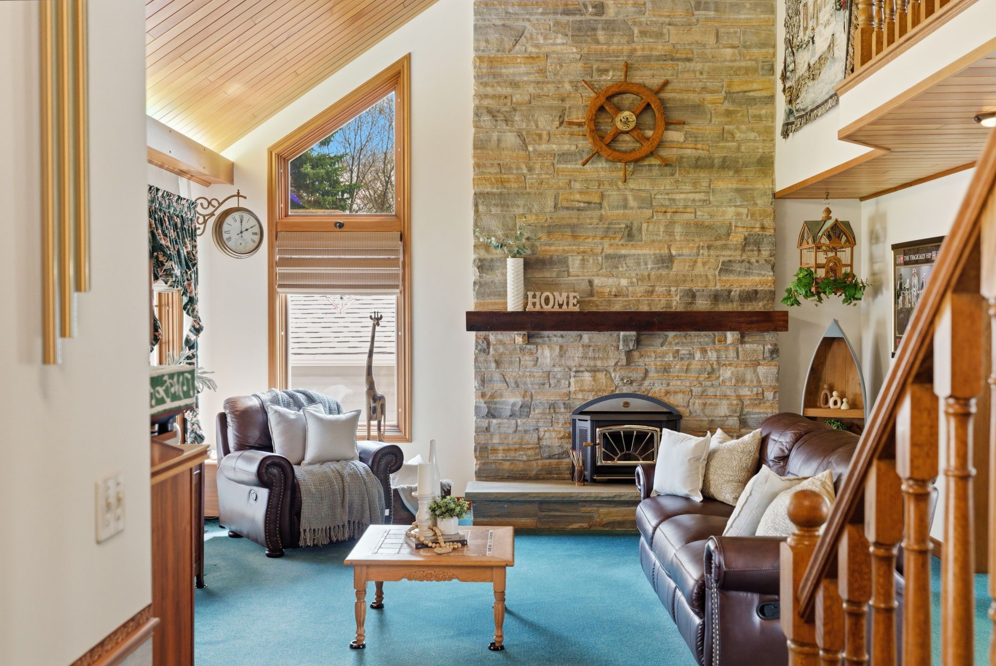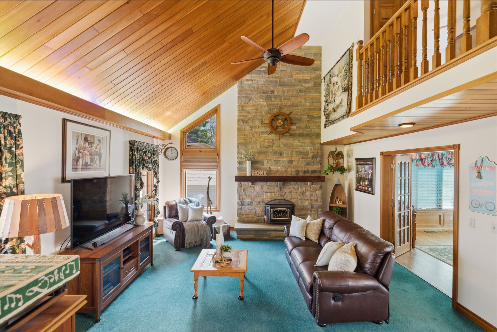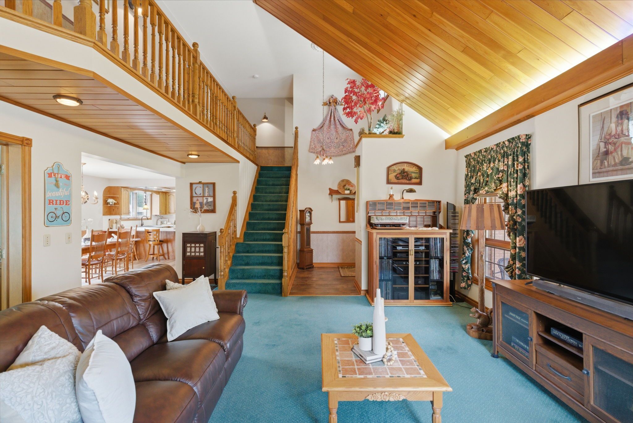 • Inviting foyer leads into a great room with a unique cedar vaulted ceiling.