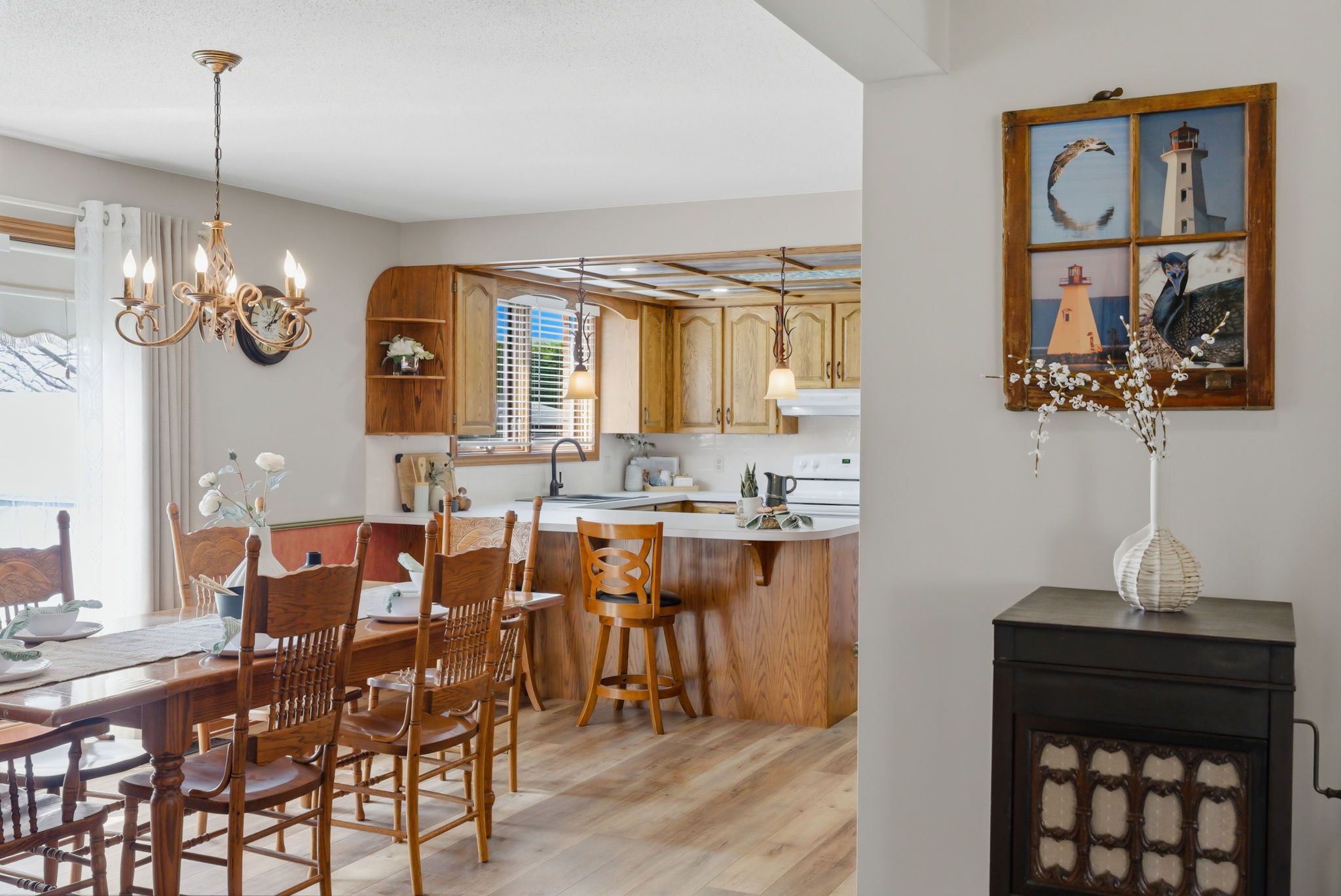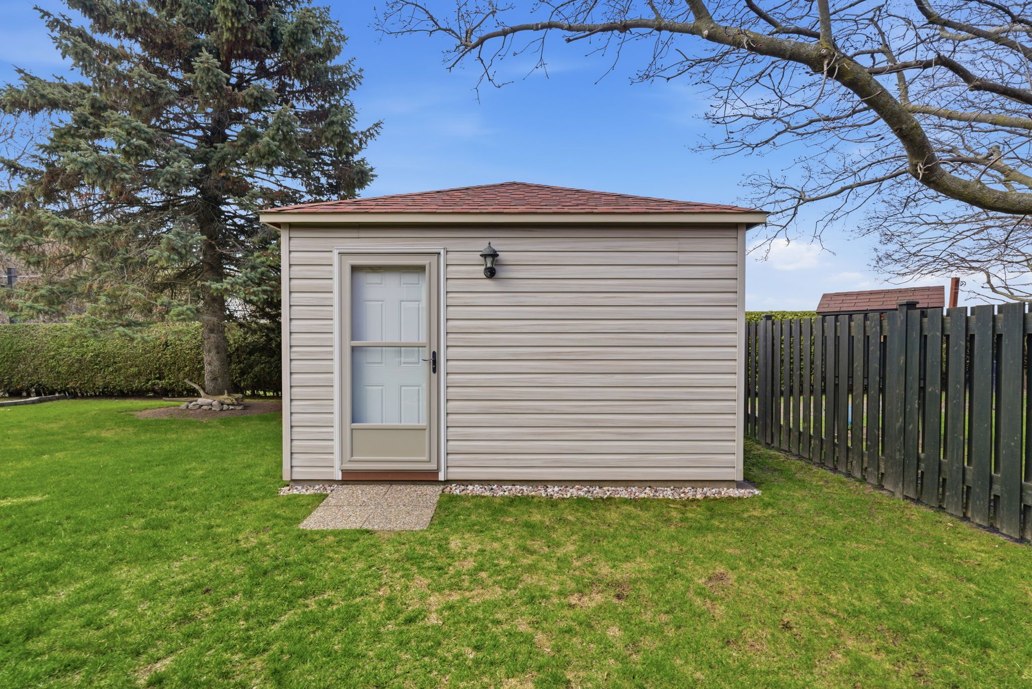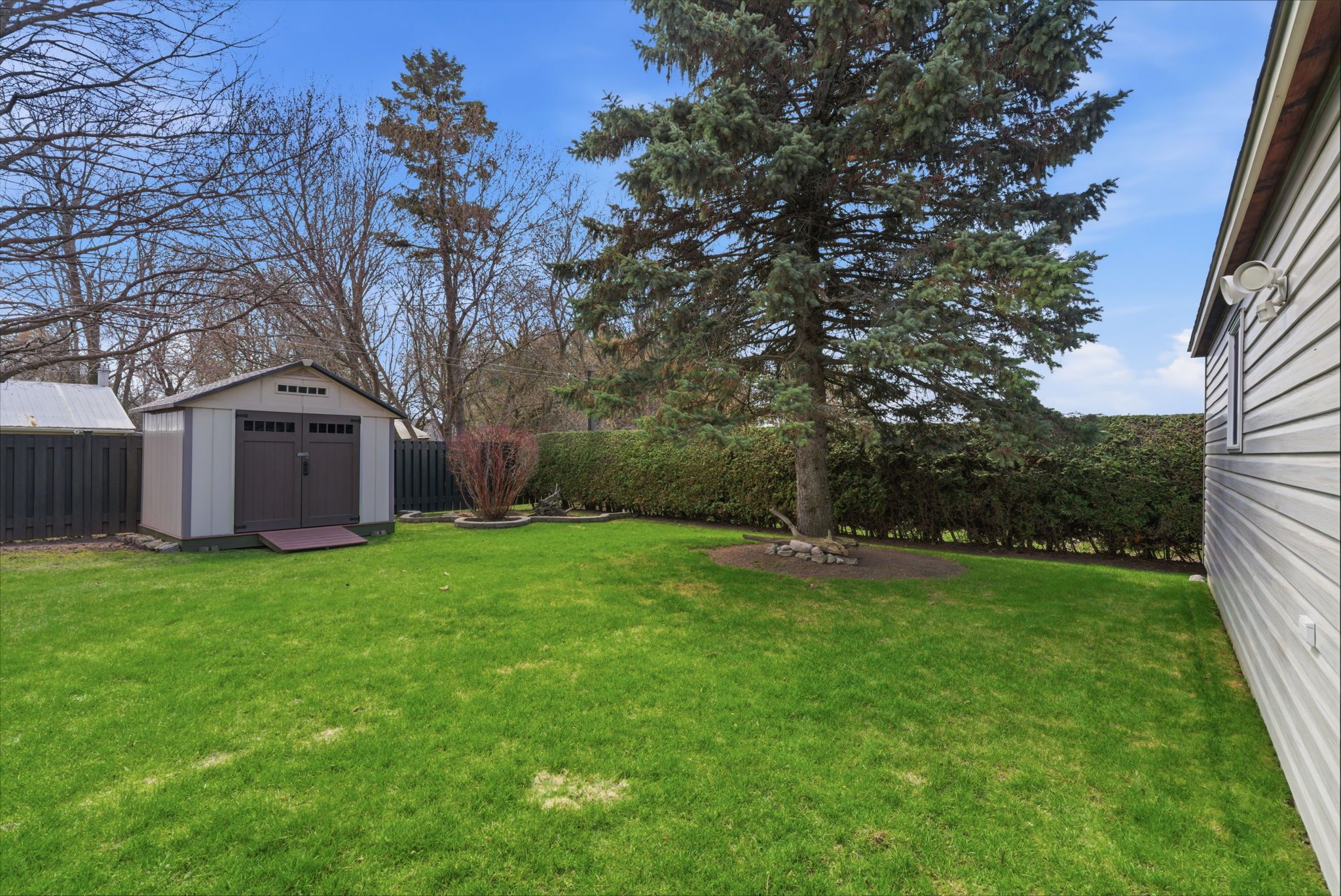 Beautiful brick 2100 sf residence with a charming veranda plus a finished basement and an attached double garage. Nestled on a generous 1/4 acre lot, this property backs onto farmlands, providing a peaceful country setting. As you enter, you're greeted by a beautiful foyer leading into the great room, where the cedar vaulted ceiling adds warmth and character. The main floor features a versatile den with walkout to a cedar deck, perfect for outdoor relaxation. The expansive kitchen and eating area boasts a breakfast bar with stylish pendant lights, closet pantry, torrey's vinyl flooring, and includes the appliances. Convenient main floor laundry room, featuring double and single sinks, ceramic backsplash, vinyl flooring, 3-piece washroom and direct access to the double garage. 3 spacious bedrooms on the upper level with the primary suite having hardwood flooring, double closet, single closet, and 5-piece ensuite bathroom with hallway access. The finished recreation area features a dry bar with vinyl flooring. There's also an office equipped with built-in cabinets and a ceramic backsplash. A large 2-room music studio is fully wired with sound proofing in the ceiling and walls, also holds potential for conversion into an additional bedroom if needed. The basement also includes a separate cold room, furnace room, and ample storage options. The attached double garage is designed for convenience, featuring three overhead doors, two at the front and one at the rear, allowing for 6+ vehicle parking on the brick driveway. Additional highlights include a fully insulated and heated vinyl-sided shop (24x14) with a subfloor, 60 amp service and welder plug, as well as a negotiable outside canvas dome. Note - roof shingles were replaced in 2017, 200 amp service, cladded windows, rogers internet, and basement sub-floor.