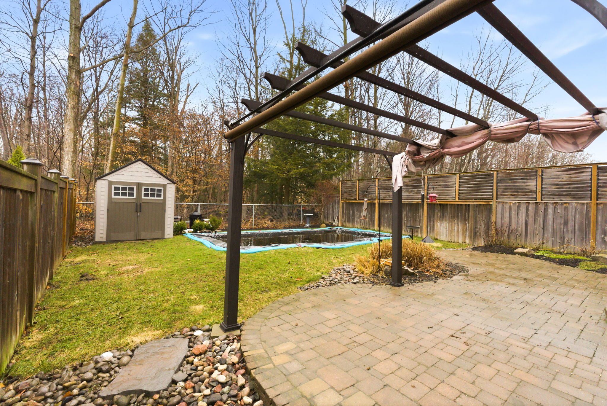 Located in a highly sought after neighbourhood & backing onto environmentally protected land, this beautifully maintained 4-bedroom home offers an incredible setting both inside and out. It is situated across from a park with a playground and soccer field. The landscaped backyard is a true retreat, featuring a heated inground saltwater pool, gardens, large privacy louvers, gazebo, and a shed. Inside, the home has been freshly painted throughout the main and upper floors, including the walls, trim, and baseboards, giving it a bright and refreshed feel. The updated kitchen features quartz countertops and stainless steel appliances, while the main floor also offers a cozy gas fireplace and convenient laundry room with access to the double car garage. Upstairs, you'll find four spacious bedrooms, including a stunning primary suite with a custom walk-in closet and a large 5-piece ensuite featuring double sinks, a jacuzzi tub, and updated quartz countertops. The second full bathroom upstairs also features double sinks and quartz counters. The unfinished basement offers plenty of potential to create additional living space tailored to your needs. Furnace 2023, pool, pump & liner 2022. Tankless water heater.