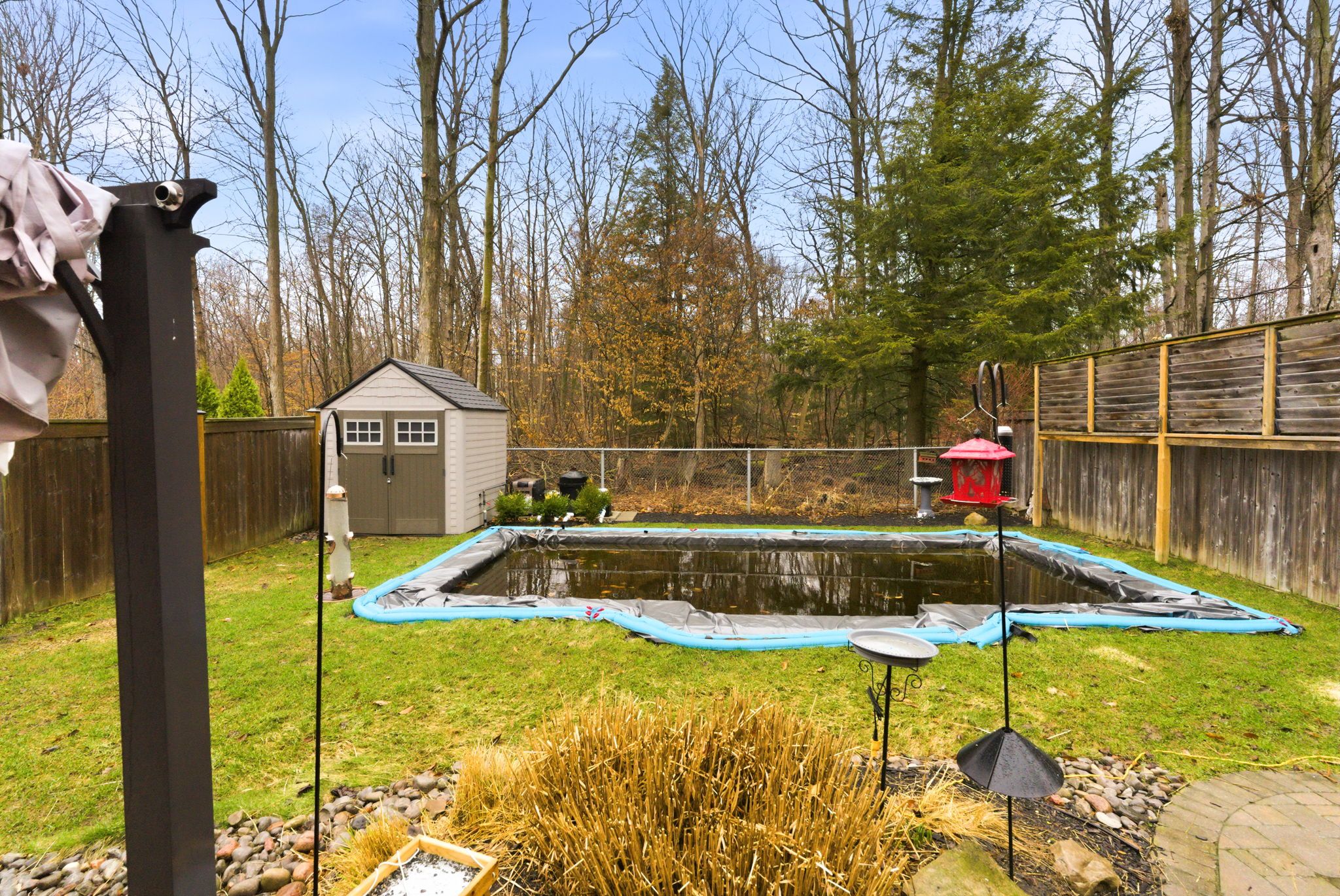 • Landscaped backyard features a heated inground saltwater pool and gazebo.