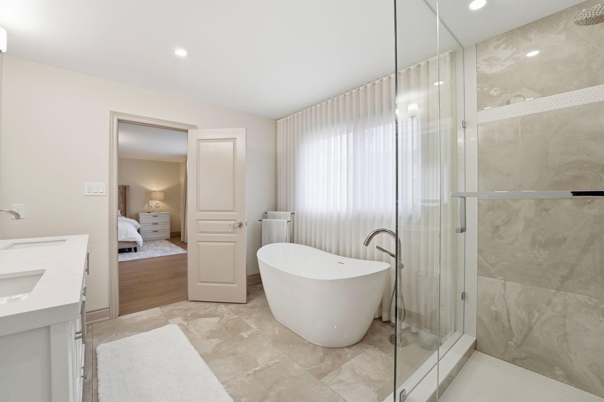 • Designer bathrooms with soaker tub and full glass shower.
