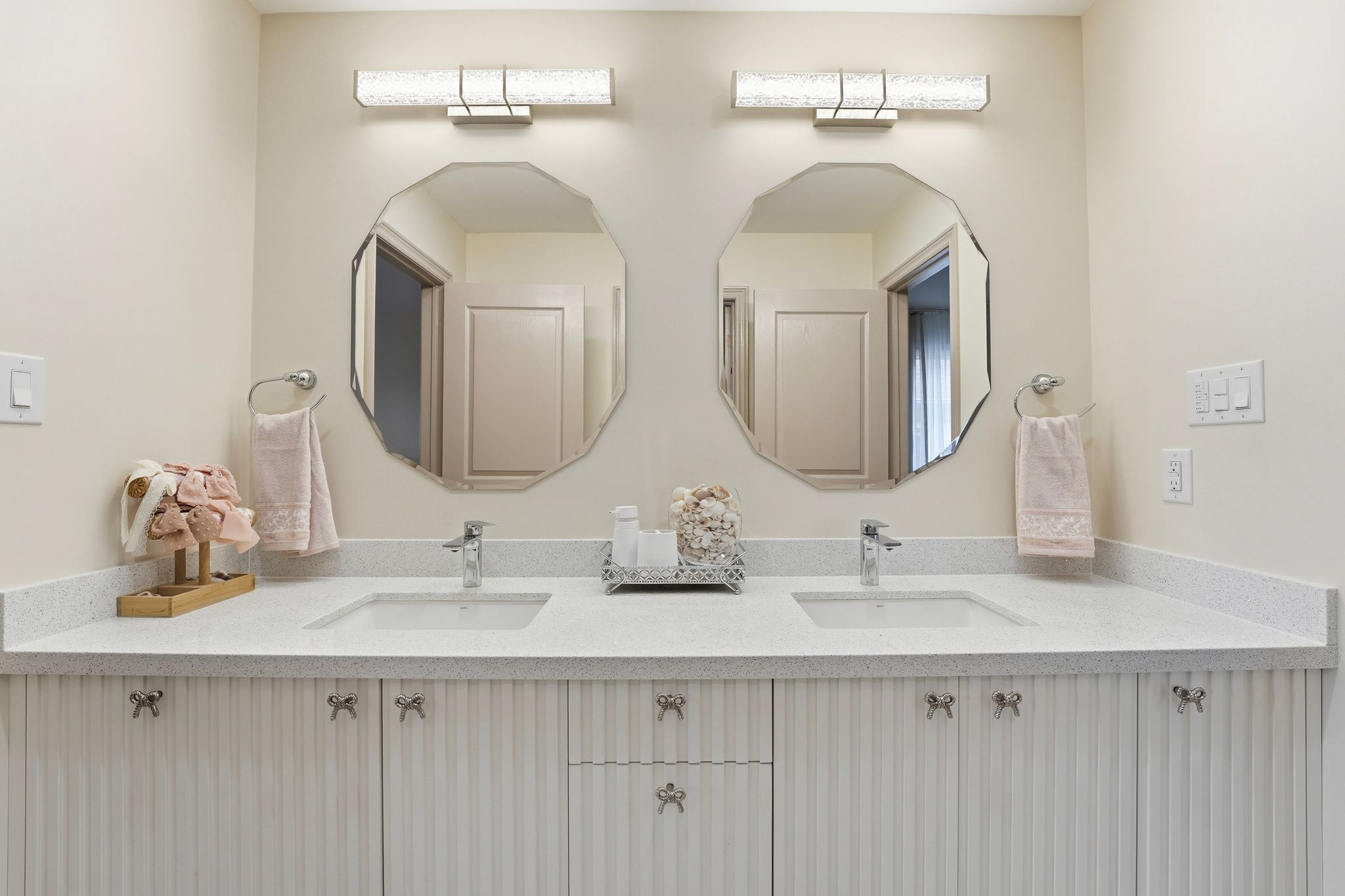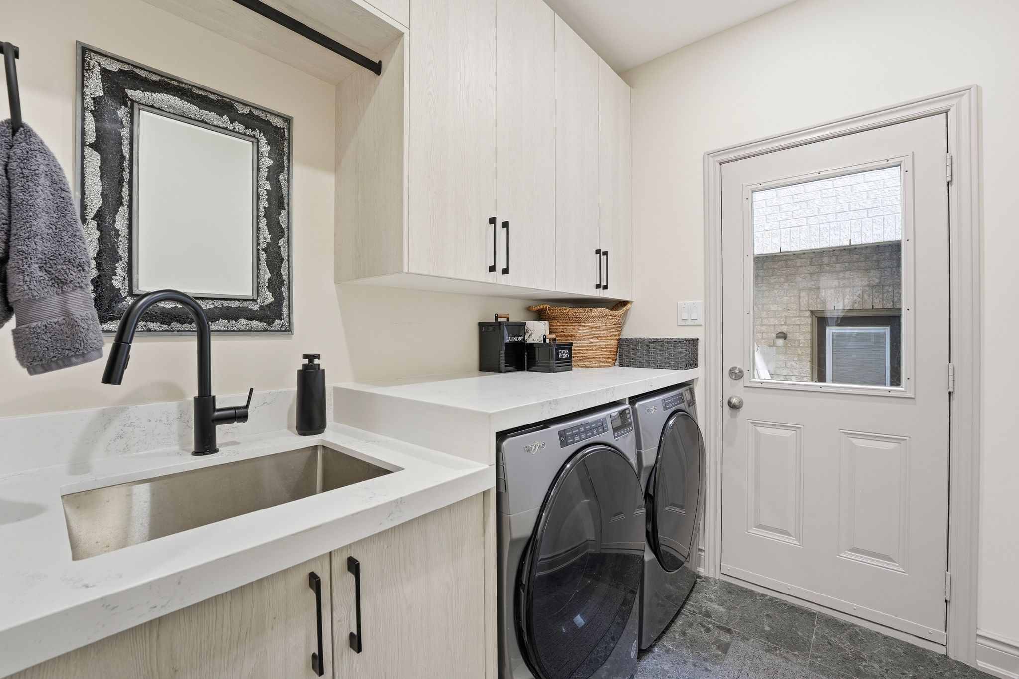 • Gourmet kitchen equipped with premium appliances and quartz countertops.