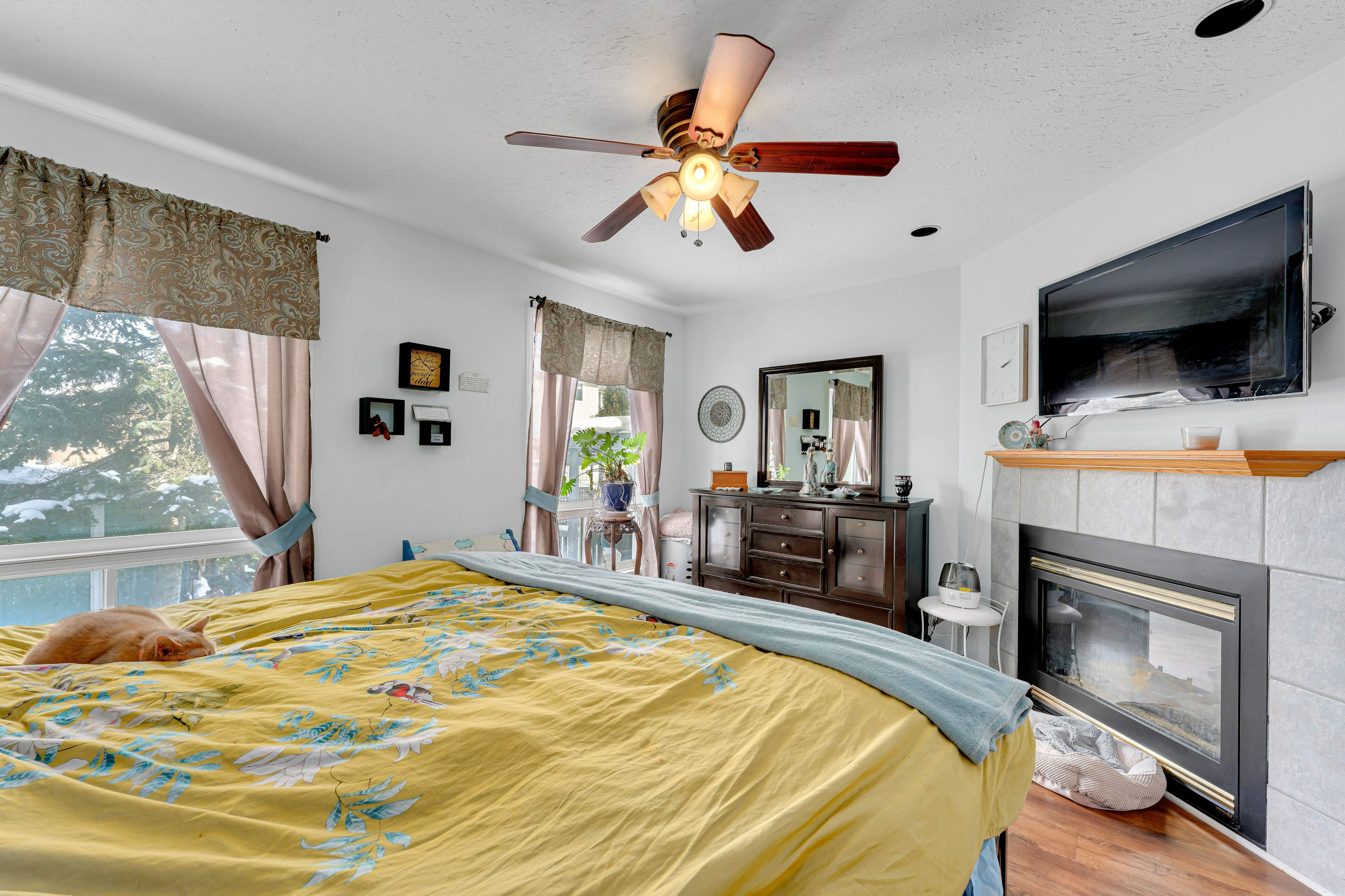 Situated in a quiet west end location, this charming bungalow is loaded with updates, plus the attached 1 1/2 garage and parking for 5 cars is ideal. From your covered front entry, step into your spacious foyer, which then gives access to your open m/l floorplan. Recently updated kitchen with quartz counters is centrally located between your cozy breakfast area on one side, or your formal dining area on the other. Double sided fireplace accents both the living room as well as the primary bedroom, sure to warm both spaces on a cold winter night. If you like natural light, you will love the m/l sun room that gives full views of the private back yard, overlooking city park land with no direct rear neighbors. Two spacious bedrooms, 5pc bath and laundry complete the main level. L/l floorplan is all bonus, offering a family size rec-room, 3rd bedroom with a walk in closet, 3pc bath, utility room and storage area. If you enjoy spending time in your back yard, wait until you see the covered rear porch, which allows for a year around bbq, then step down to your private 10'x14' pergola, on a 12'x15' composite deck and 2 person spaberry hot tub ! Fully fenced, stunning landscaping and garden shed are the perfect finishing touches to this back yard oasis ! Just some of the updates in last 5 years include the shingles, appliances, kitchen cabinets, quartz counters, deck, pergola & hot tub !