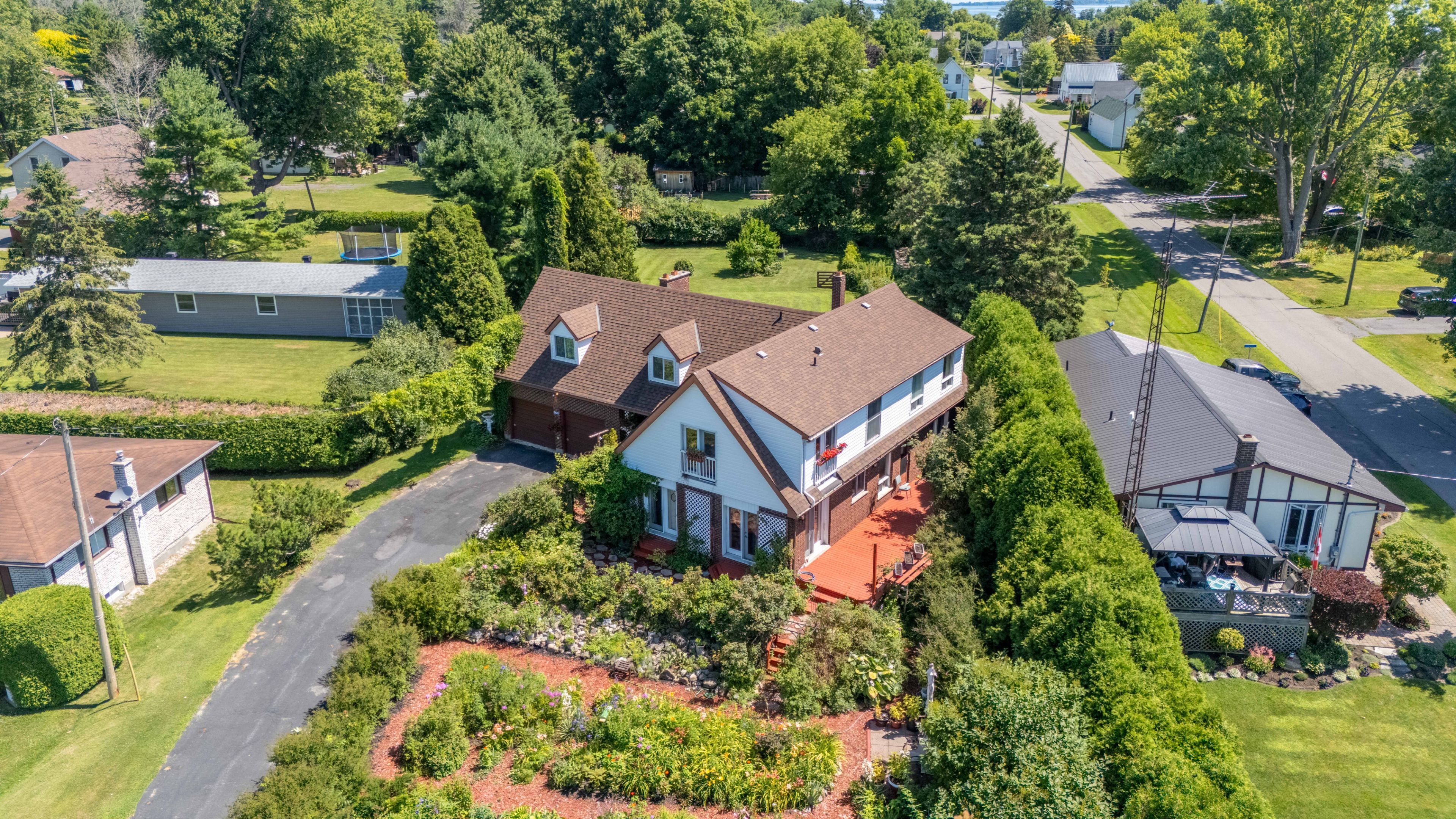 Motivated seller here! Come and take a look at this gorgeous 2 story, 5 bedroom home with picturesque views of the st lawrence river from both levels! Nestled in a peaceful setting, this property is perfect for those seeking both space and natural beauty. There is a stunning flower garden in the front yard, and so much greenery around the fully fenced expansive backyard! Inside, you will find room for everyone, including two main floor living rooms, a formal dining space, full bathroom and bedroom all on the main level. Upstairs are 4 bedrooms plus another full bathroom. The primary bedroom has two patio doors with juliet balconies which look out onto the st lawrence river - a beautiful sight to wake up to. There are many large windows and newer patio doors throughout the home which allow for so much natural light to come through. The two car attached garage has access to the basement, and it also has a loft for extra storage! This is a large home which can meet the needs for many different situations, which may include a multi-generational home, large family, or an air bnb. With a fantastic location, on a quiet street with a 5 minute walk to a magical park where you can enjoy the riverfront, or a 5 minute drive into morrisburg for shopping, restaurants, schools and so much more! An easy 40 minute drive to brockville and cornwall, or 1 hour to ottawa. Don't miss this rare opportunity to own a large, nature-inspired home with breathtaking views and unmatched outdoor charm. Schedule your private showing today!