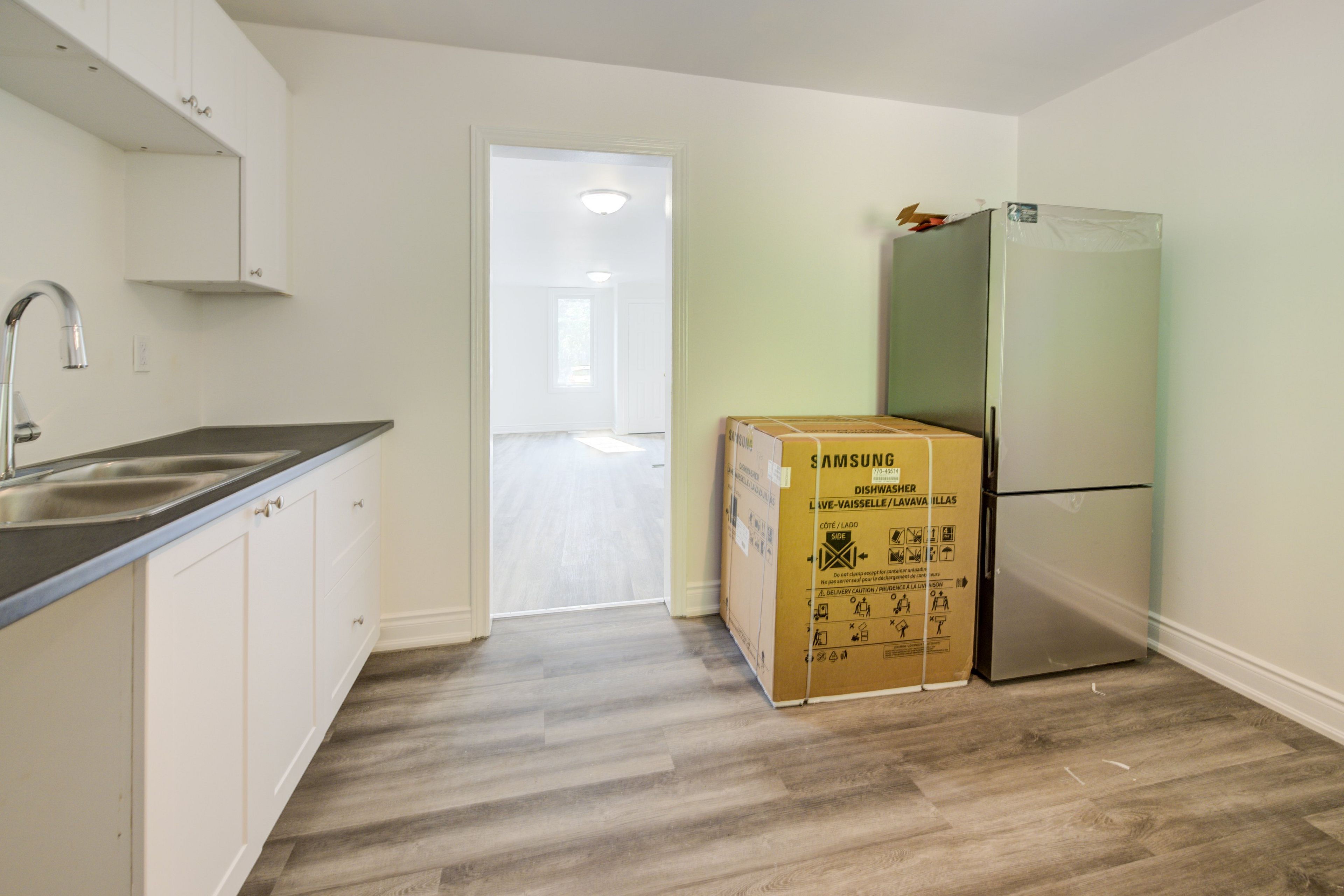 Welcome to this charmingly renovated two-level home nestled in a quiet, family-friendly area of hamilton. Offering over 700 square feet of thoughtfully designed living space, this home combines modern updates with comfortable, functional living. Step inside to discover an open-concept main floor featuring brand new laminate flooring and a fresh, professional paint job throughout. The layout allows for easy flow between the living, dining, and kitchen areas. The kitchen has been fully updated with brand new appliances, sleek cabinetry, and modern finishes, ready for you to move in and enjoy. Upstairs, youll find two bright and cozy bedrooms, perfect for a small family, home office, or guest space. Step outside onto your brand new deck, perfect for morning coffee or evening bbqs. Close to amenities and public transit, this home also includes parking for one car, adding convenience to city living. Whether you're a first-time buyer, downsizer, or investor, this fully renovated property checks all the boxes.
