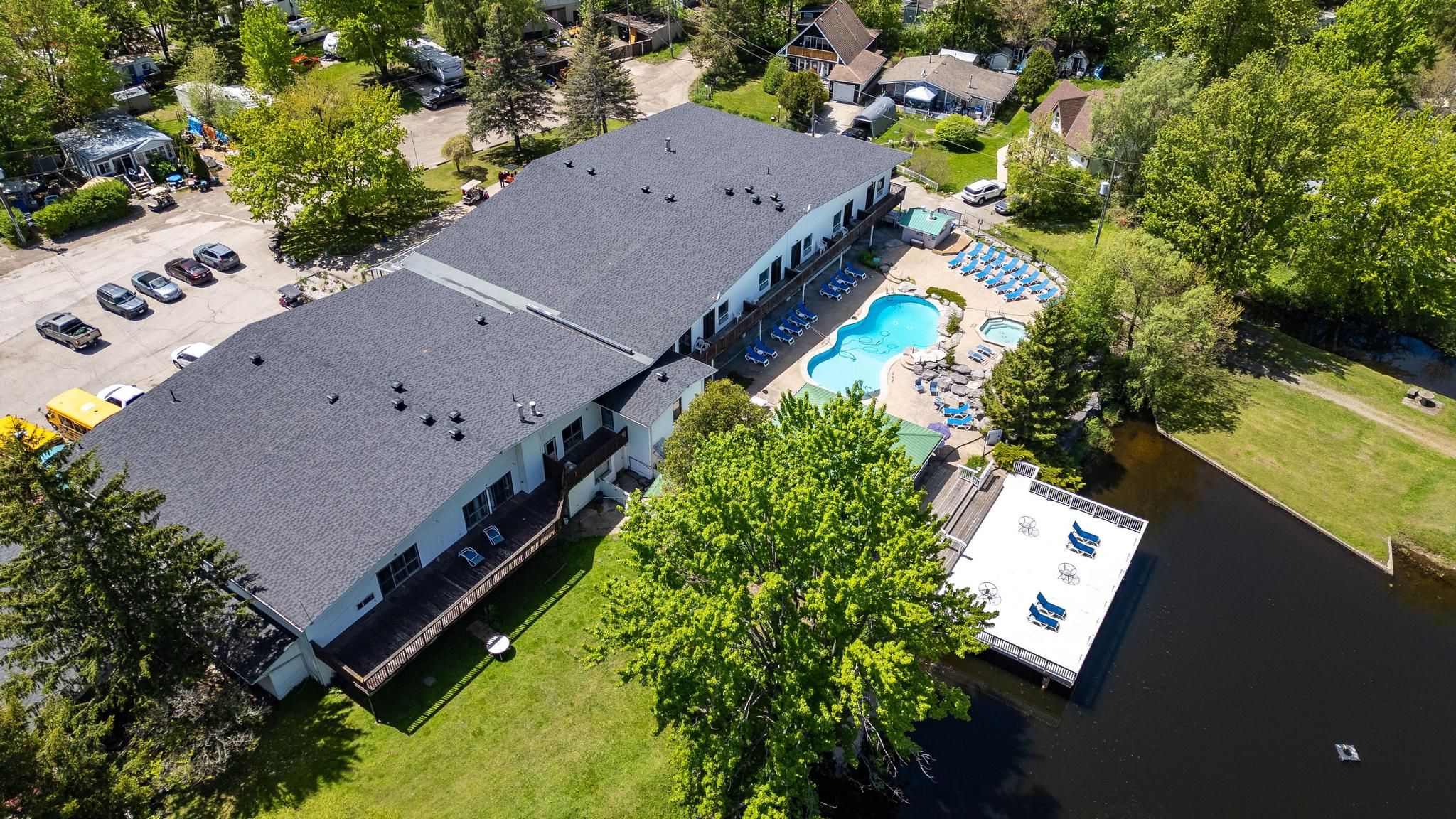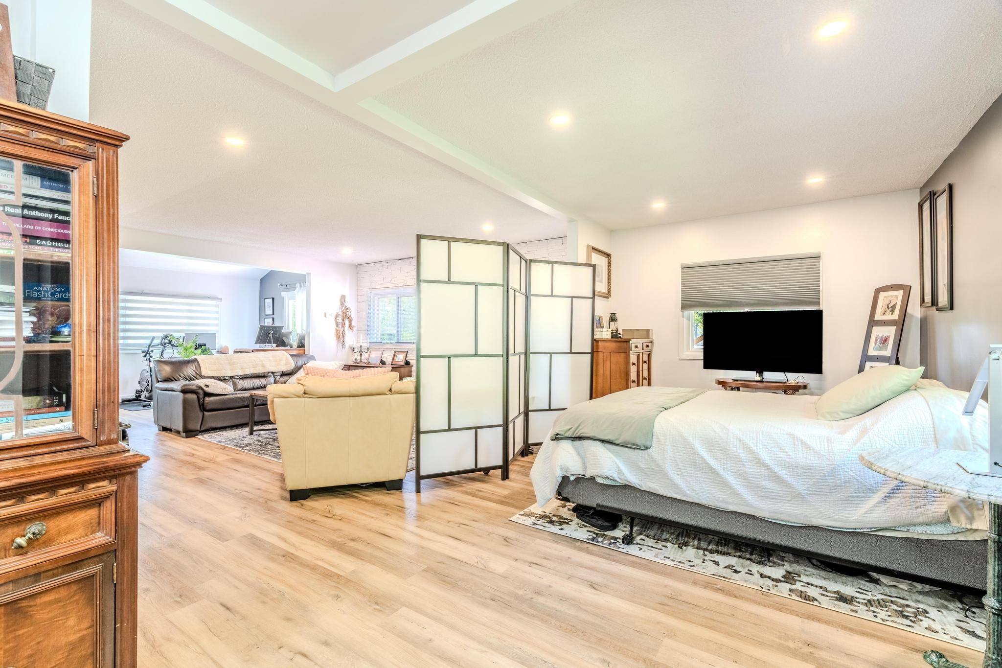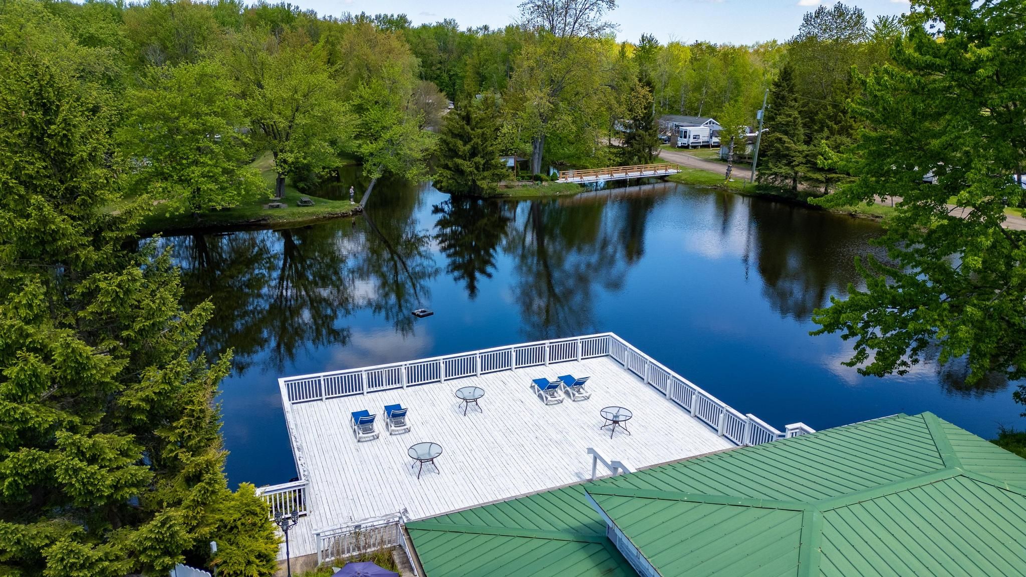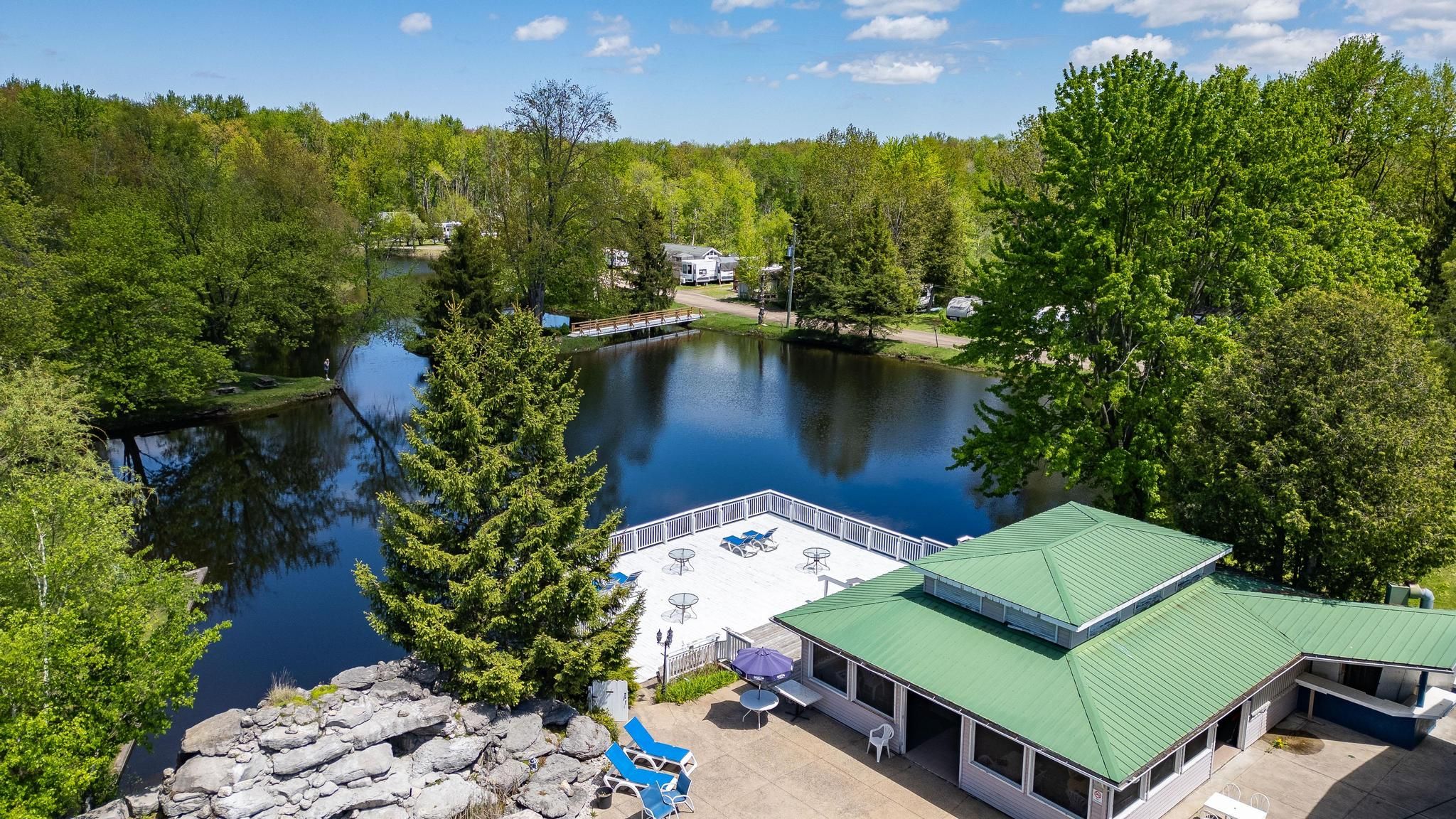 • Open concept 1-bedroom home on a peaceful pie-shaped lot by a pond.