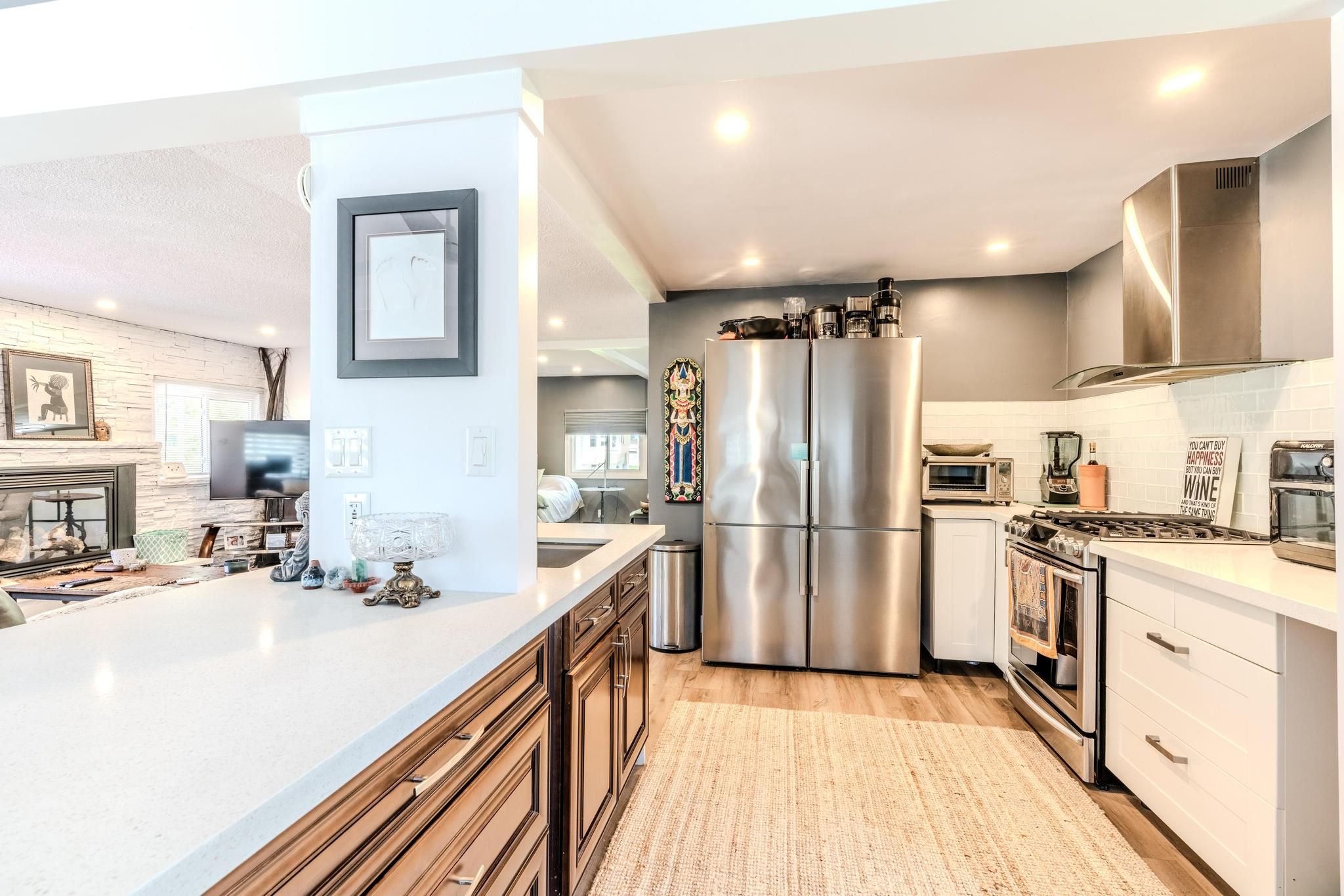 • Recently renovated with vinyl plank flooring and modern Caesarstone countertops.
