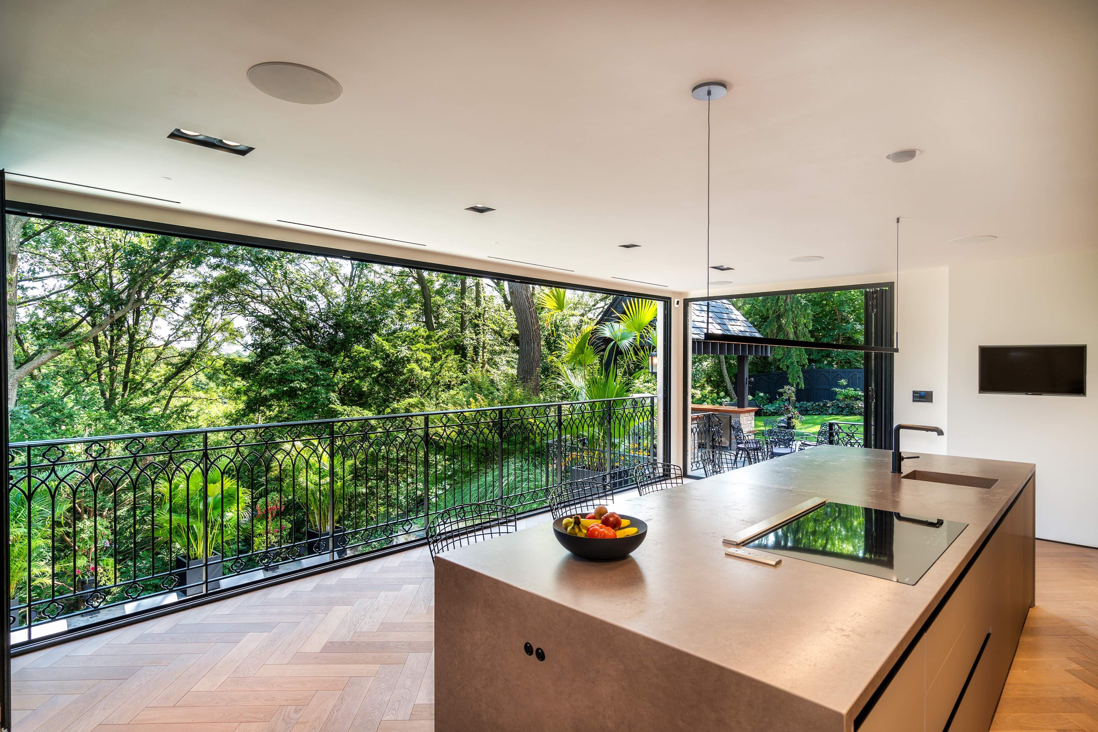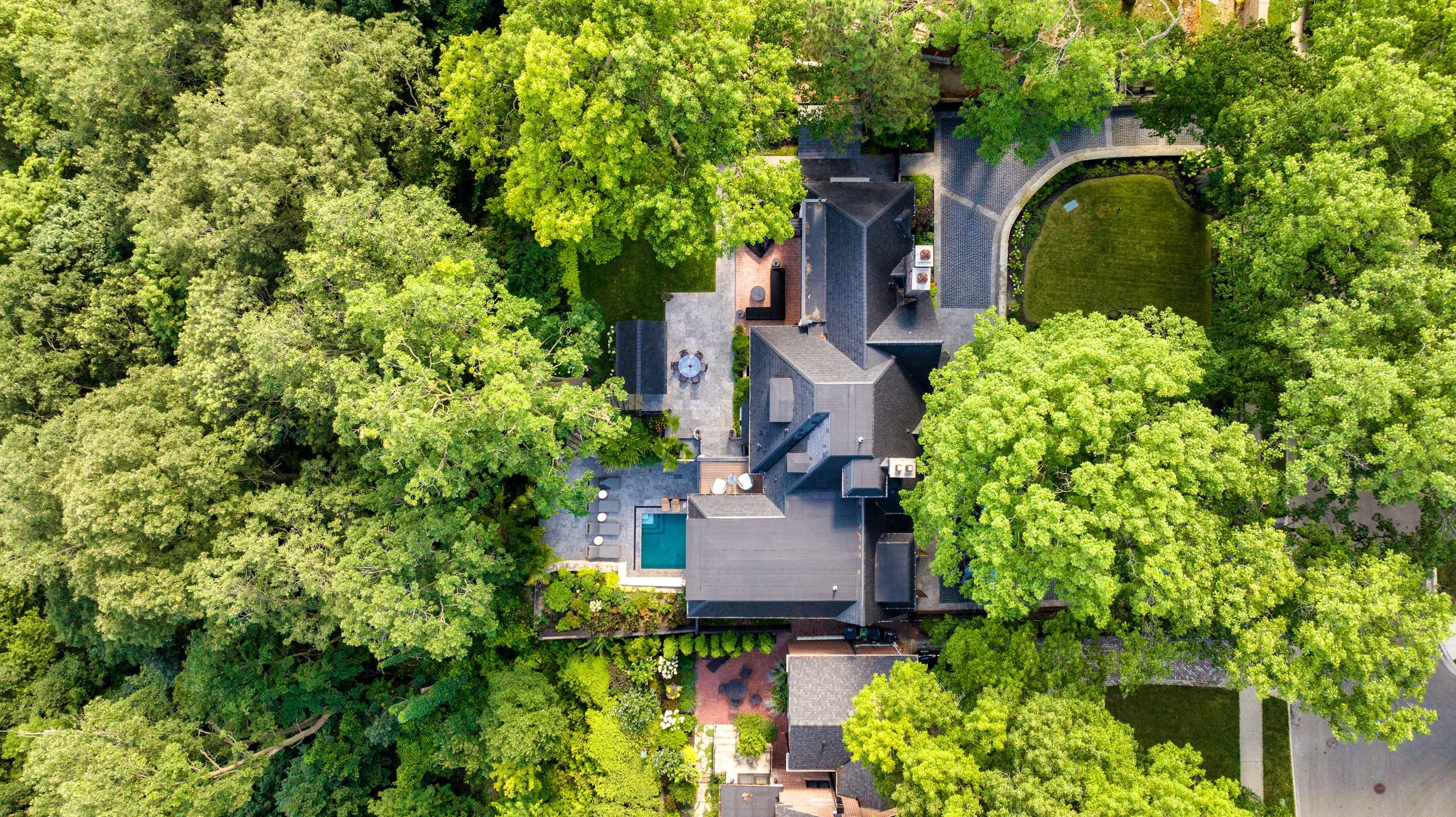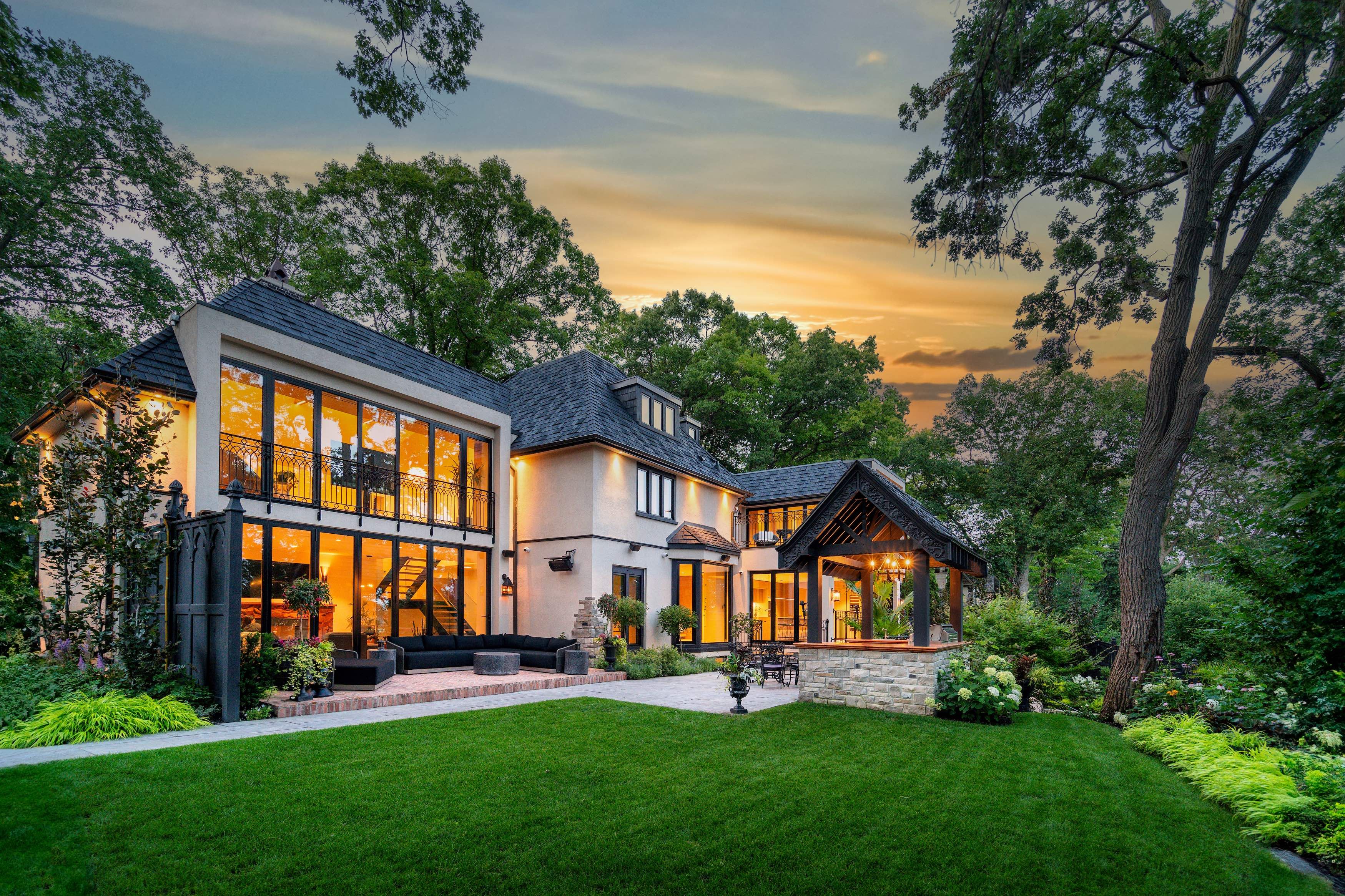 This stunning 1929 tudor home has been meticulously transformed into a modern masterpiece, seamlessly blending historic charm with contemporary luxury and cutting-edge technology. Set on a sprawling 100' x 277' ravine lot, this $6 million renovation offers an exceptional living experience in one of toronto's most prestigious neighborhoods. The grand exterior features a restored j. W. Fiske cast iron fountain and a heated cobblestone driveway, accommodating over 10 vehicles. Inside, every detail reflects craftsmanship and sophistication. The chef's kitchen, designed by scavolini, is equipped with wolf and gaggenau appliances, while radiant-heated herringbone oak floors lead to floor-to-ceiling european folding glass doors that open to stunning ravine views. The spa-like bathrooms boast heated marble floors, european wall-mounted toilets, and custom millwork. Hidden hvac systems, motorized blinds, and recessed lighting create a sleek, minimalist aesthetic. A state-of-the-art audio system, includes over 60 bowers & wilkins speakers, powered by bryston, sonos, and nad amps. Four outdoor zones with buried subwoofers ensure exceptional sound across the property. The lower level is designed for entertainment, featuring 10' ceilings, polished concrete floors, a full-size arcade, a professional gym, and an indoor sauna. A walkout leads to a year-round heated pool, hot tub, and an all-season patio with infrared heaters, perfect for outdoor enjoyment in any weather. The home is fully equipped with app controlled automation for lighting, blinds, hvac, security, audio, access, pool/spa/sauna. Residents enjoy access to the exclusive baby point club, offering tennis, lawn bowling, and community events. A perfect blend of historic charm and modern luxury, this home offers an unmatched living experience. The home features a durable composite cedar roof with a lifespan of up to 60 years, offering long-lasting protection and timeless aesthetic appeal.
