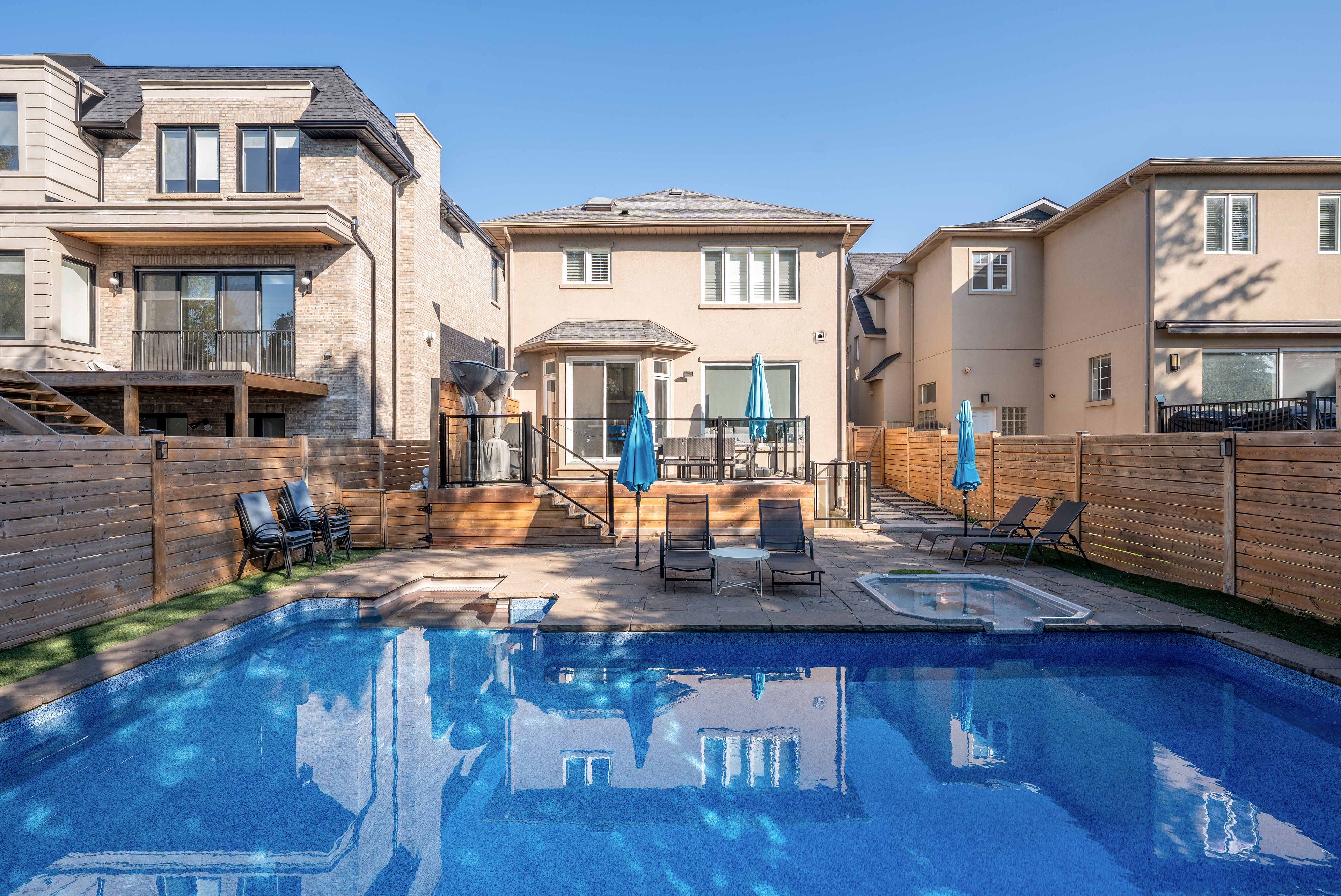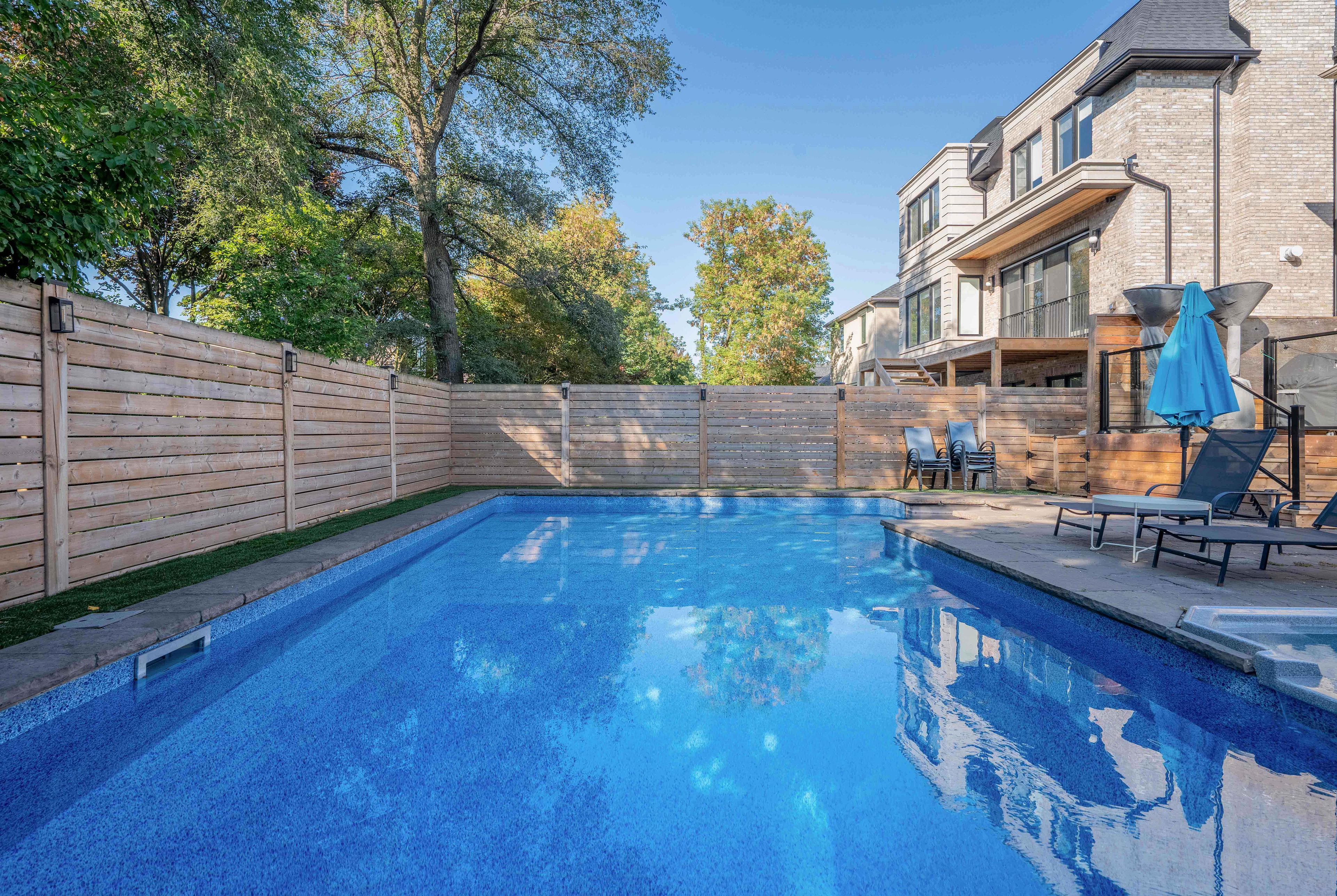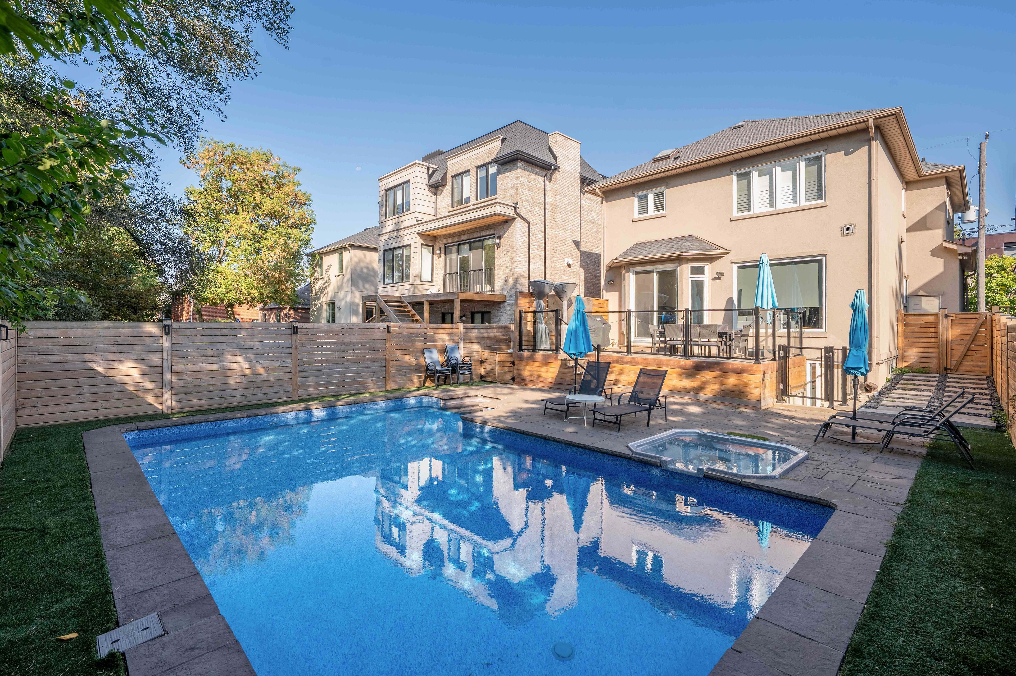 A turnkey family home on the sunny south side of one of north toronto's most coveted streets, 57 burncrest offers space, flow, and thoughtful upgrades in all the right places. Extensively updated within the last five years, the home features 2,447 square feet of above-grade living space plus a fully finished walk-up lower level that truly functions as an extension of the home. The main floor is designed for real family living and effortless entertaining, with generously proportioned living and dining rooms, a renovated eat-in kitchen with newer appliances, and a dedicated home office or secondary living space completed during the same renovation cycle. Hardwood floors and interior railings have been refinished throughout, adding warmth and continuity. Upstairs, four well-sized bedrooms include a spacious primary retreat with walk-in closet and five-piece ensuite. One additional bedroom enjoys its own four-piece ensuite and walk-in closet, ideal for guests or older children. Second-floor laundry adds everyday convenience. The lower level exceeds expectations, featuring a full bedroom with four-piece semi-ensuite-perfect as a nanny or in-law suite-along with a large recreation room, dedicated home gym, and a walk-up to the backyard. Outside, professionally landscaped grounds frame a private backyard oasis with a saltwater pool and hot tub. With a new liner installed within the last two years and major pool systems updated within five, summers here are about enjoyment, not upkeep. Ideally located close to avenue road shops and restaurants, the toronto cricket skating & curling club, and just minutes from yorkdale, highway 401, sunnybrook hospital, and the wilson subway station-this is refined north toronto living at its best.