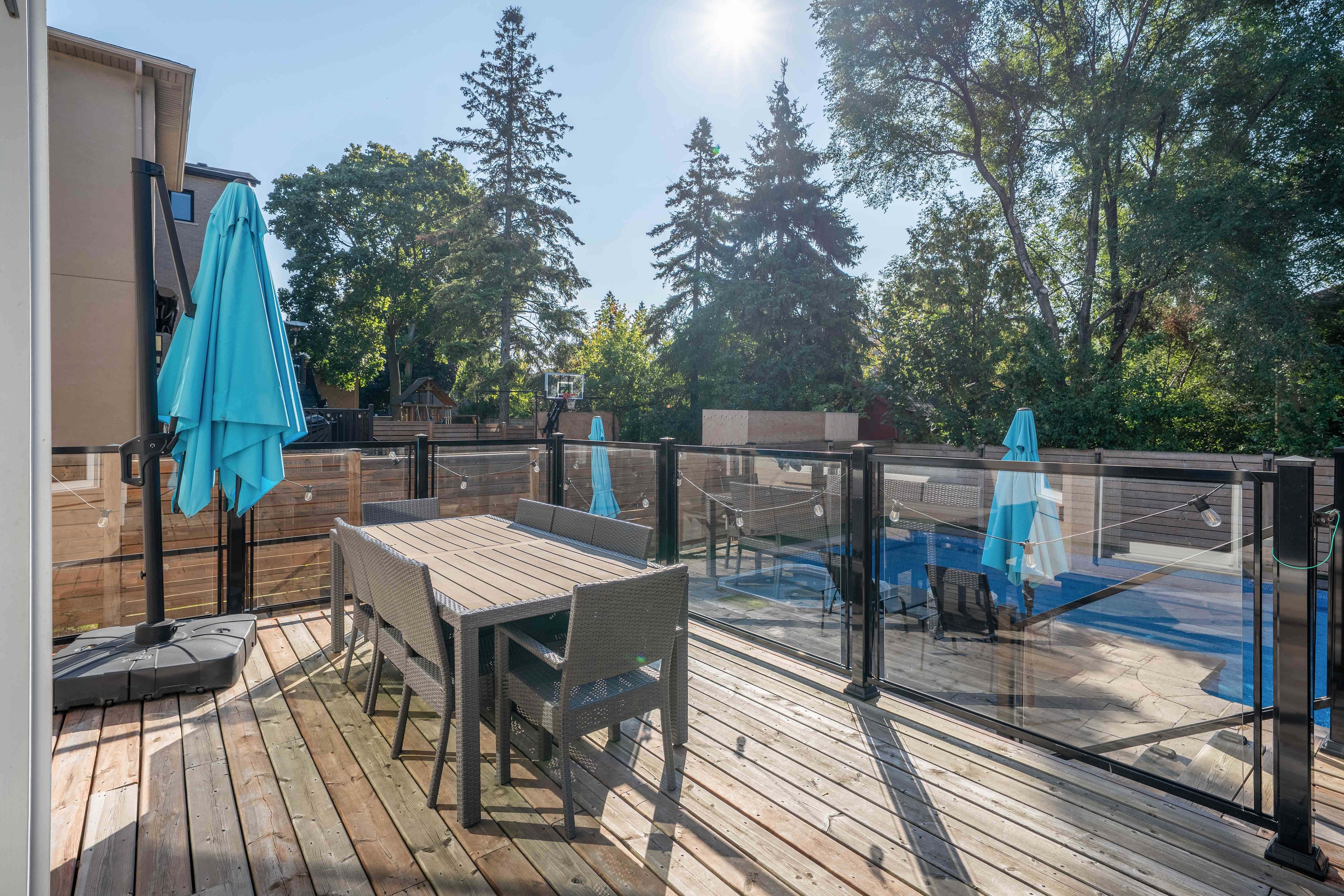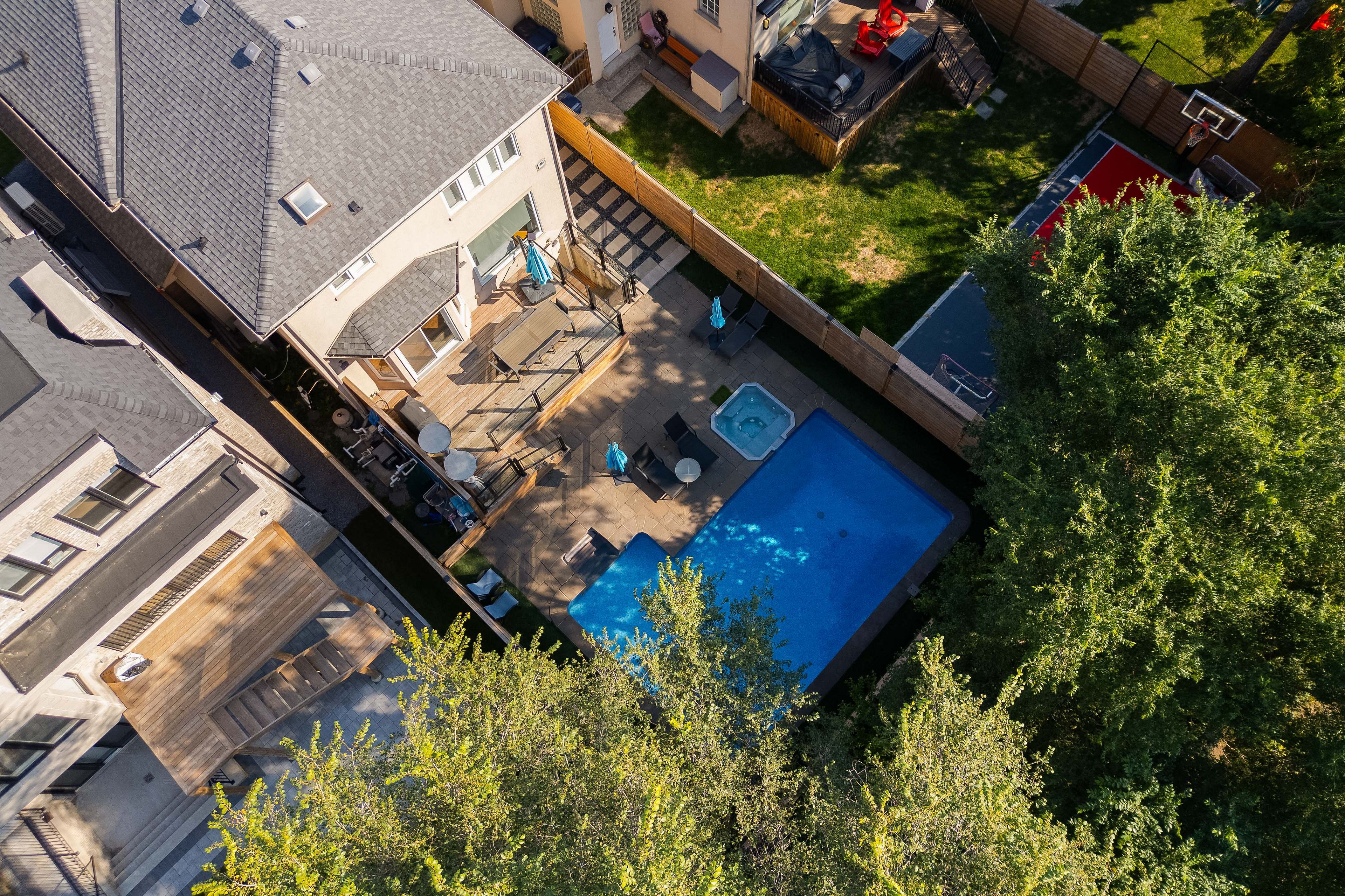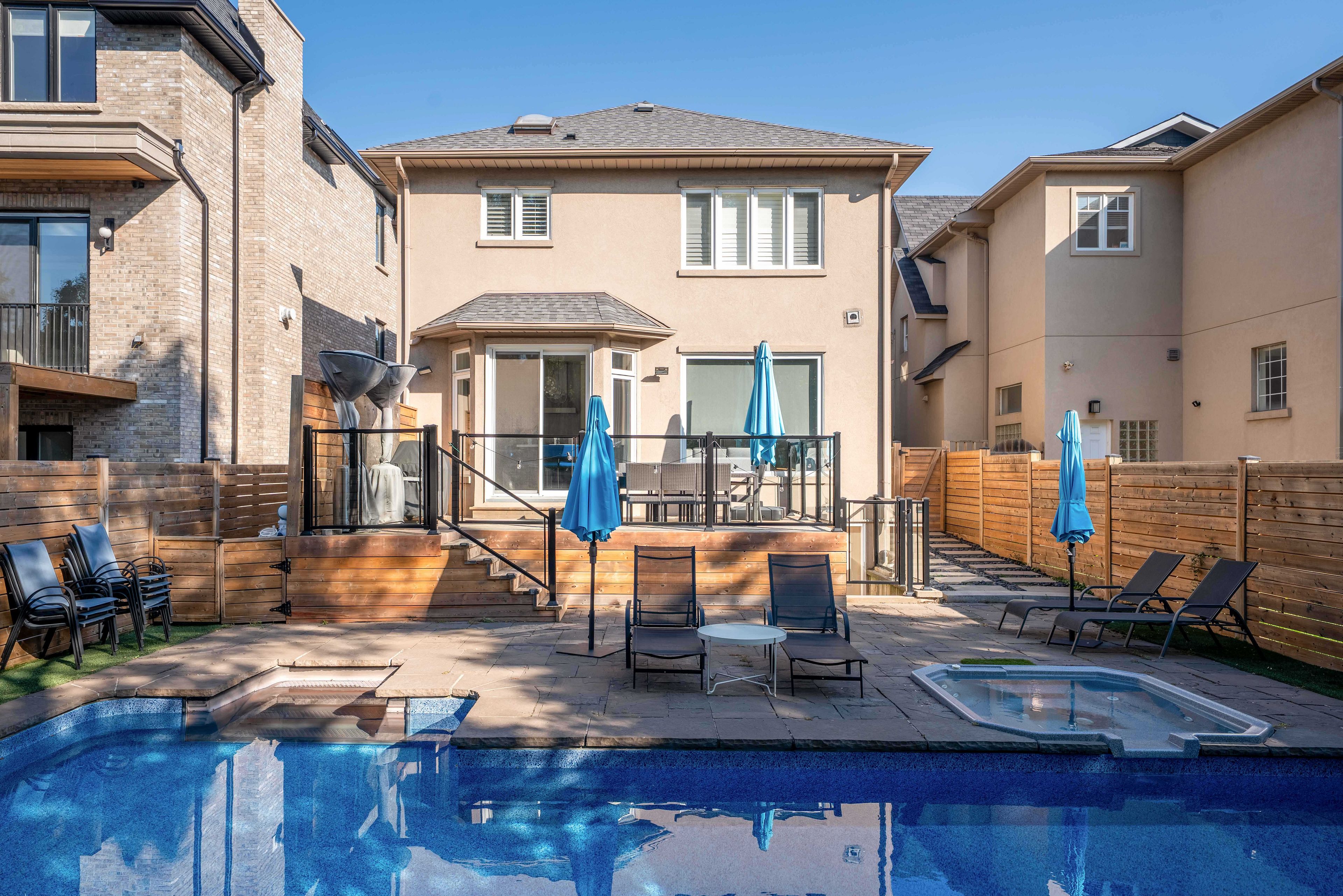 A turnkey family home on the sunny south side of one of north toronto's most coveted streets, 57 burncrest offers space, flow, and thoughtful upgrades in all the right places. Extensively updated within the last five years, the home features 2,447 square feet of above-grade living space plus a fully finished walk-up lower level that truly functions as an extension of the home. The main floor is designed for real family living and effortless entertaining, with generously proportioned living and dining rooms, a renovated eat-in kitchen with newer appliances, and a dedicated home office or secondary living space completed during the same renovation cycle. Hardwood floors and interior railings have been refinished throughout, adding warmth and continuity. Upstairs, four well-sized bedrooms include a spacious primary retreat with walk-in closet and five-piece ensuite. One additional bedroom enjoys its own four-piece ensuite and walk-in closet, ideal for guests or older children. Second-floor laundry adds everyday convenience. The lower level exceeds expectations, featuring a full bedroom with four-piece semi-ensuite-perfect as a nanny or in-law suite-along with a large recreation room, dedicated home gym, and a walk-up to the backyard. Outside, professionally landscaped grounds frame a private backyard oasis with a saltwater pool and hot tub. With a new liner installed within the last two years and major pool systems updated within five, summers here are about enjoyment, not upkeep. Ideally located close to avenue road shops and restaurants, the toronto cricket skating & curling club, and just minutes from yorkdale, highway 401, sunnybrook hospital, and the wilson subway station-this is refined north toronto living at its best.