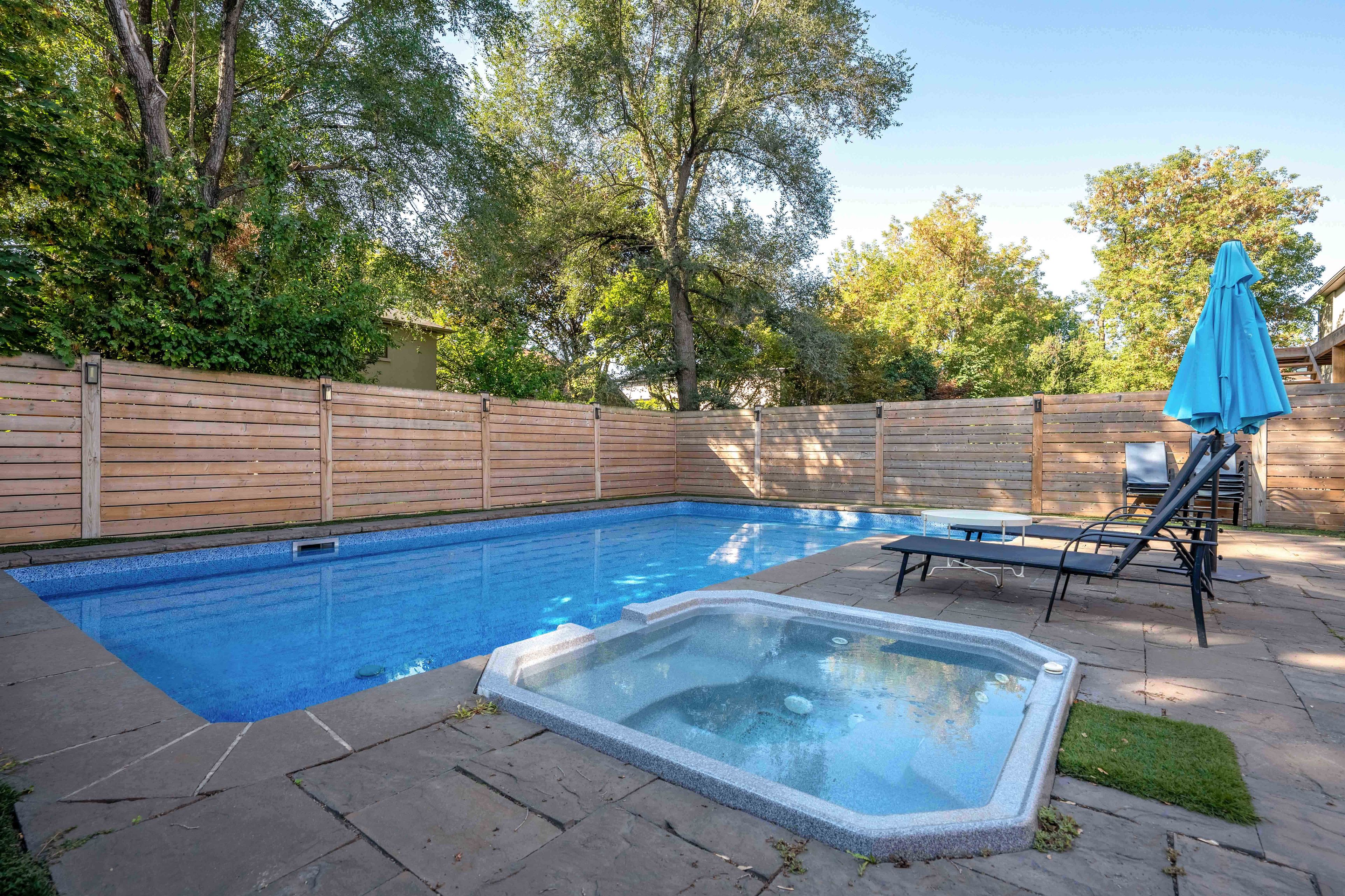 • Private backyard oasis with saltwater pool and hot tub for summer enjoyment.