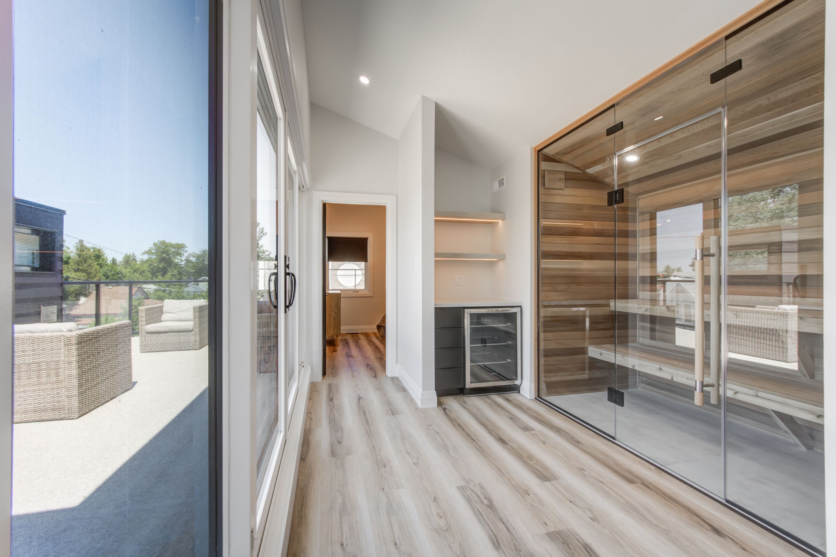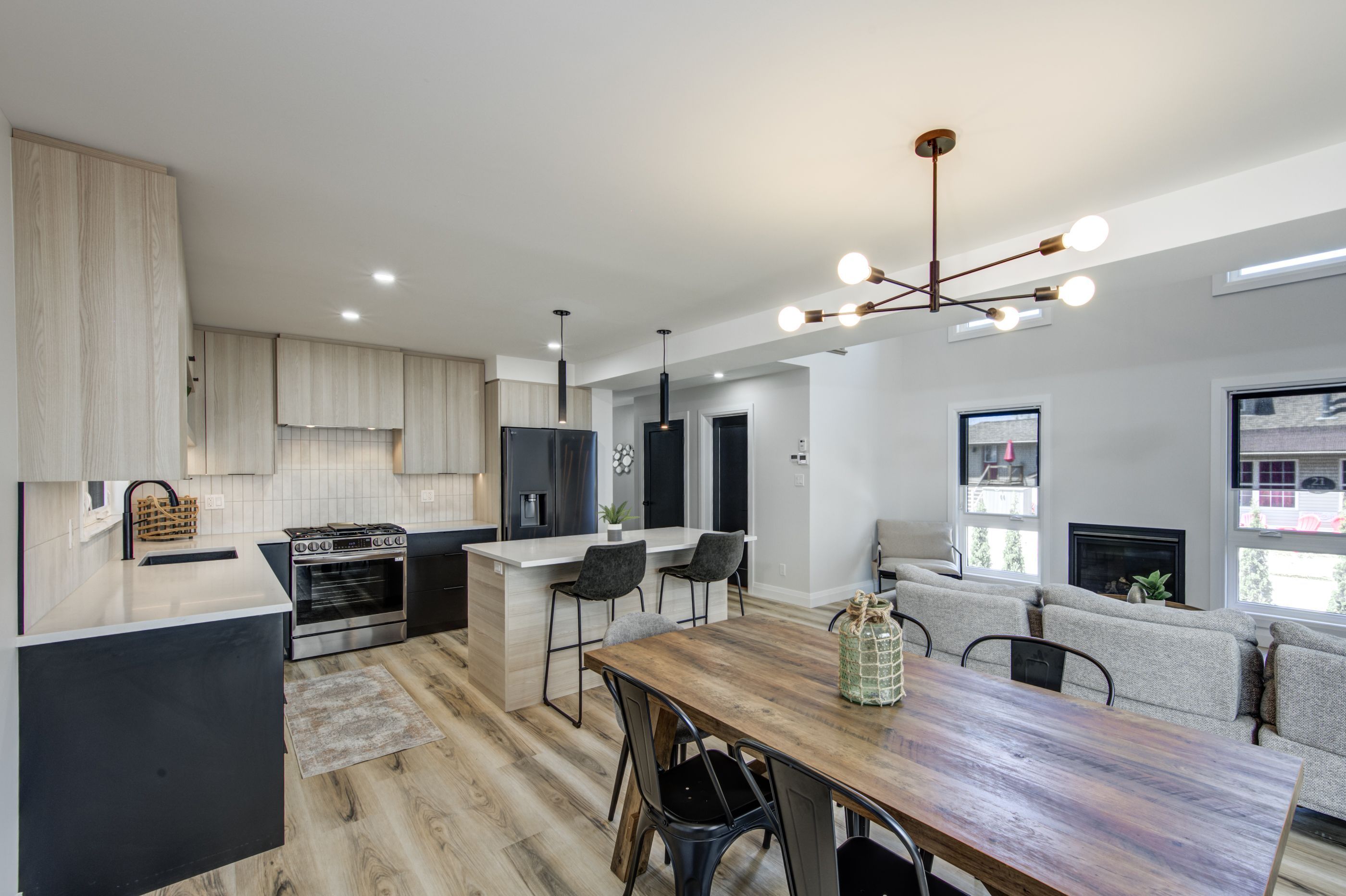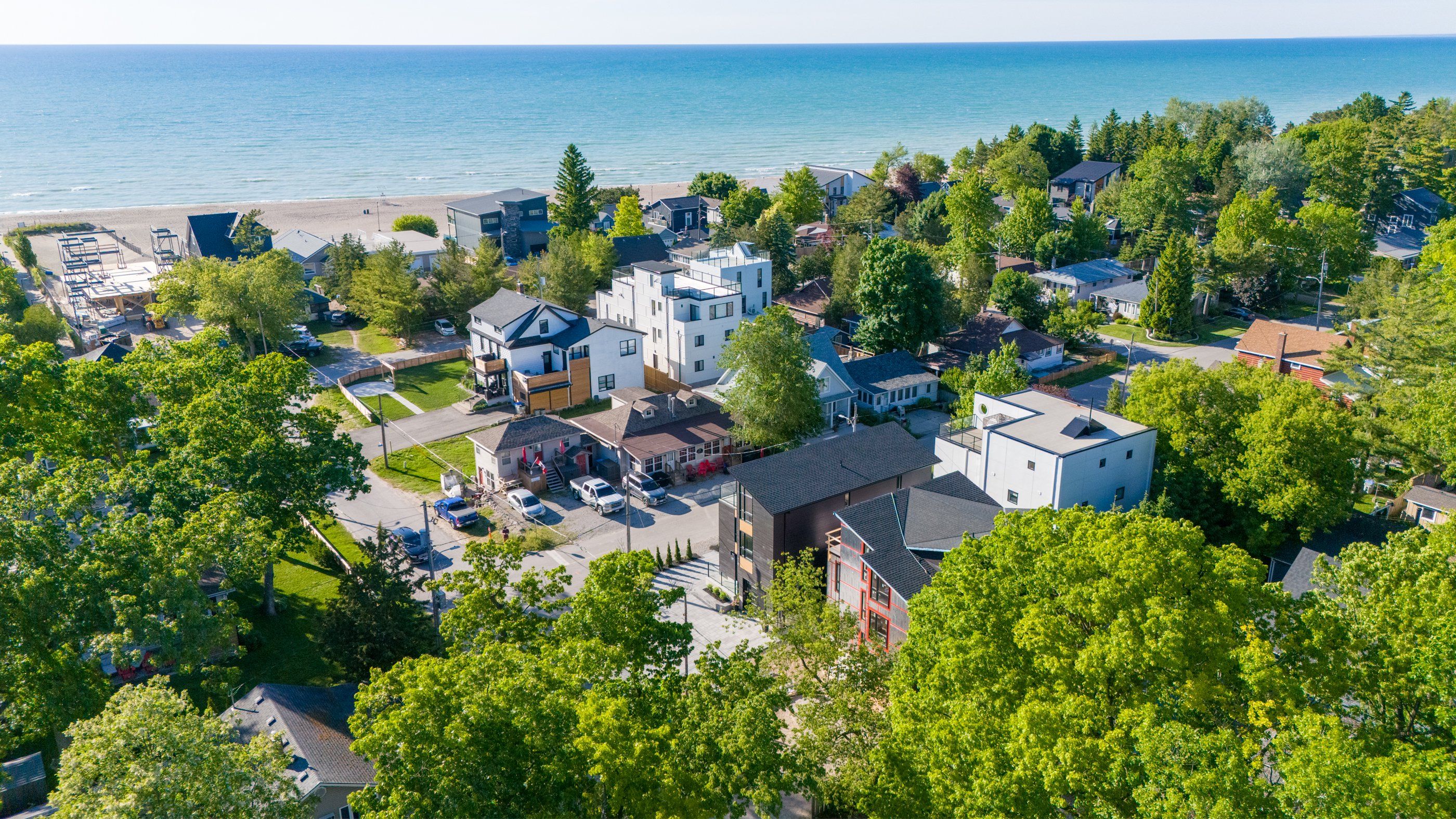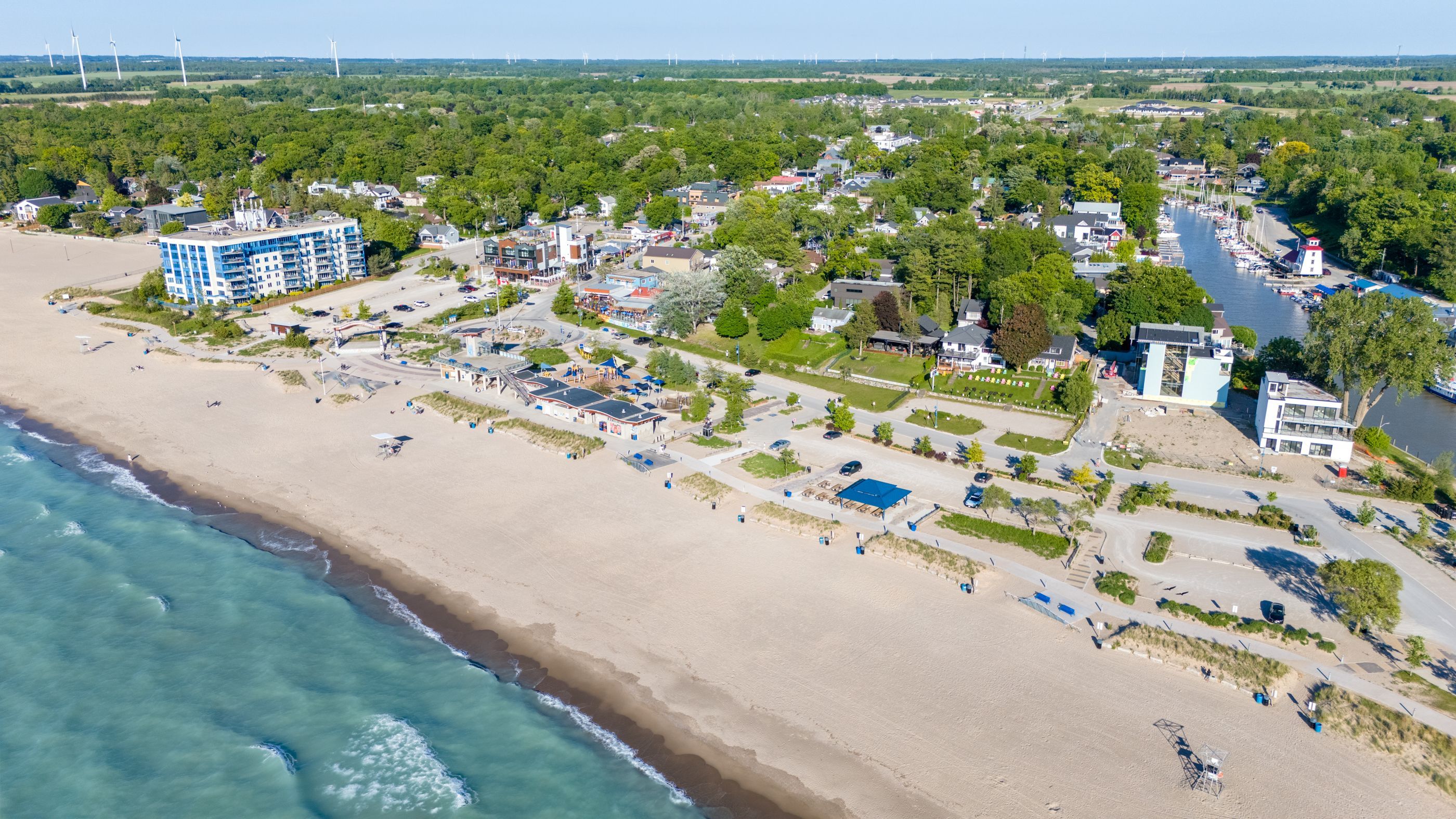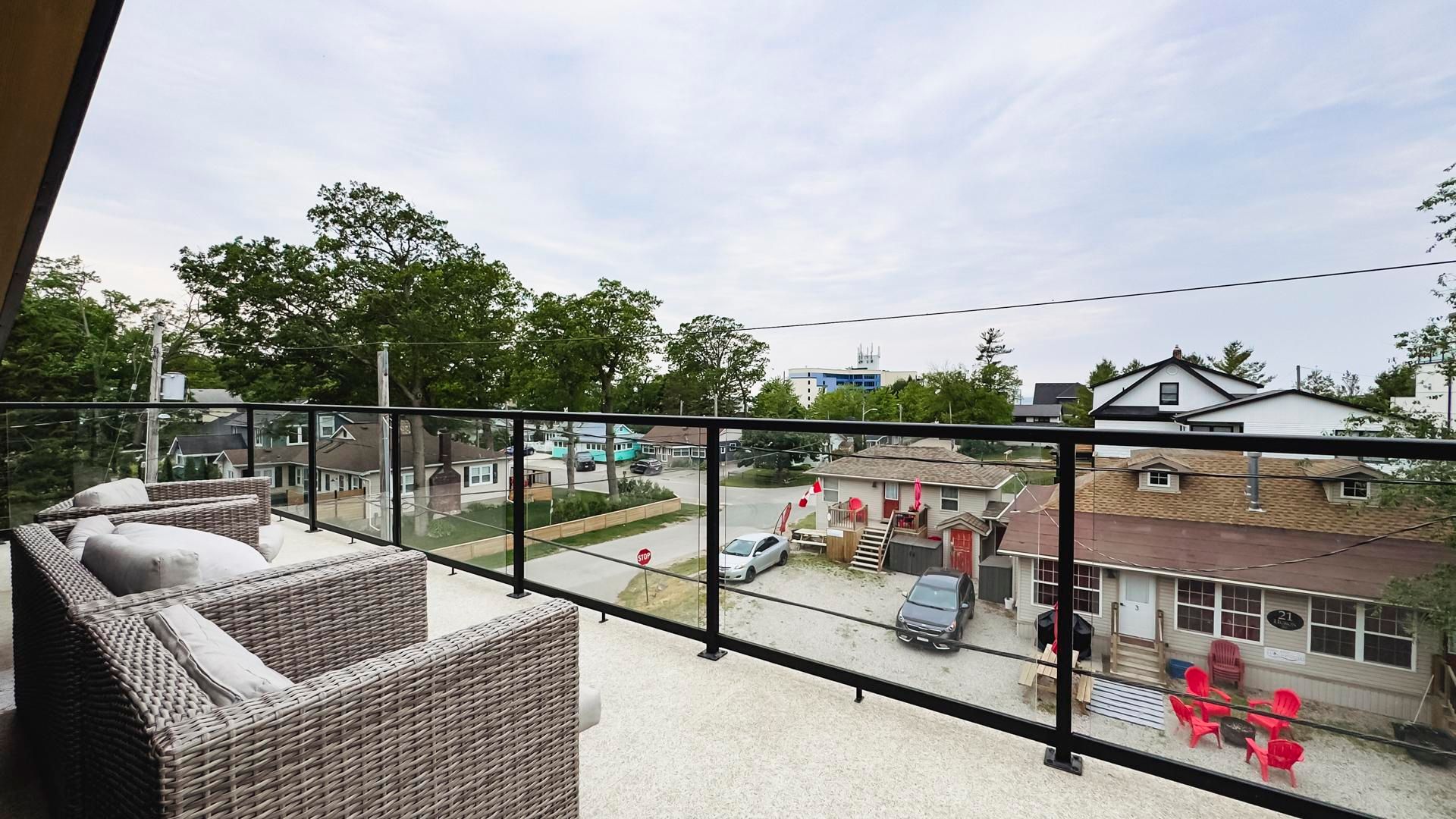 In-law suite!! Lake view!! This exceptional 3-storey residence, ideally located just steps from grand bend's renowned main beach, seamlessly combines contemporary design with unparalleled luxury. The open concept main floor features a chef's kitchen with quartz countertops, a bright and airy 2-storey living room, dining area, and a 2-piece powder room. On the second floor, the spacious primary suite offers a serene retreat with a spa-like 4-piece ensuite and walk-in closet, while a second generously sized bedroom, a 3-piece bath, and a convenient laundry room complete this level. The third floor is a spectacular haven for both relaxation and entertaining, boasting two additional bedrooms, a beautifully appointed 4-piece bath, bar, sauna with glass doors and sliders leading to a breathtaking rooftop deck. Enjoy the warmth of the double-sided outdoor gas fireplace while taking in beautiful lake views and unforgettable sunsets. The lower level features a private fully finished in-law suite with its own entrance, kitchen, cozy living room, bedroom, and a 4-piece bath - connected to the main house yet offering a separate entrance for added privacy and versatility. Outside, an interlock driveway (parking for 5), inviting backyard patio, and low-maintenance landscaping complete this exquisite property. With its perfect blend of luxury, functionality, and proximity to the main beach, this exceptional home offers an unparalleled lifestyle in the heart of grand bend. Your dream home awaits!