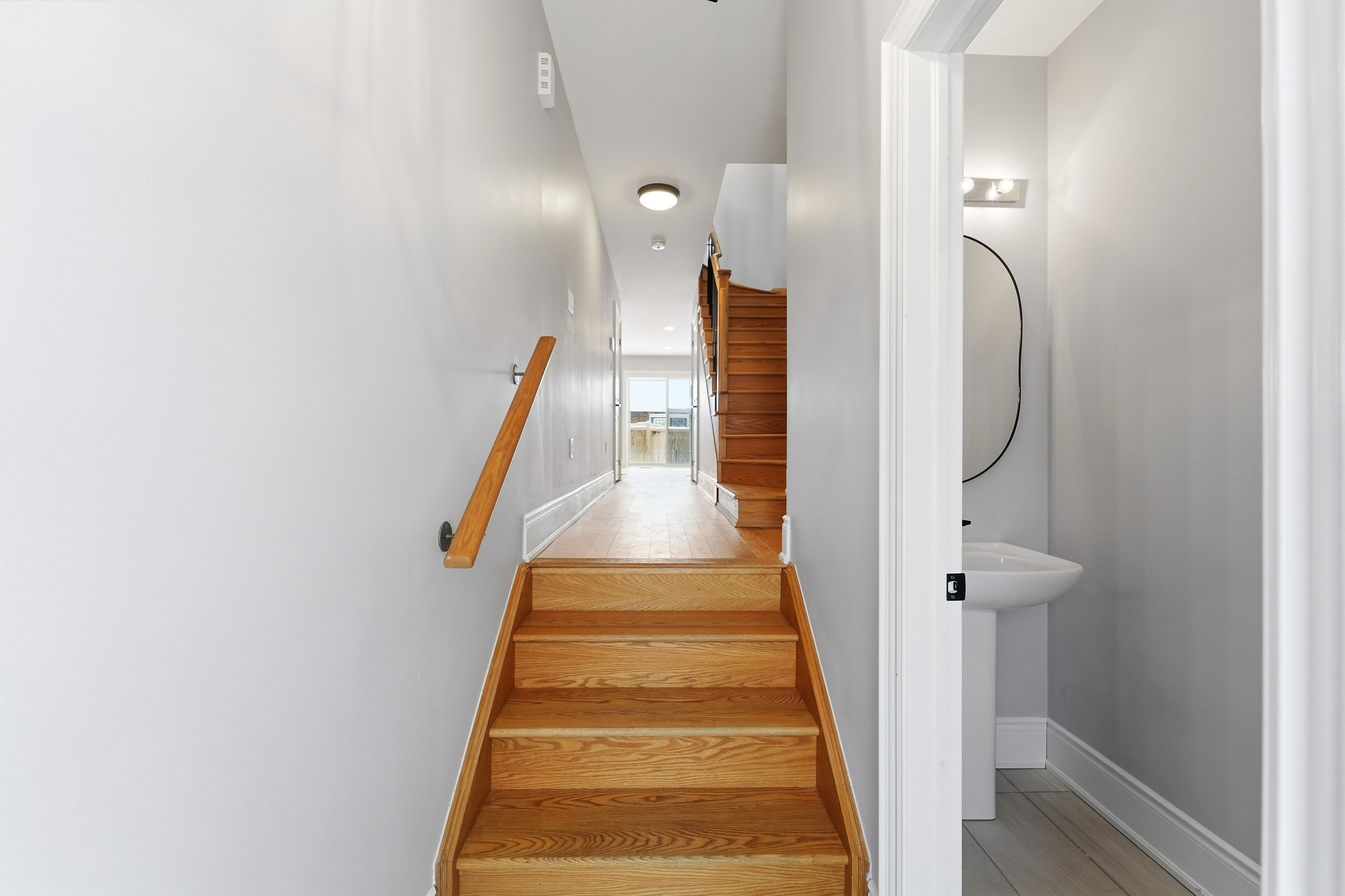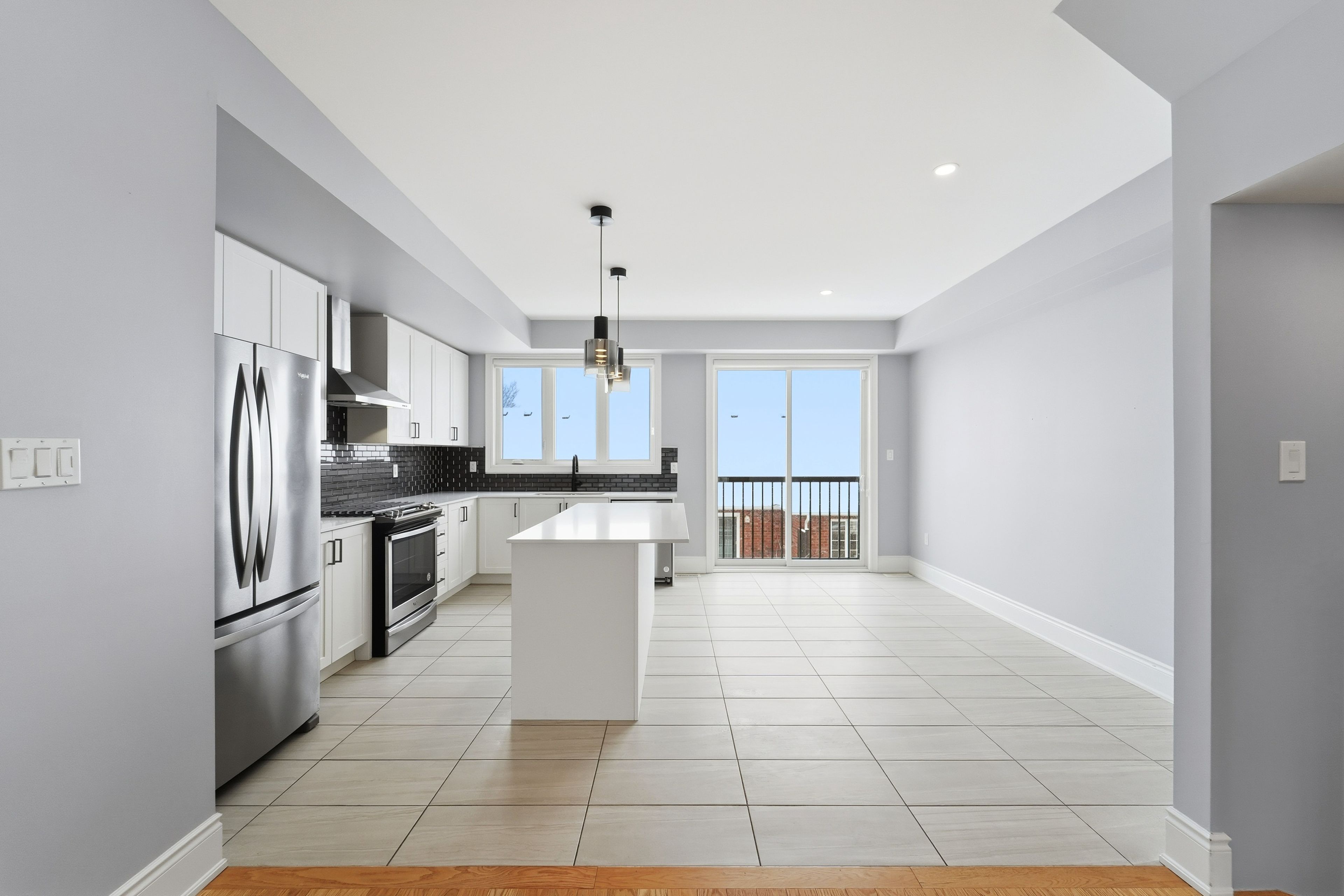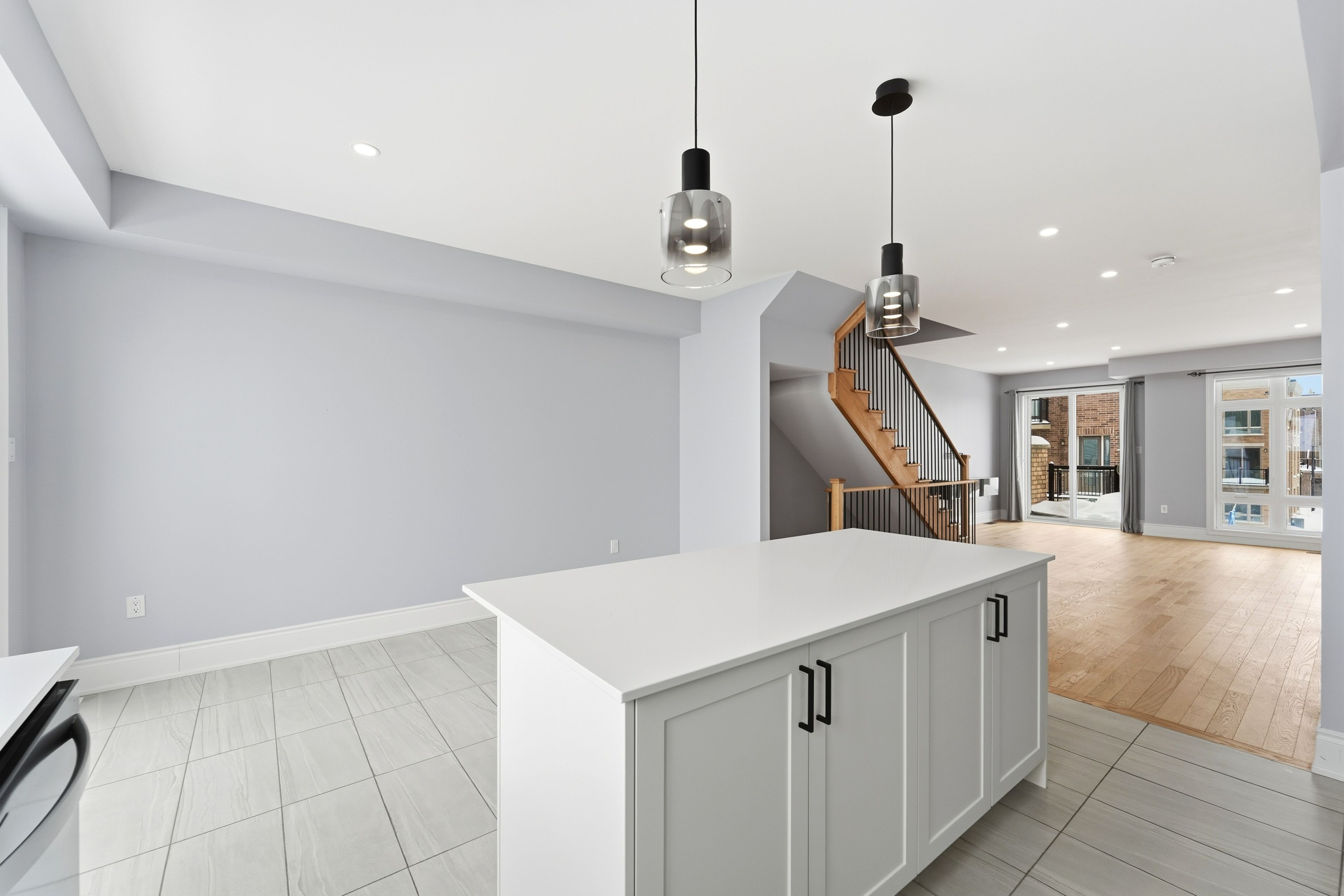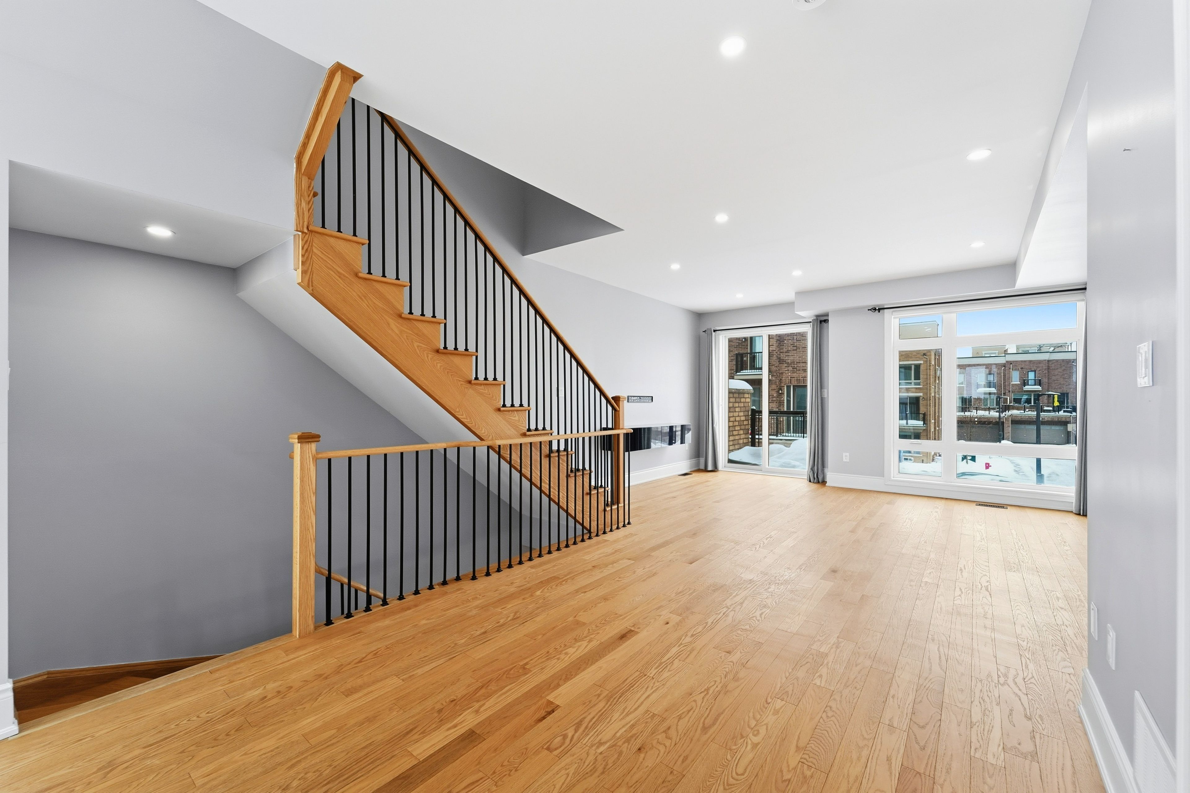 • Bright open-concept design with stylish pot lights and iron-rod railings.