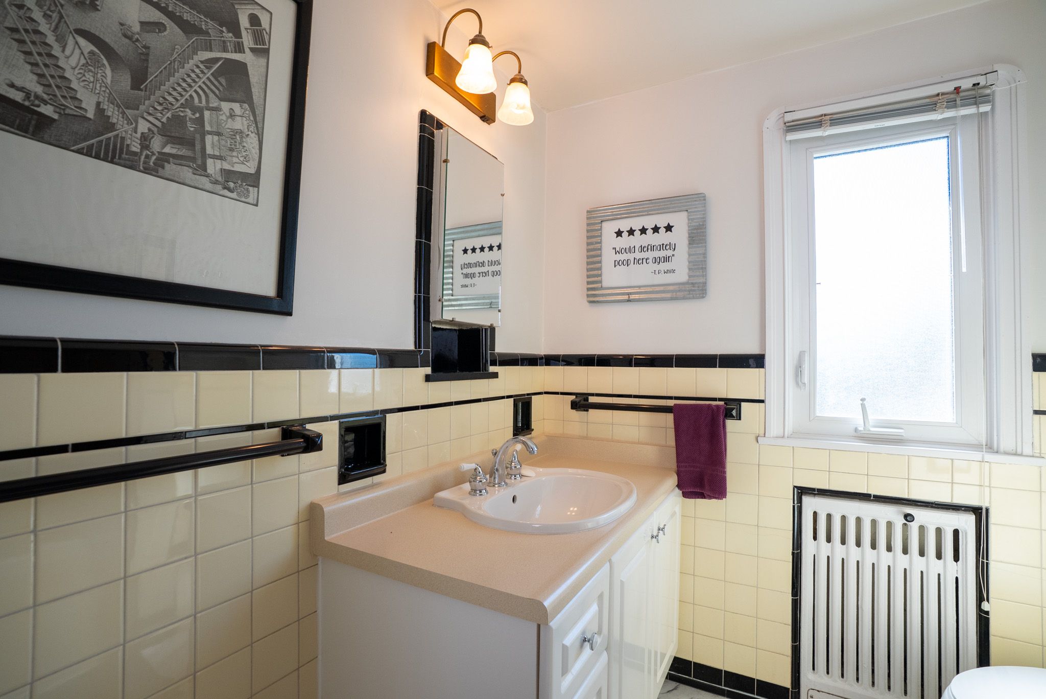 Welcome to this beautifully maintained two-story home that perfectly balances timeless charm with modern comfort all in one of welland's most desirable neighborhoods. Step through the front door into a spacious, sunlit foyer, where refinished herringbone hardwood floors, art deco trim, and a classic center-hall staircase set a tone of warmth and elegance. The bright living room features windows on three sides, filling the space with natural light, while the formal dining room with stained glass details is ideal for family dinners and entertaining. At the back of the home, the brand-new kitchen (2024) impresses with light gray cabinetry, white subway tile, and a large pantry all designed for todays lifestyle. Upstairs, you'll find three inviting bedrooms, including two large rooms that easily accommodate king-sized beds. A vintage four-piece bathroom showcases the homes original yellow-and-black tilework, adding a touch of retro charm. The finished lower level includes a cozy rec room, a two-piece bath, and a utility/laundry area, offering flexible space for relaxation or hobbies. Outside, enjoy a covered front porch perfect for morning coffee, a detached garage, and a new wooden shed (2022) for storage. Just steps away, chippawa park offers green space, gardens, sports courts, a splash pad, playgrounds, a lively community hub, the perfect setting for an active, family-friendly lifestyle. Recent updates: brand-new kitchen (2024), upper-level flooring (2023), updated electrical (2018), natural gas boiler (2017), freshly painted inside and out, detached garage & a new storage shed (2022), this move-in-ready home blends history, comfort, and location a true gem in chippawa park.