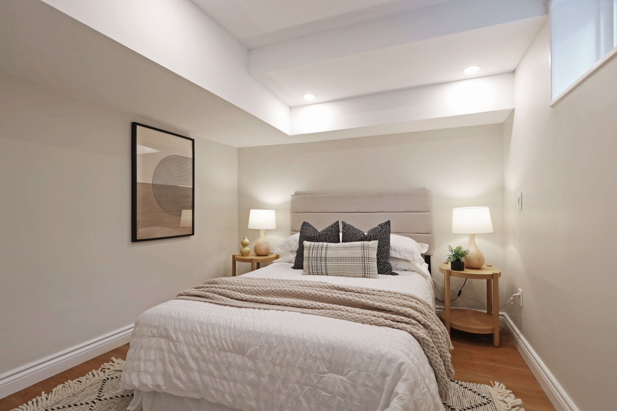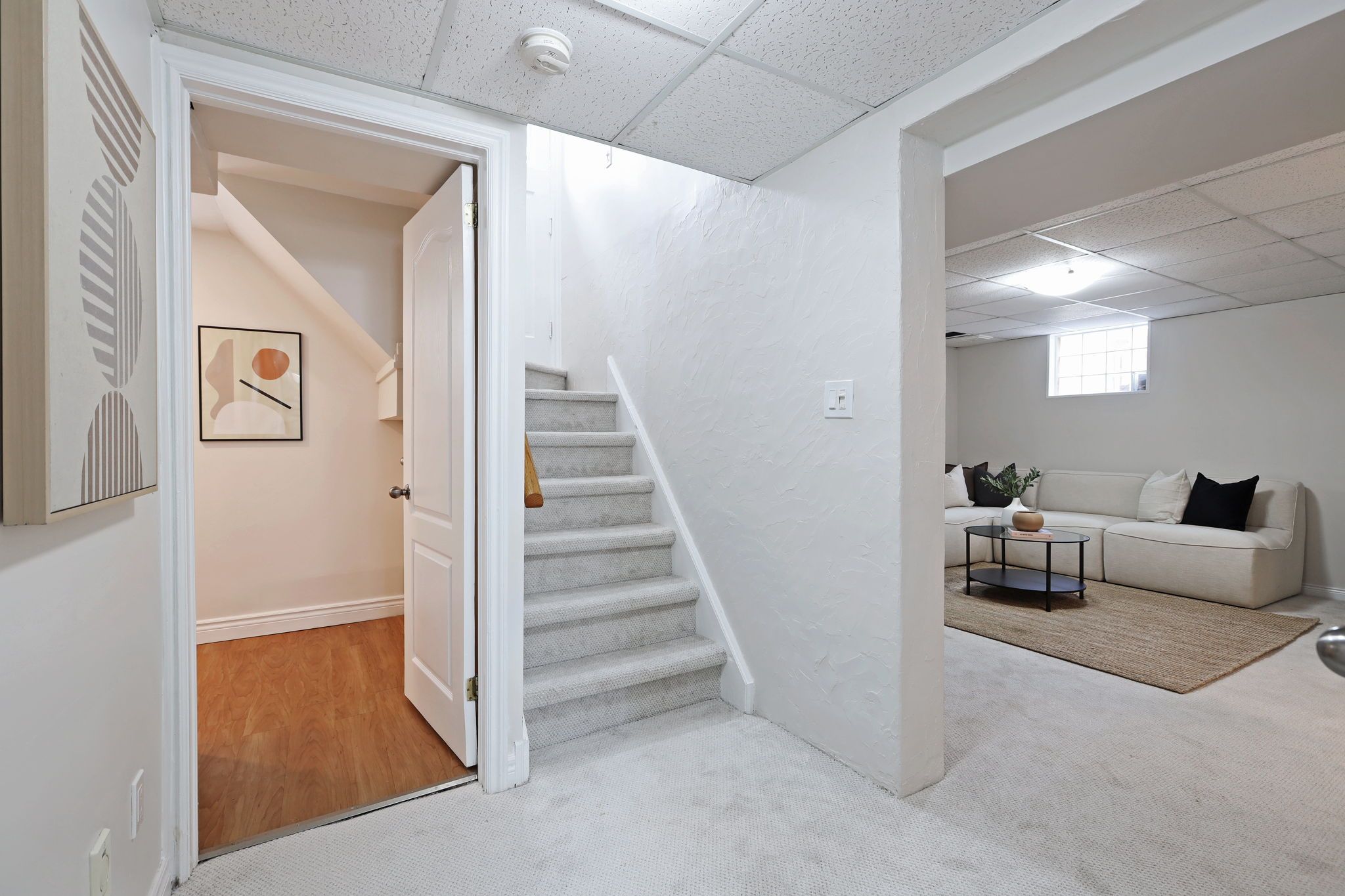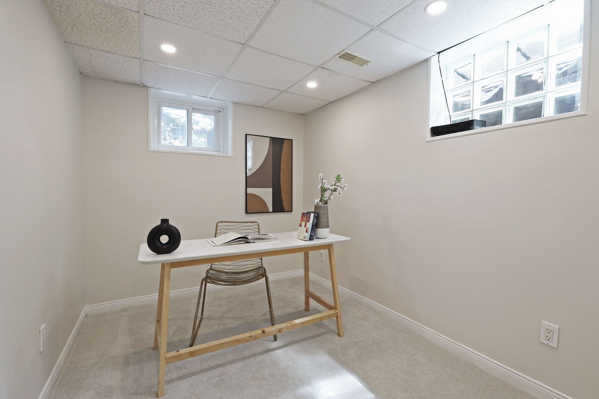 • Finished basement includes a cozy rec room and functional office space.