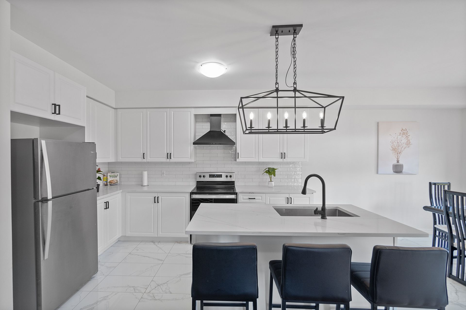 • Modern kitchen with stainless steel appliances and a generous breakfast area.