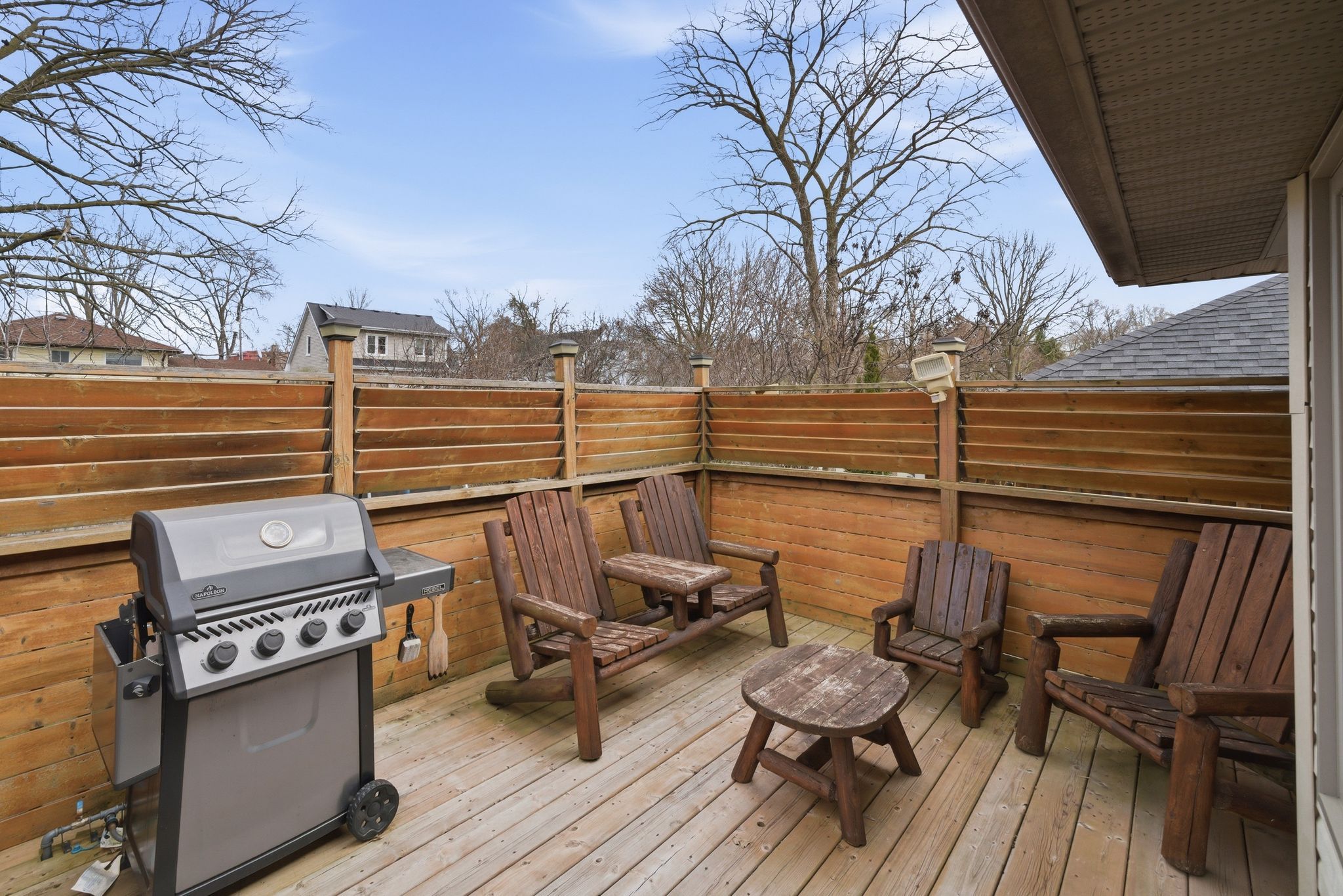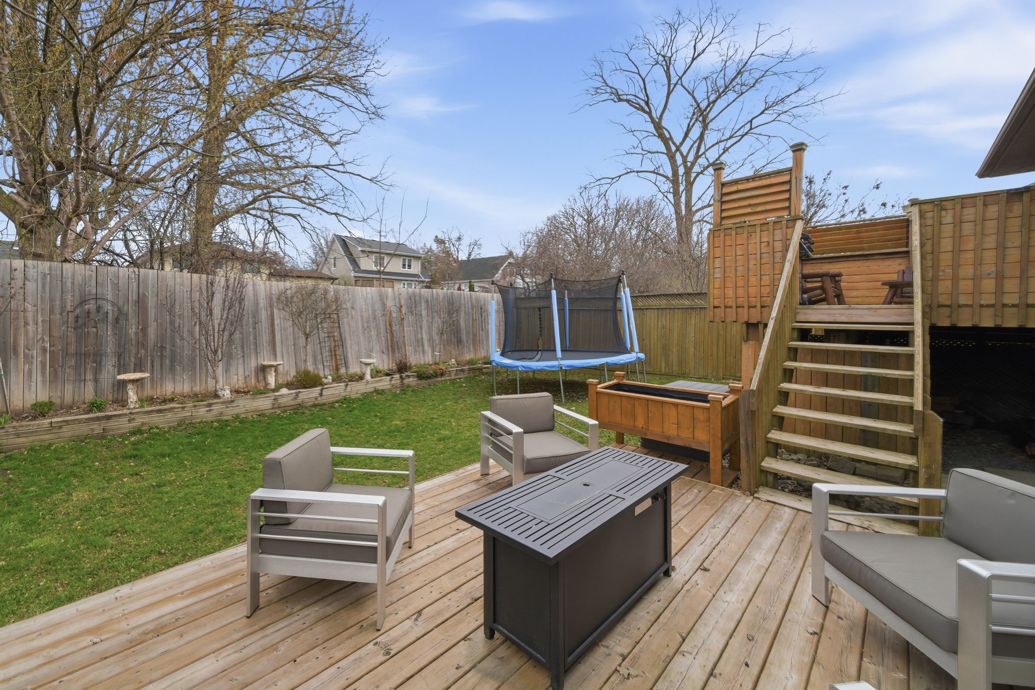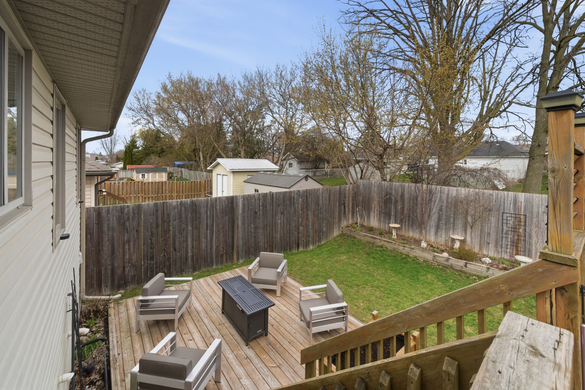 • Beautifully landscaped yard with a private raised deck for relaxation.