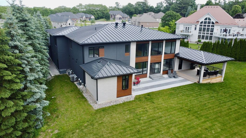 Brand new, jaw dropping custom estate located just steps to barrie in ultra desirable midhurst. No expense spared with over 10,000 square feet of finished space top to bottom. Soaring 20 foot ceilings, a showpiece double sided fireplace, executive office, double kitchen island and glass encased wine cellar are just some of the highlights you'll notice when you step foot inside this magnificent home. This stunning property boasts 6 bedrooms, 5 and a half bathrooms, including a main floor primary suite with walkout. The giant executive walk-in closet features custom cabinetry and a primary bathroom that includes a steam shower, an oversized stand alone tub, a double vanity and a water closet. The main floor also has a spacious mudroom connecting to the oversized garage capable of storing 5 vehicles and a main floor laundry area with dog wash. You'll love the large walk-in pantry in the chef style kitchen, thor dual convection range, 60 fridge freezer, dual dishwashers, cooling drawers and more! The upper level features 3 bedrooms, all equipped with their own ensuites and a large den that could double as an additional bedroom, play area/games room or second office. The finished basement features in floor heating, a theatre room, gym, rec area as well as 2 additional bedrooms and bathroom. The stunning, almost 1. 5 acre lot is perfect for somebody looking to be close to the amenities of the city yet with the space and privacy of a country lot! Shows 10+!