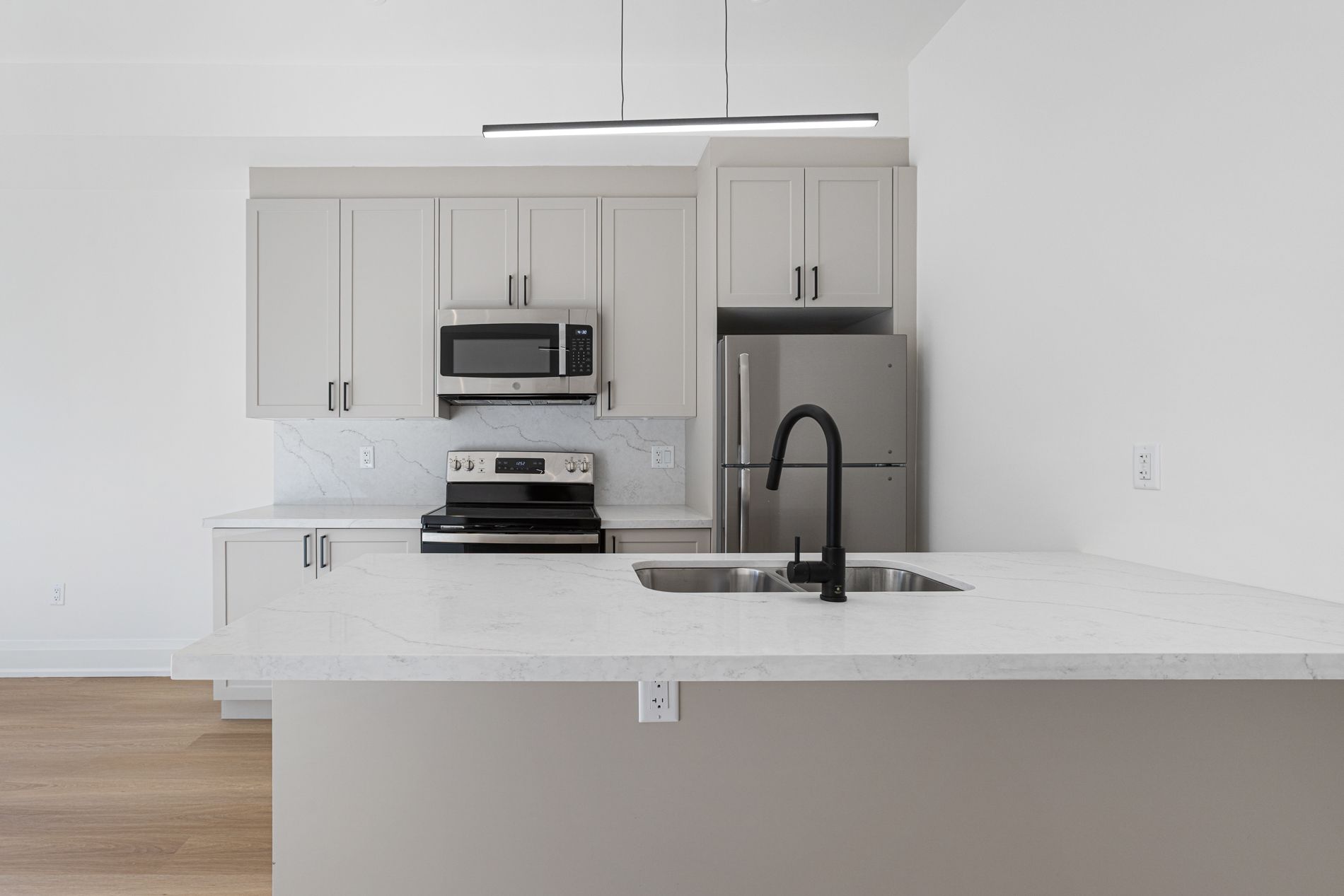 • Chef-inspired kitchen with stainless steel appliances and premium finishes.