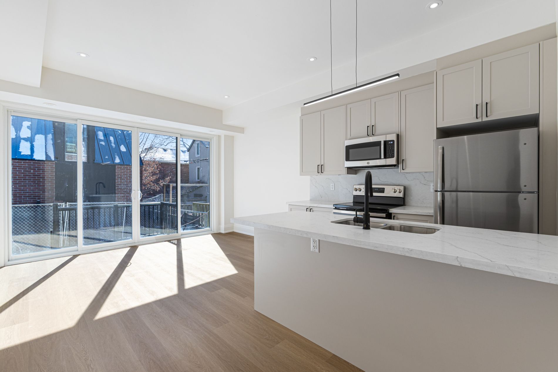 Limited time incentive - apply before may 1st and receive 1 month free rent! Modern living in a private leslieville enclave! A rare opportunity to experience elevated urban life on a tranquil cul-de-sac with no through-traffic. Be the first to call this beautifully appointed 2 bedroom, 2 full-bathroom residence home. Featuring its own private entrance, this suite offers privacy and the sleek design of a contemporary build. The bright, open-concept layout is designed for effortless entertaining and everyday comfort. A chef-inspired kitchen anchors the space, complete with a large centre island, full-sized stainless steel appliances, premium stone countertops, and high-end finishes that elevate both form and function. The seamless flow between kitchen, dining, and living areas creates an inviting atmosphere. Enjoy outdoor living on the back deck overlooking a private, fenced backyard. Perfect for relaxing evenings, entertaining guests, or letting pets and kids play freely. All light fixtures and window coverings included [roller blinds throughout]. Two generously sized bedrooms that provide flexibility for families, guests, or a dedicated home office. The primary bedroom retreat features a private 3pc ensuite bathroom and sizeable closet. Ideally situated in a quiet, child-and-pet-friendly pocket of leslieville, yet steps to trendy cafés, acclaimed restaurants, local boutiques, and artisan shops along queen street east. Tenant to pay hydro &water. On-site bike storage is available, perfect for commuting or exploring the vibrant surroundings. Enjoy easy access to ttc, nearby parks, and the unique sense of community that makes this area one of toronto's most desirable places to live.