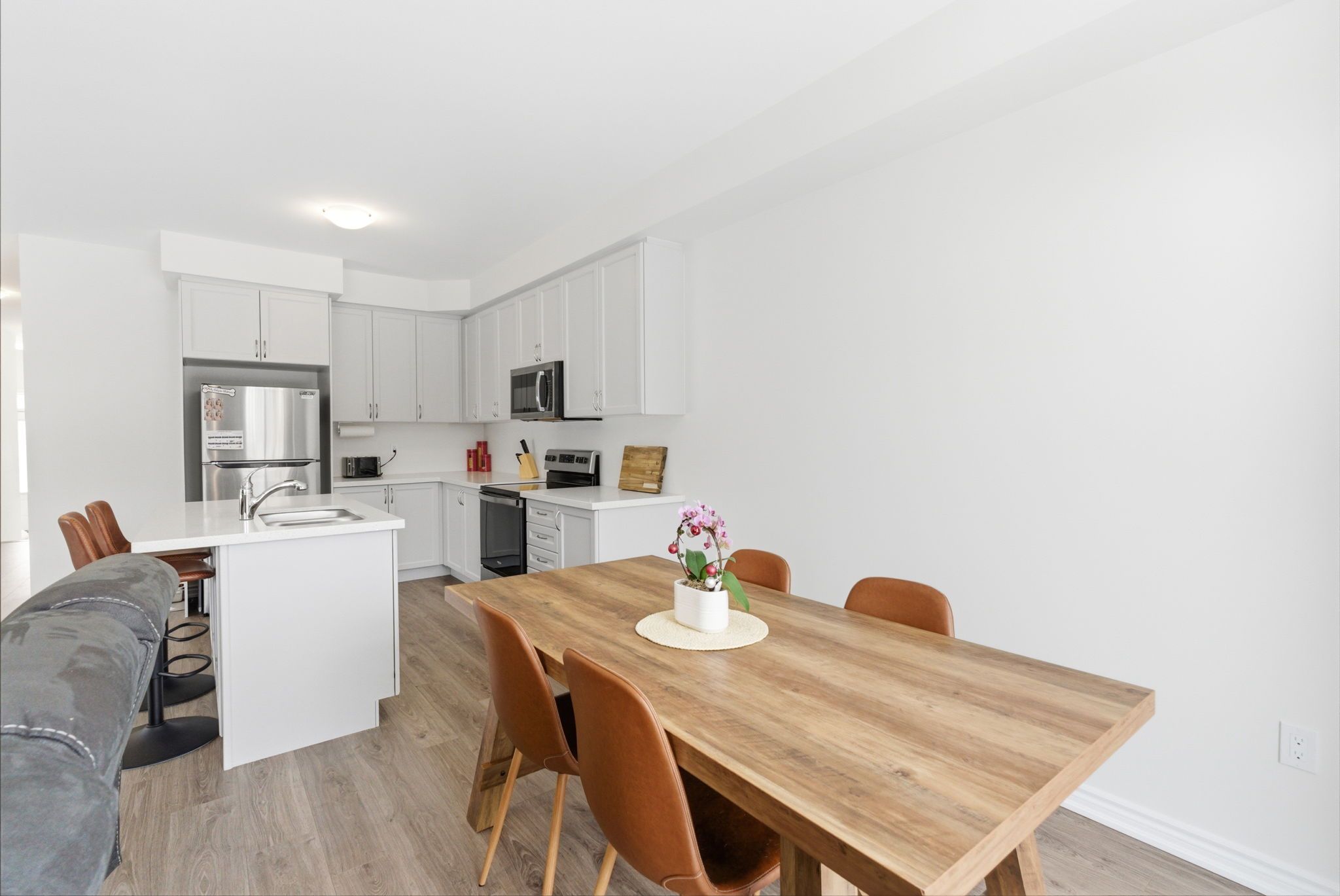 This brand new light filled, stunning end unit townhouse has designer features throughout this home including natural engineered hardwood throughout, wrap around oversized windows that flood the interior with natural light. The open-concept main level, which is 1799 sq ft seamlessly connects the living and dining areas, highlighted by the soaring ceilings that enhance the sense of space. The modern kitchen is equipped with custom cabinetry, new appliances, a center island with stone countertops, while a walk-out to the spacious backyard and deck creates effortless indoor-outdoor living-perfect for entertaining and everyday enjoyment. Beyond the fenced yard, it overlooks trees creating a natural setting that adds privacy. Upstairs, the elegant staircase leads to a well-appointed second level. The primary suite offers a private spa like 5-piece ensuite with double sinks, a glass shower with rain shower fixtures, and a full walk-in closet and a soaker tub. Two additional generously sized bedrooms share a stylish bathroom, complemented by an upgraded oversized laundry room, complete with window. A full unfinished basement is awaiting your touches. A fantastic location just blocks to charming downtown lindsay. It is a family friendly community with parks, public transportation, surrounded by nature trails and scenic green spaces. Just minutes from great schools, pioneer park, and highway 401. It presents a refined opportunity in one of lindsay's most desirable communities with scugog river a few short blocks away in a fantastic community built by developer known for quality. Fernbrook.