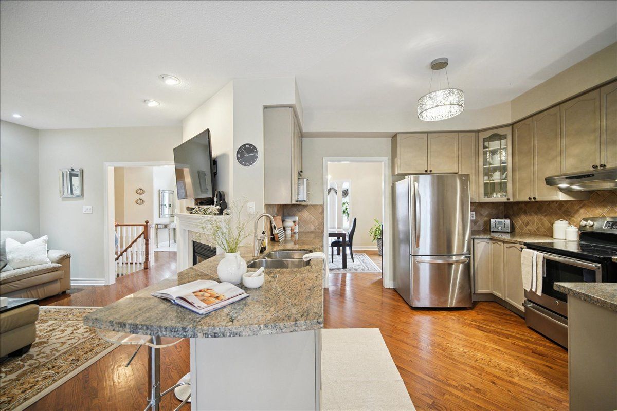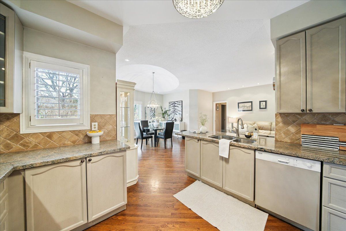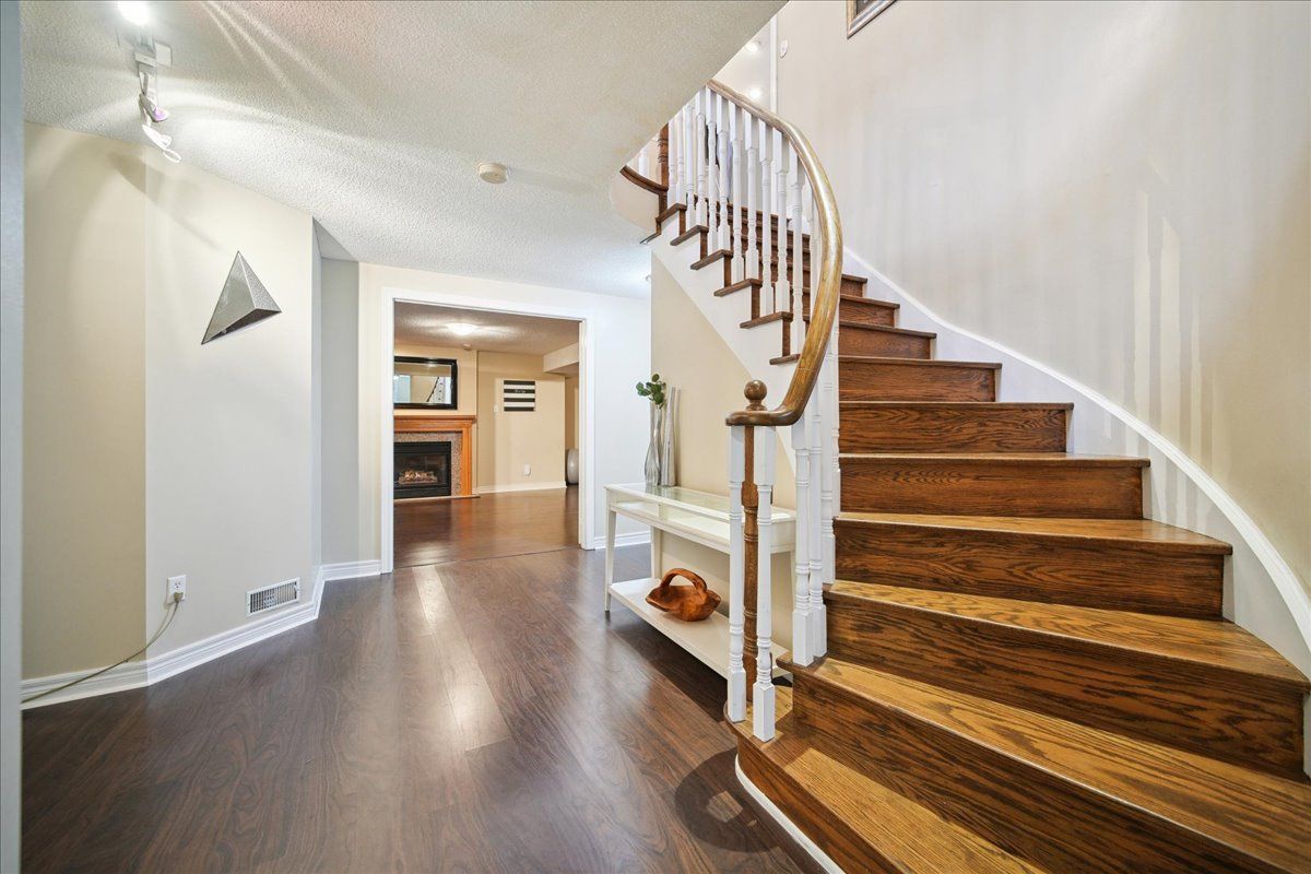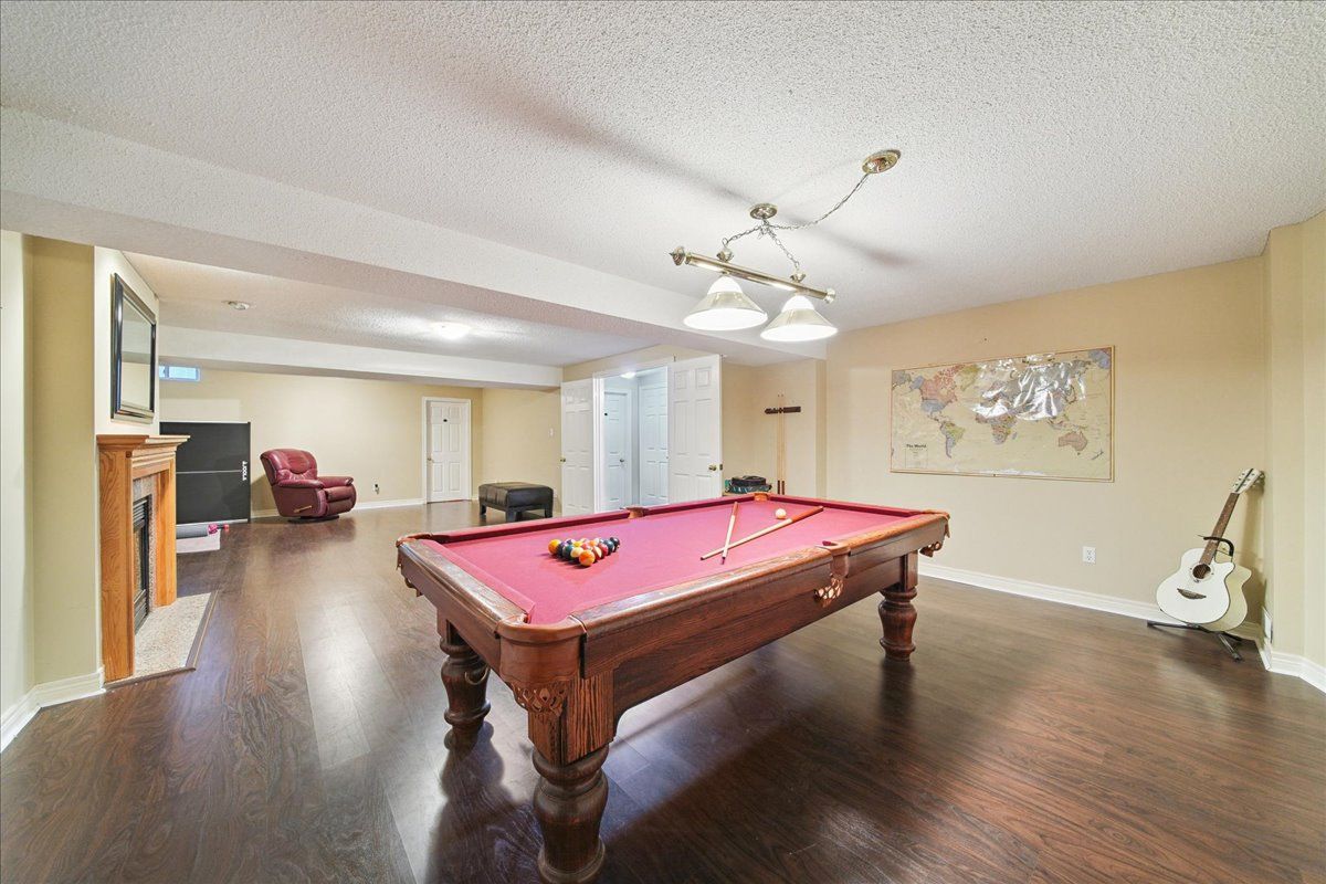 Welcome to this rare and beautifully maintained spacious bungalow in the sought-after community of valleywood, surrounded by scenic trails, excellent schools, a library, soccer fields, and playgrounds-perfect for families and those who enjoy an active, connected lifestyle. Offering 9-foot ceilings on the main floor, this home feels bright, open, and exceptionally spacious throughout. With parking for up to six cars, a double garage, and no sidewalk, this property provides added privacy, convenience, and maximum driveway space. Inside, you'll find hardwood flooring throughout the entire home, featuring an inviting living room, a warm and cozy family room, and a well-designed kitchen with a spacious dinette area complete with california shutters and a walkout to the beautifully landscaped backyard. Surrounded by mature trees and thoughtfully designed backyard for relaxation and entertaining. Enjoy the gazebo, unwind in the hot tub, or host gatherings in the bbq area-perfect for making entertainmentthe main floor includes a spacious primary bedroom with a walk-in closet and a private ensuite bath, along with two additional well-sized bedrooms, another full bathroom, and a convenient guest washroom. The finished basement offers incredible versatility and space, ideal for extended family or entertaining. It features 8-foot ceilings, a cozy fireplace, a classic wooden pool table, table tennis, a large living area, three additional bedrooms, and a full washroom-providing comfort and functionality for a variety of needs. A perfect blend of space, comfort, and location, this exceptional home is a rare opportunity not to be missed.