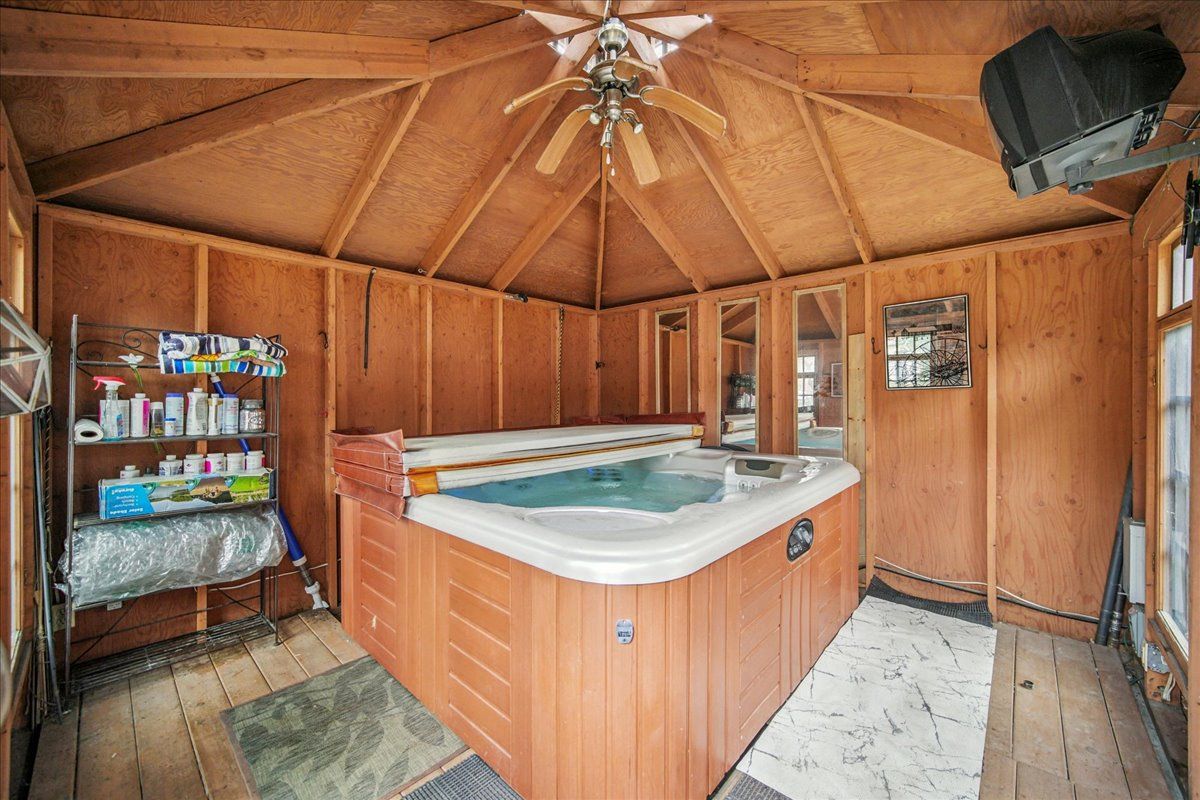 • Large backyard oasis with gazebo, hot tub, and BBQ area for entertaining.