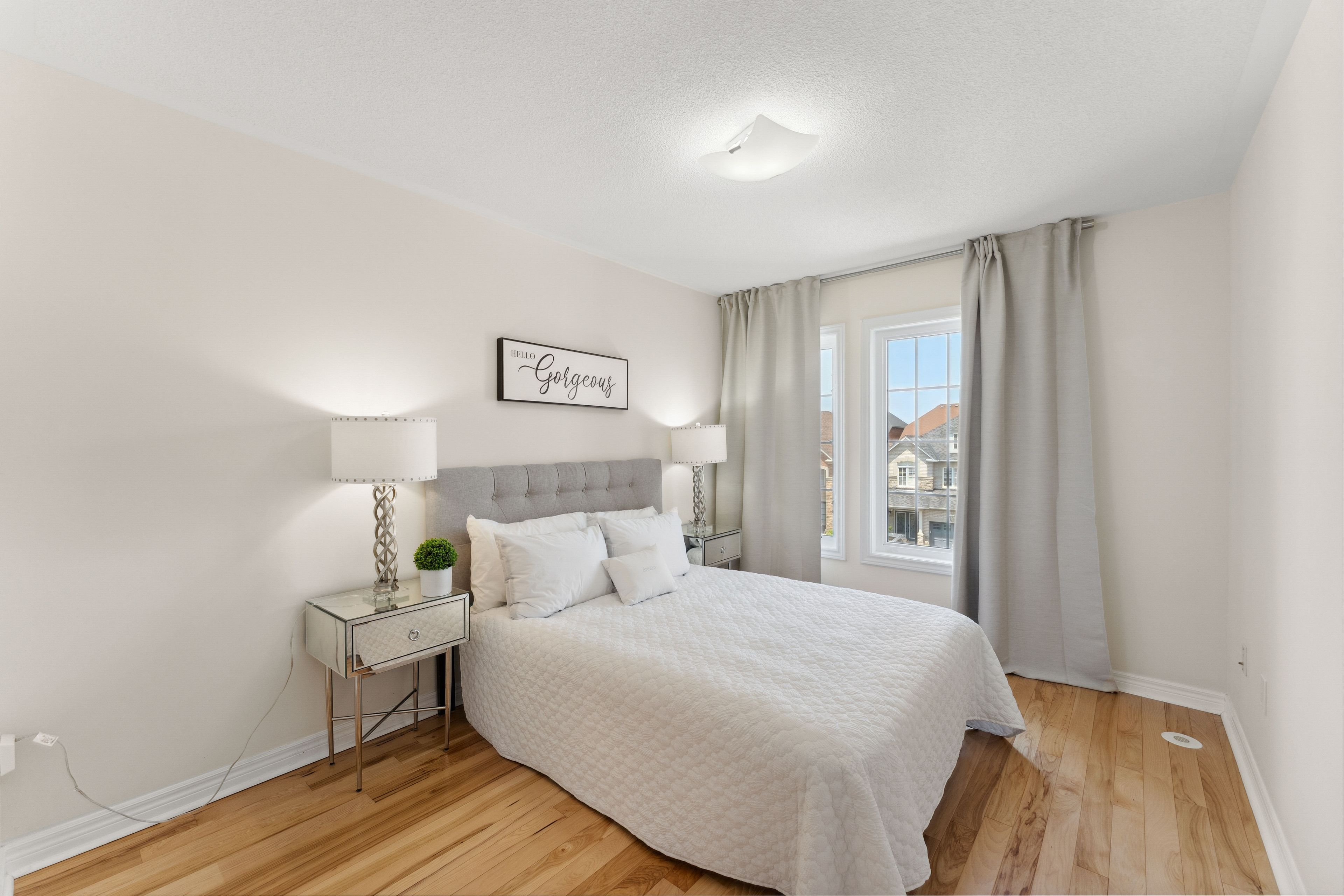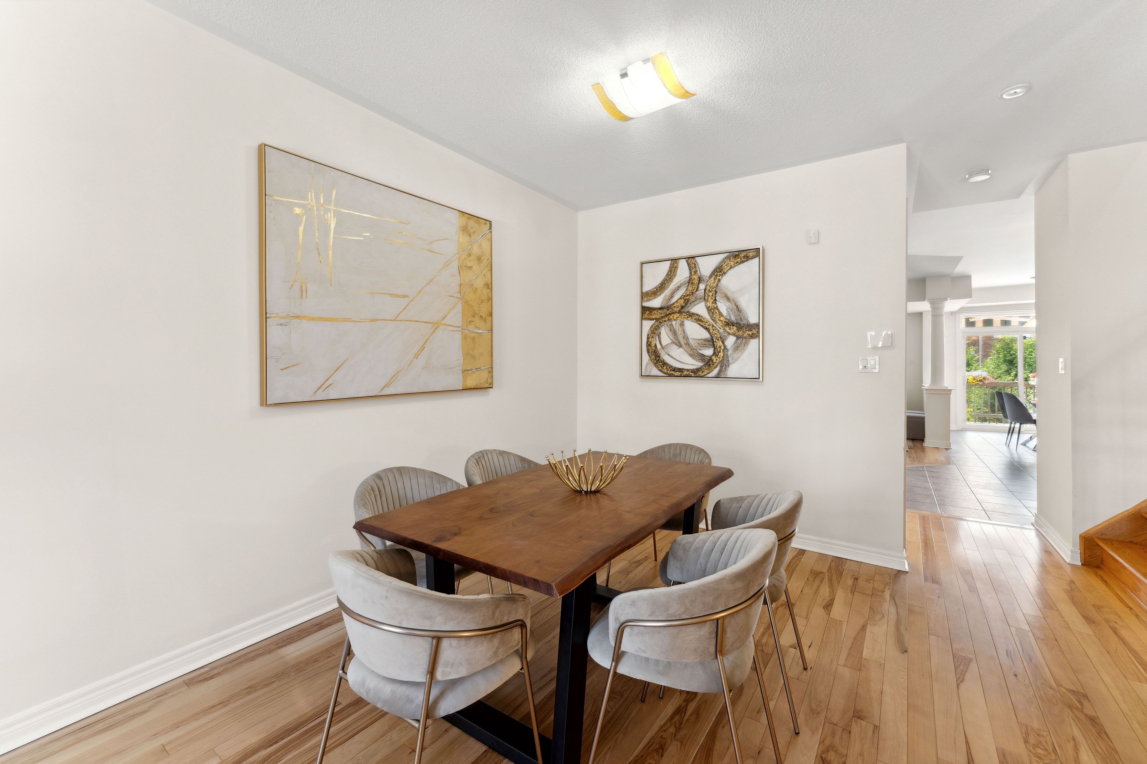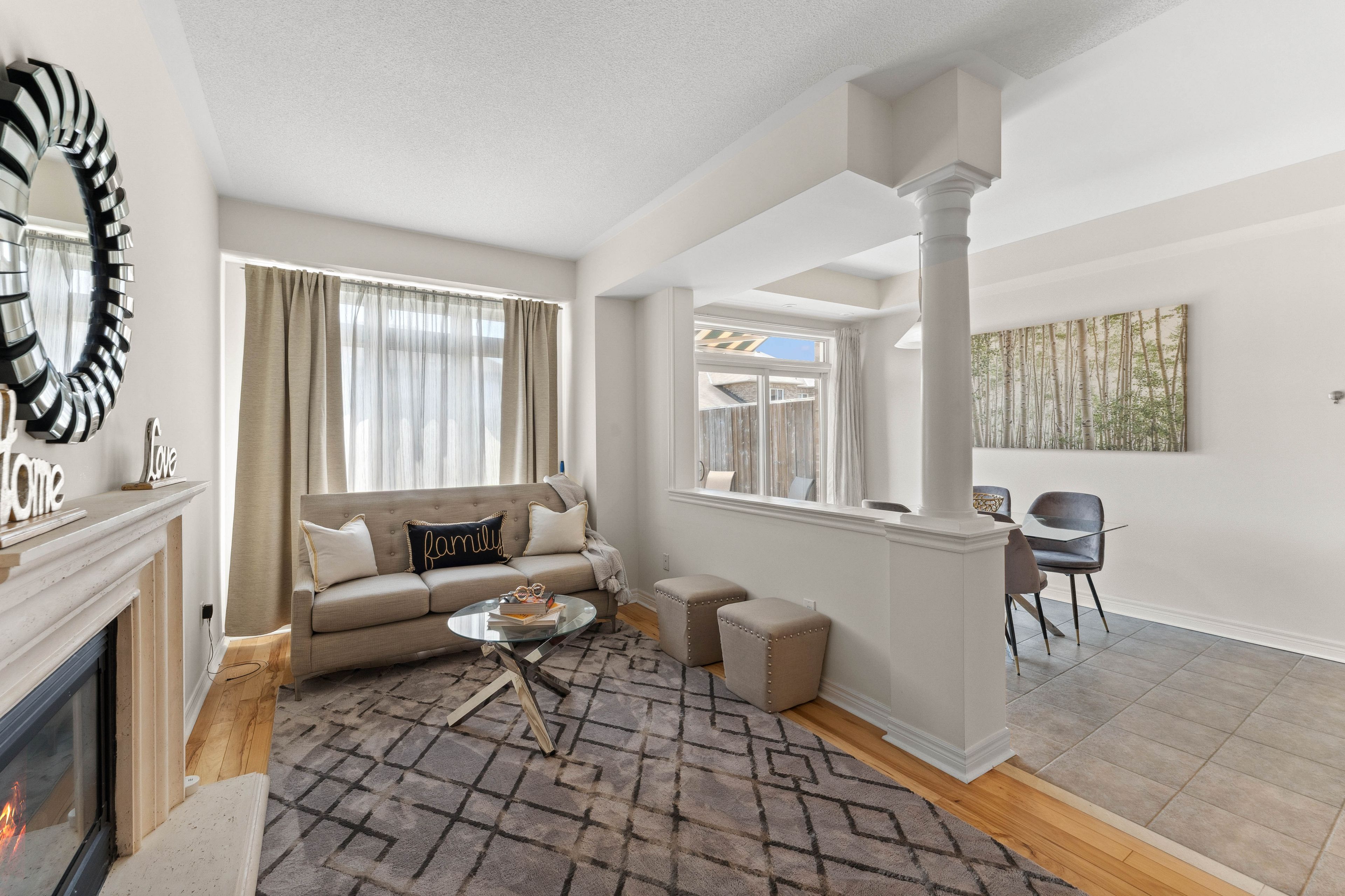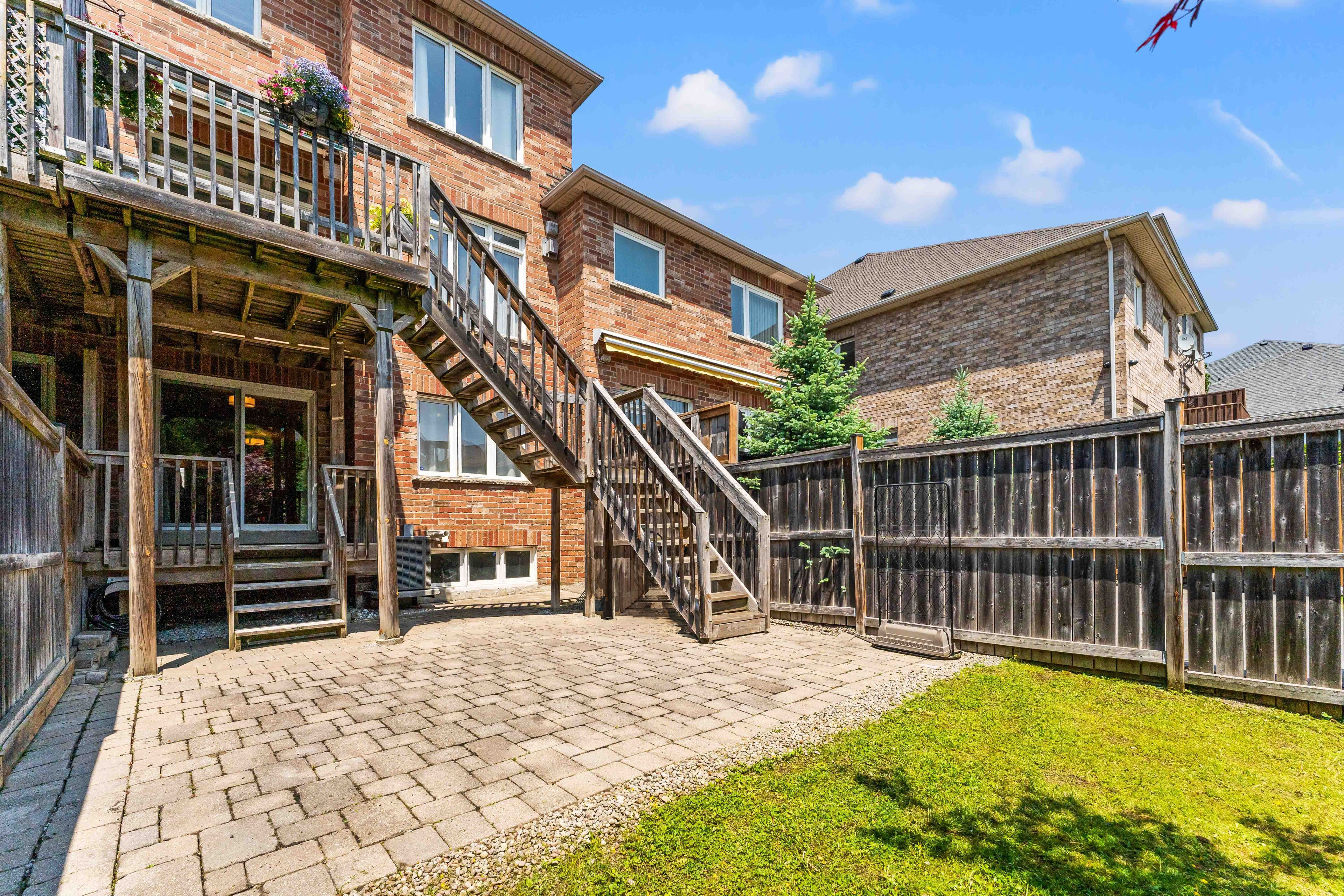 Beautifully maintained 3-storey freehold townhome with finished basement, separate ground level entrance & 4 total parking spaces, tucked away on a premium lot in a quiet cul-de-sac in the highly desirable lebovic campus community. This bright & spacious 4 bedroom home offers a functional open-concept layout with south exposure, filling the space with natural light-perfect for both everyday living and entertaining. The main living area features hardwood floors throughout, a stylish kitchen with stainless steel appliances, quartz countertops, double sink & an oversized breakfast area. The primary retreat boasts a walk-in closet and a spa-like 5-piece ensuite. The lower level offers incredible flexibility with a large recreation area, additional bedroom & 3-piece bath-ideal for extended family or potential in-law suite. Enjoy outdoor living with two private decks, including an upper deck with a new awning and convenient backyard access. Extensively updated with major improvements including roof (2023), air conditioner, water tank, central vacuum & high-efficiency hvac system. Unbeatable location just steps to top-rated schools, parks, community centres, shopping & dining-offering the perfect blend of comfort, convenience & lifestyle.