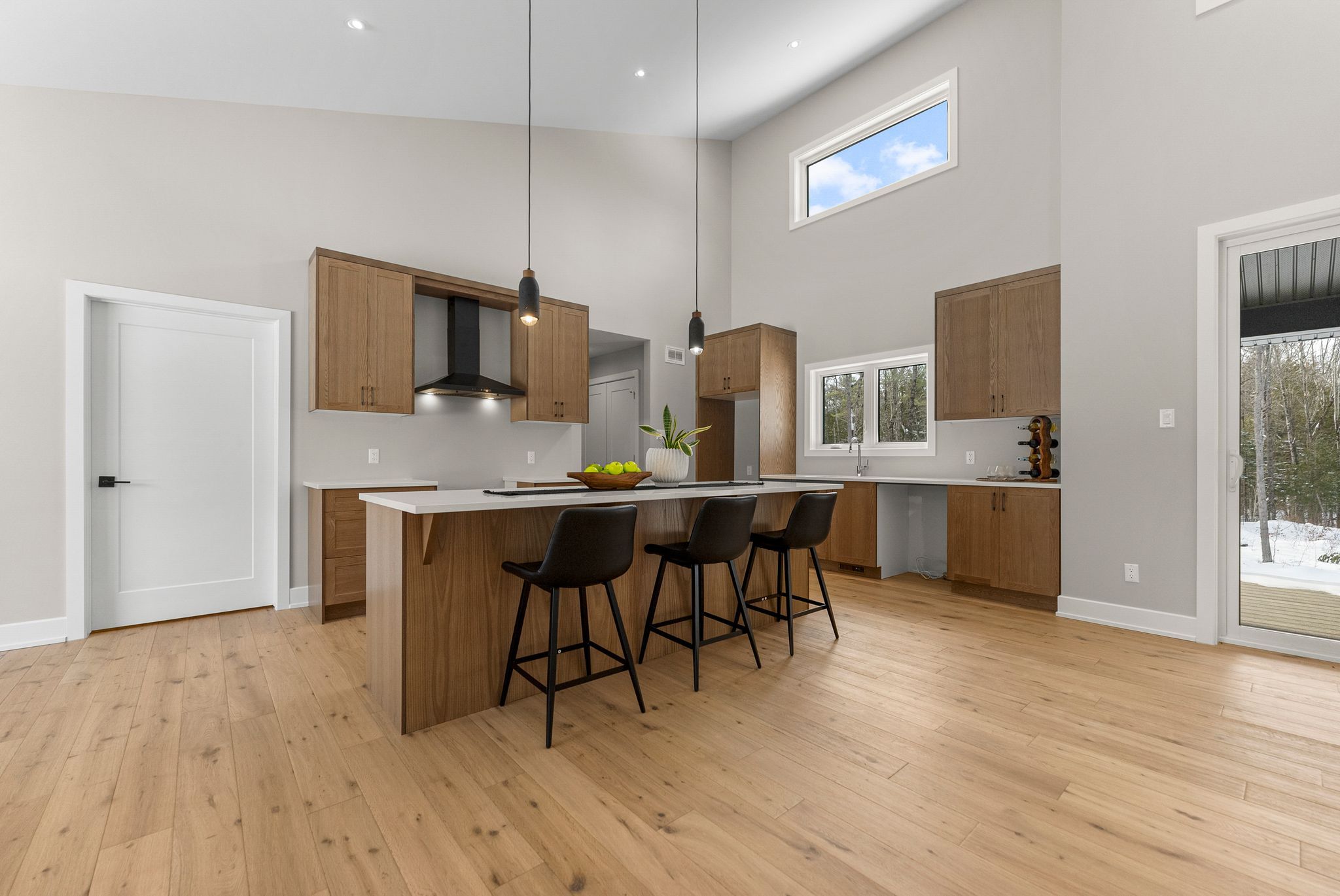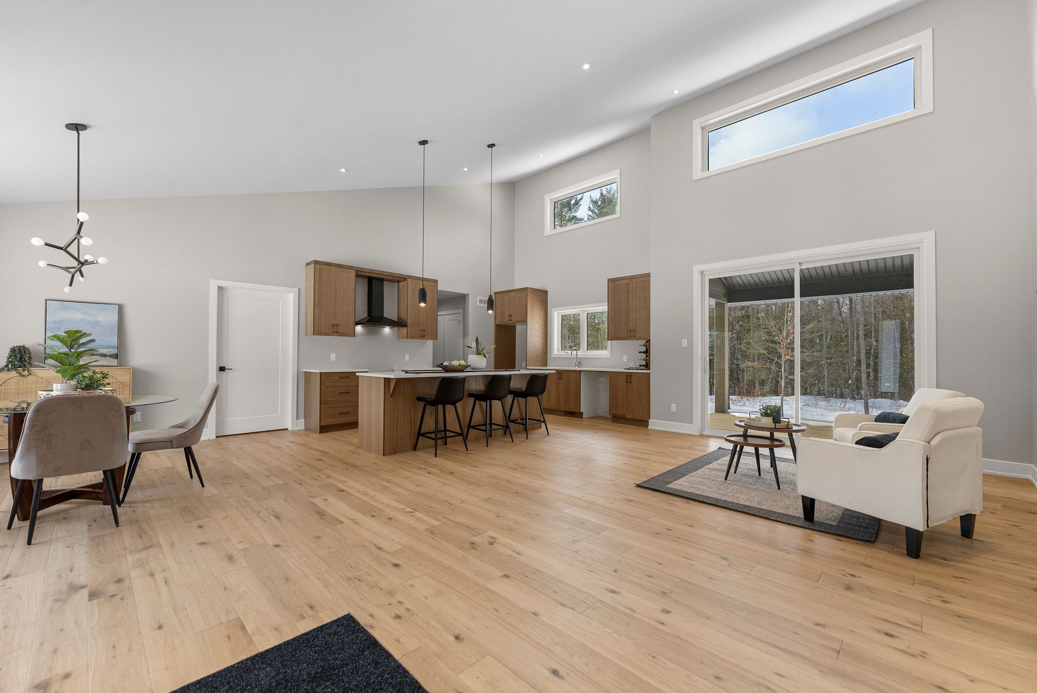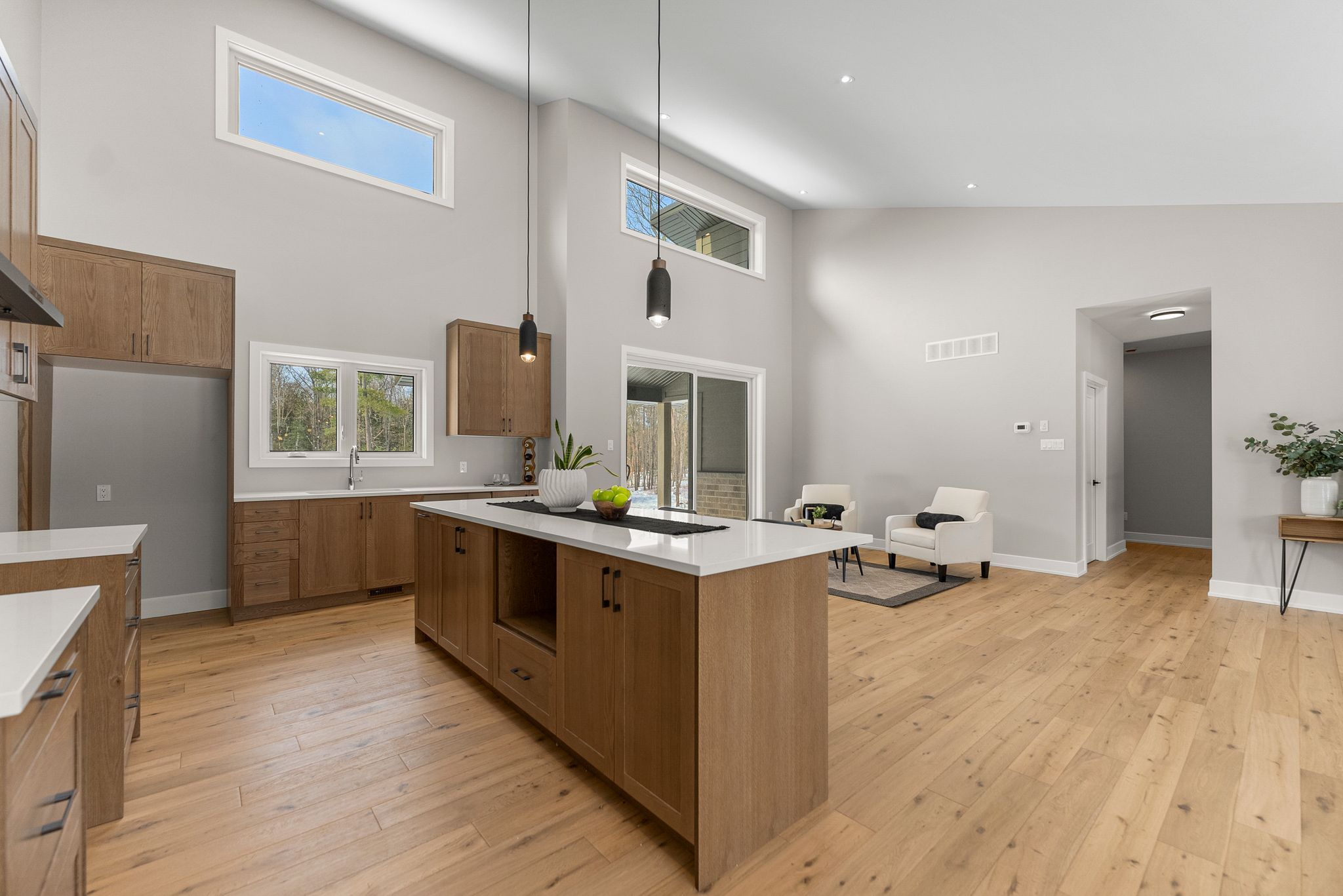 Welcome to 57 longleaf way in the prestigious granite village community, where striking architecture meets elevated calabogie living. Built by neilcorp homes, this newly constructed limestone model offers 1,508 sq ft of beautifully designed living space, set on a private and scenic lot in one of the ottawa valley's most sought-after destinations. This home makes an immediate statement with its stunning modern mono-slope roof design and contemporary architectural lines. Quality is evident from the start, beginning with the high-end textured fiberglass entry door with multi-point locking system and continuing throughout the home. Inside, the open-concept kitchen and great room are enhanced by sloping ceilings and dramatic tall-wall windows, flooding the space with natural light and creating an airy, upscale atmosphere perfect for both everyday living and entertaining. Refined finishes and thoughtful design details carry throughout, delivering a seamless blend of style, comfort, and function. The layout is ideal for those seeking a sophisticated retreat or a full-time residence that embraces both modern design and connection to the surrounding landscape. Located in the heart of calabogie, you'll enjoy a true four-season lifestyle-skiing at calabogie peaks, boating and swimming on nearby lakes, hiking and trail networks, golf, and a vibrant village scene with charming shops, dining, and local attractions. This is a destination community known for its natural beauty, recreation, and relaxed luxury. Whether you're looking for a stylish weekend escape or a refined full-time home, 57 longleaf way offers a rare opportunity to own a distinctive, architecturally inspired residence in one of the region's most desirable recreational communities. *** bonus $7500. 00 appliance credit will be rebated to buyer upon closing