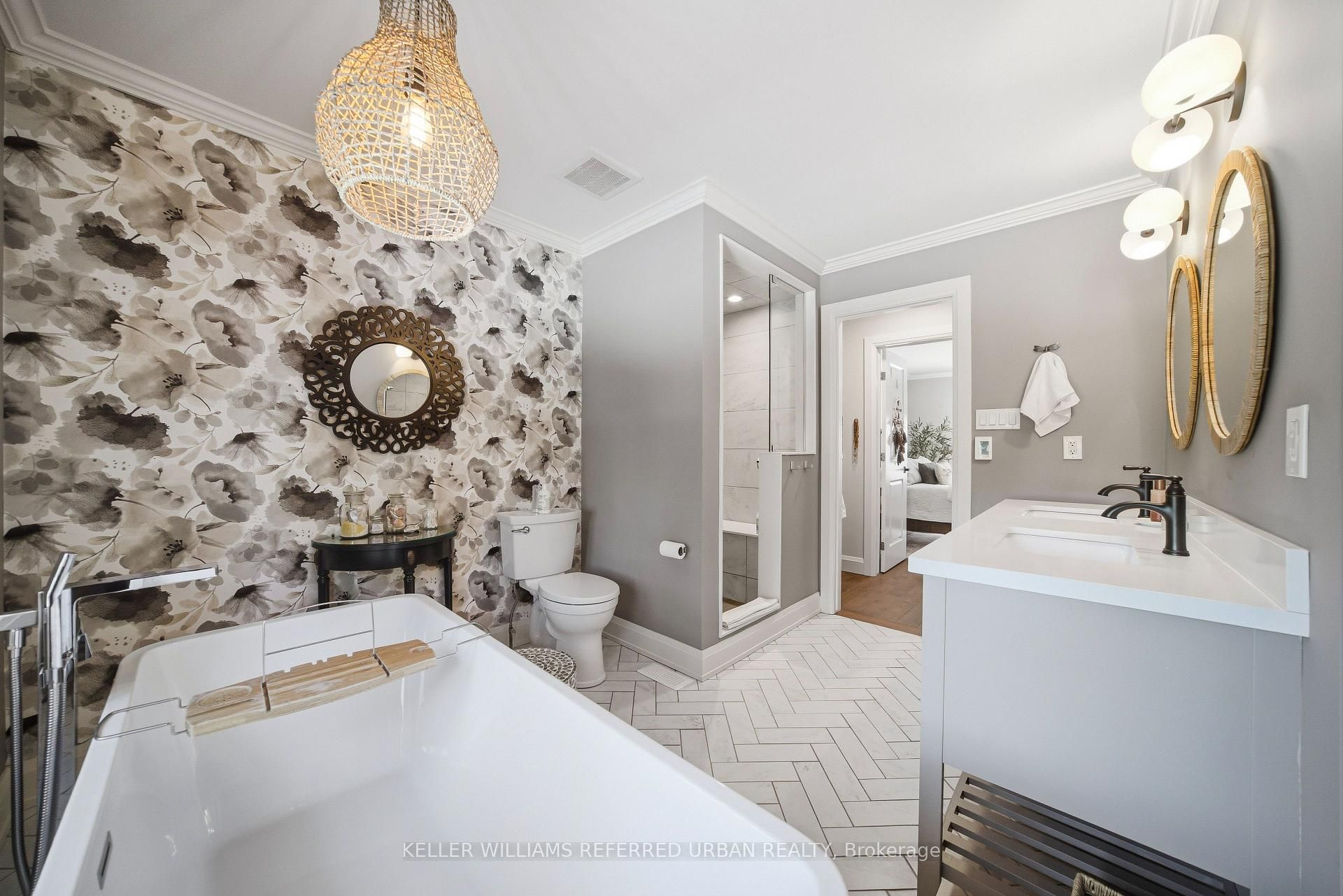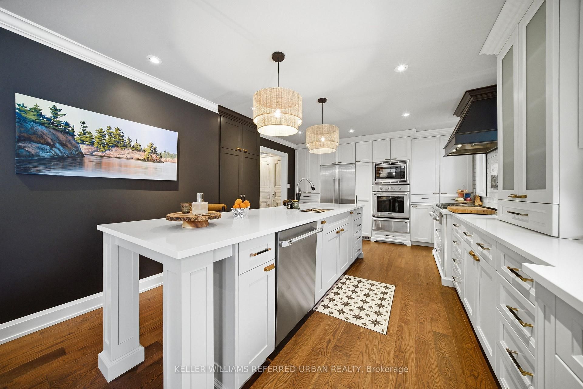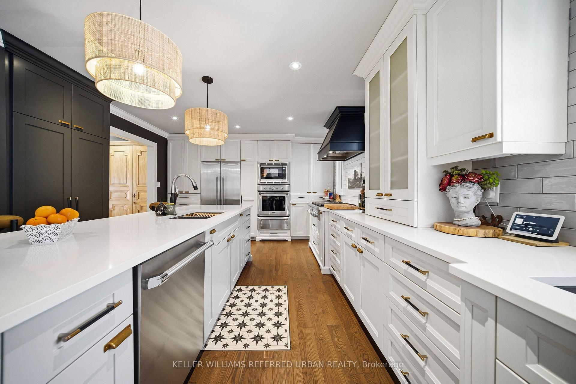 Welcome to 57 mcgregor crescent, nestled on a quiet cul-de-sac in one of ancaster's most sought-after, family-friendly neighborhoods. This beautifully updated two-storey home offers 2066 sf above grade with 3 spacious bedrooms, 5 bathrooms, a fully finished basement, and parking for six vehicles (double garage plus four-car driveway). Backing onto mature trees and just steps to local walking trails, this property delivers exceptional privacy and a true sense of retreat while remaining close to top-rated schools and major commuter routes. The heart of the home is a chef-inspired kitchen featuring custom cabinetry, designer range hood, premium appliances, a 6 -burner gas stove, and a large quartz island with integrated prep sink and ample seating - perfect for gathering and entertaining. The kitchen flows seamlessly into the inviting family room with a cozy gas fireplace and tranquil backyard views. Upstairs, all three bedrooms offer their own private ensuites, including a luxurious primary suite complete with a freestanding soaker tub and heated floors. Wide plank hardwood throughout. Step outside to your fully treed, square lot with 100% privacy and unwind in the outdoor master spa hot-tub (2023). With designer lighting, heated bathroom flooring and refined finishes throughout, this is elegant, timeless living in the heart of ancaster. Within a short drive of 57 mcgregor crescent you have public, catholic, and secondary schools serving families in the ancaster area - including ancaster high, rousseau public school, st. Ann catholic elementary, and bishop tonnos catholic secondary. Major routes like highway 403, highway 6 / governors road, and dundas street make commuting to hamilton and nearby cities easy.