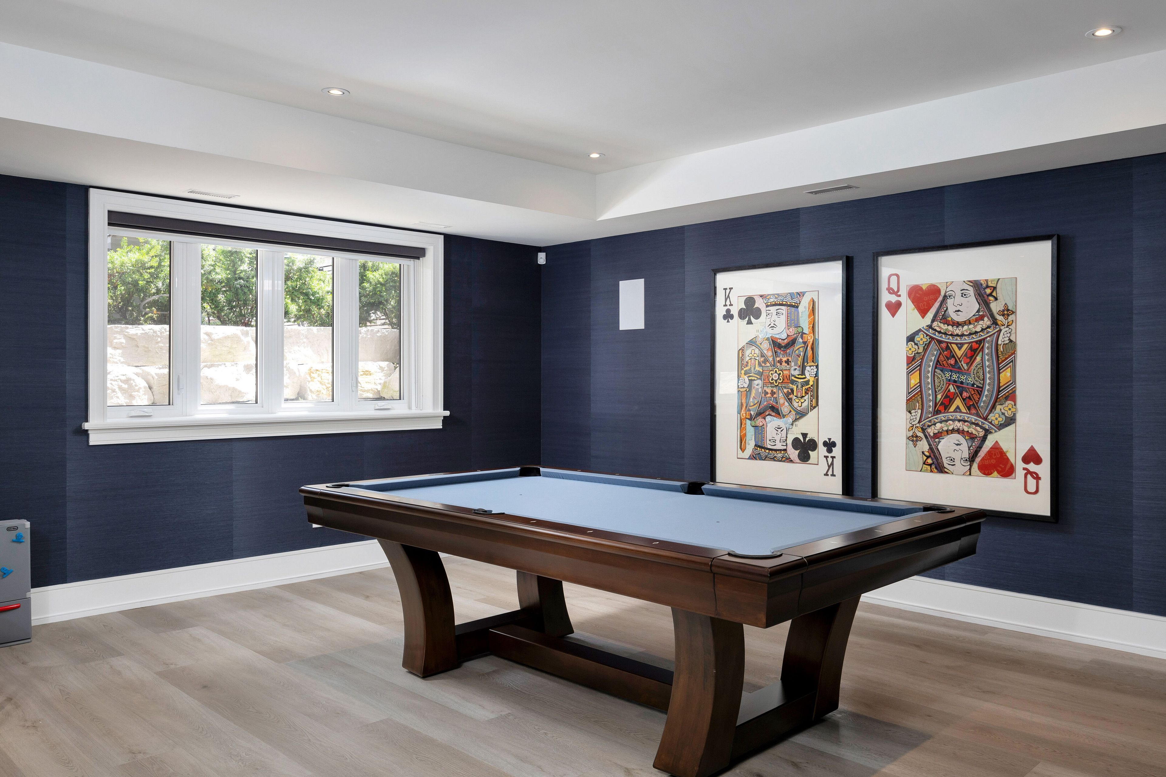 Nestled in one of west toronto's most sought-after communities, this masterfully custom-crafted estate features 5 bedrooms, 7 bathrooms, and over 6,000 square feet of bespoke living space. As you step through the front entrance, you are welcomed by a grand foyer with seemingly endless sightlines extending through to the backyard, setting the tone for the luxurious experience that awaits. At the heart of the main level lies an incredible kitchen with custom cabinetry, premium thermador appliances, and a family-sized island. Adjacent to the kitchen, the butler's pantry leads you to the grand dining room, perfect for entertaining. The open-plan kitchen and living area boasts a feature wall with a tv niche, linear gas fireplace, and built-in storage, creating a warm and inviting space for gatherings. Step through the rear garden doors and prepare to be enchanted by the meticulously designed backyard. This outdoor oasis offers multiple areas for al fresco dining, a relaxing retreat by the outdoor fireplace under a custom pergola, and ample space to bask in the sun amidst professionally manicured gardens. It is truly an oasis inspired by luxury hotel gardens. The master suite, located at the rear of the home, features striking vaulted ceilings, a chic 5-piece bathroom, a dressing room, a shoe closet, and a built-in vanity area. The spacious 2nd and 3rd bedrooms share an ensuite bath with a double vanity and separate water closet, while the 4th and 5th bedrooms offer private ensuites, ideal for guests or separate living quarters. The expansive lower level features an open-concept theatre and games room with a 100-inch screen and a 7. 1 built-in sound system. Additionally, you'll find a spa-inspired full bathroom, bedroom or den, ample storage areas, laundry room, and a fully equipped mirrored gym/yoga studio. Discover the epitome of luxury living where every detail is designed for comfort, elegance, and style.