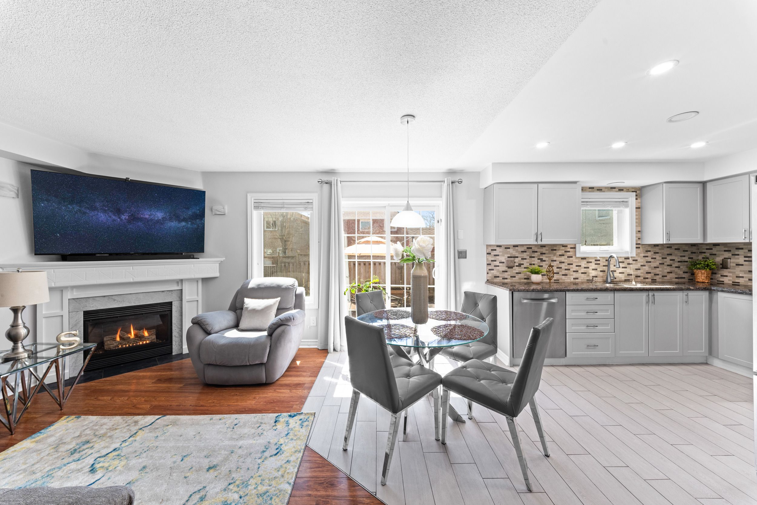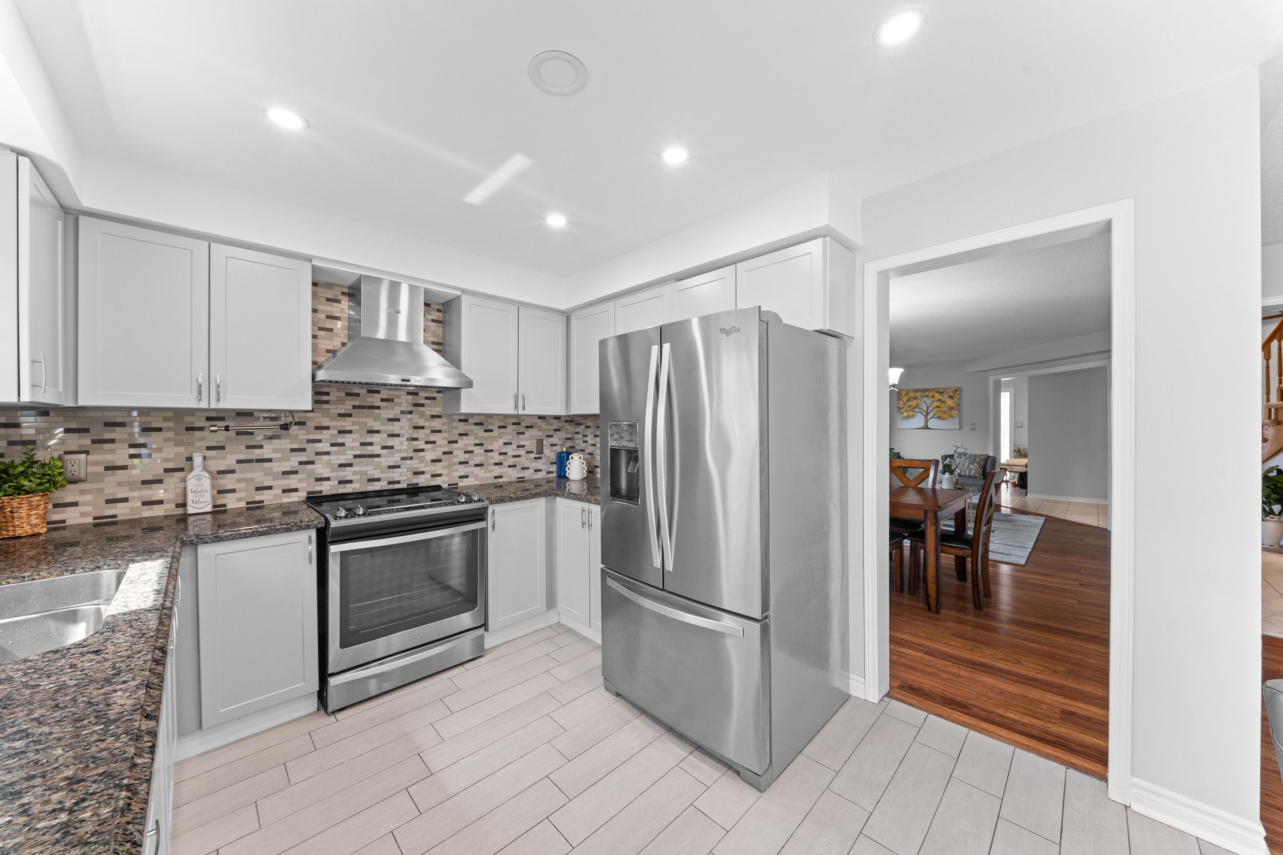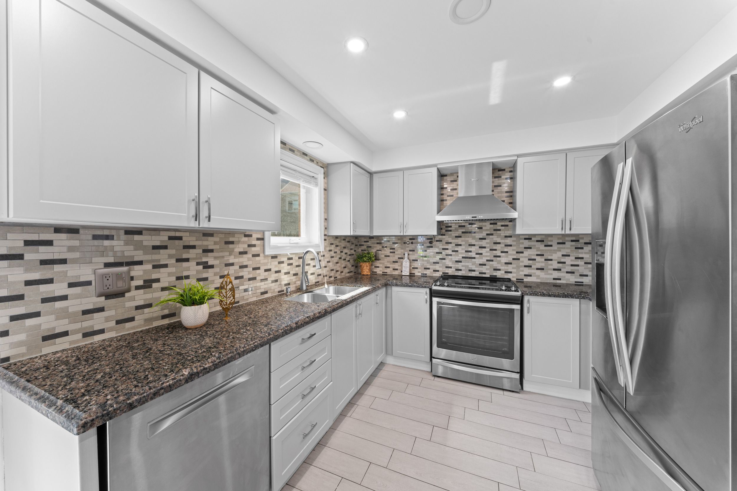 • Recently renovated kitchen with modern finishes and stainless steel appliances.